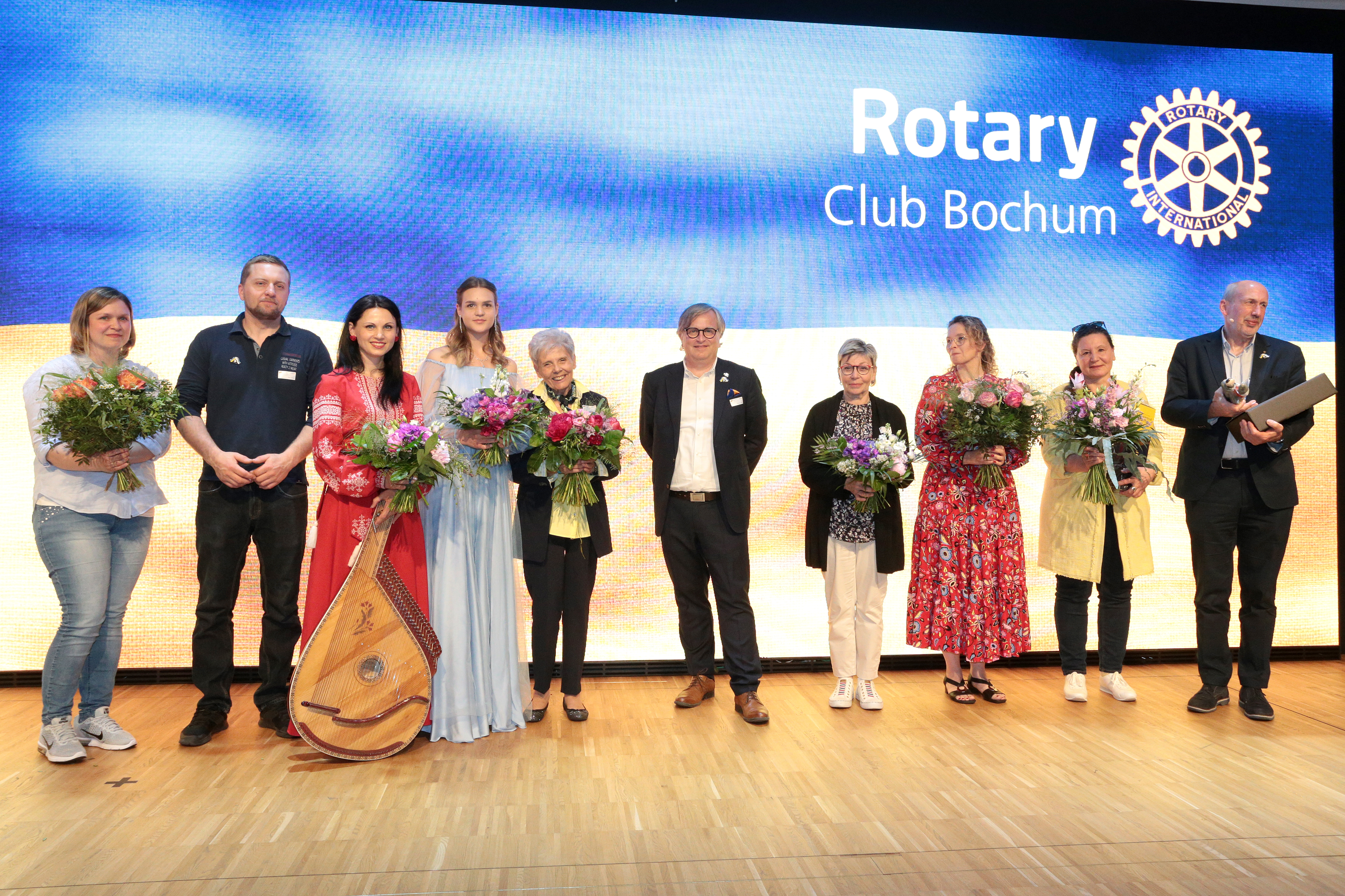 Nach Grußworten von Carina Goedecke, erste Vizepräsidentin des Landtags NRW, und einer Videobotschaft des Bochumer Oberbürgermeisters Thomas Eiskirch schilderte Dr. Christoph Wiemer (Rotary Club Castrop-Rauxel) seine persönlichen Eindrücke aus seiner Zeit in Chelm an der ukrainisch-polnischen Grenze. Der Arzt engagierte sich im März 2022 ehrenamtlich in einem Erstaufnahmelager für ukrainische Geflüchtete und versorgte die Menschen, darunter viele Kinder, als Ersthelfer.