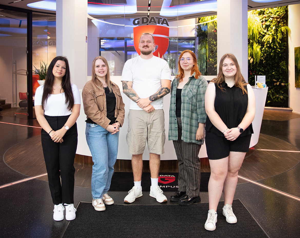 (pressebox) (Bochum, 01.08.2024) Zum Ausbildungsbeginn heißt es für fünf Auszubildende am 1. August 2024: Herzlich willkommen bei G DATA. Der Bochumer Cyber-Defense-Spezialist bildet dieses Jahr wieder in kaufmännischen und technischen Berufen aus. Zwei Auszubildende starten ihre Ausbildung bei den Fachinformatikern für Anwendungsentwicklung und eine als angehende Fachinformatikerin für Systemintegration. Im kaufmännischen Bereich treten dieses Jahr zwei Auszubildende für Büromanagement ihre Lehre an.