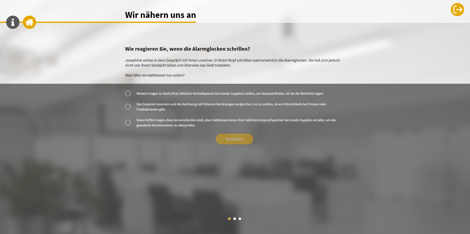 Cyberkriminelle agieren vermehrt in organisierten Gruppen und begehen verstärkt Rechnungsbetrug, um eine große Zahl von Personen zu schädigen, oder CEO-Betrug, um mögliche Gewinne zu erhöhen. In diesem spielerischen Training schlüpfen die Lernerinnen und Lerner in die Ermittlerrolle und müssen eine Tätergruppe zu Fall bringen. Dabei erfahren sie, welche Techniken die Angreifer einsetzen, um ihre Opfer unter Druck zu setzen. Und wie Angestellte reagieren sollten, wenn sie es mit einem Betrüger zu tun haben.