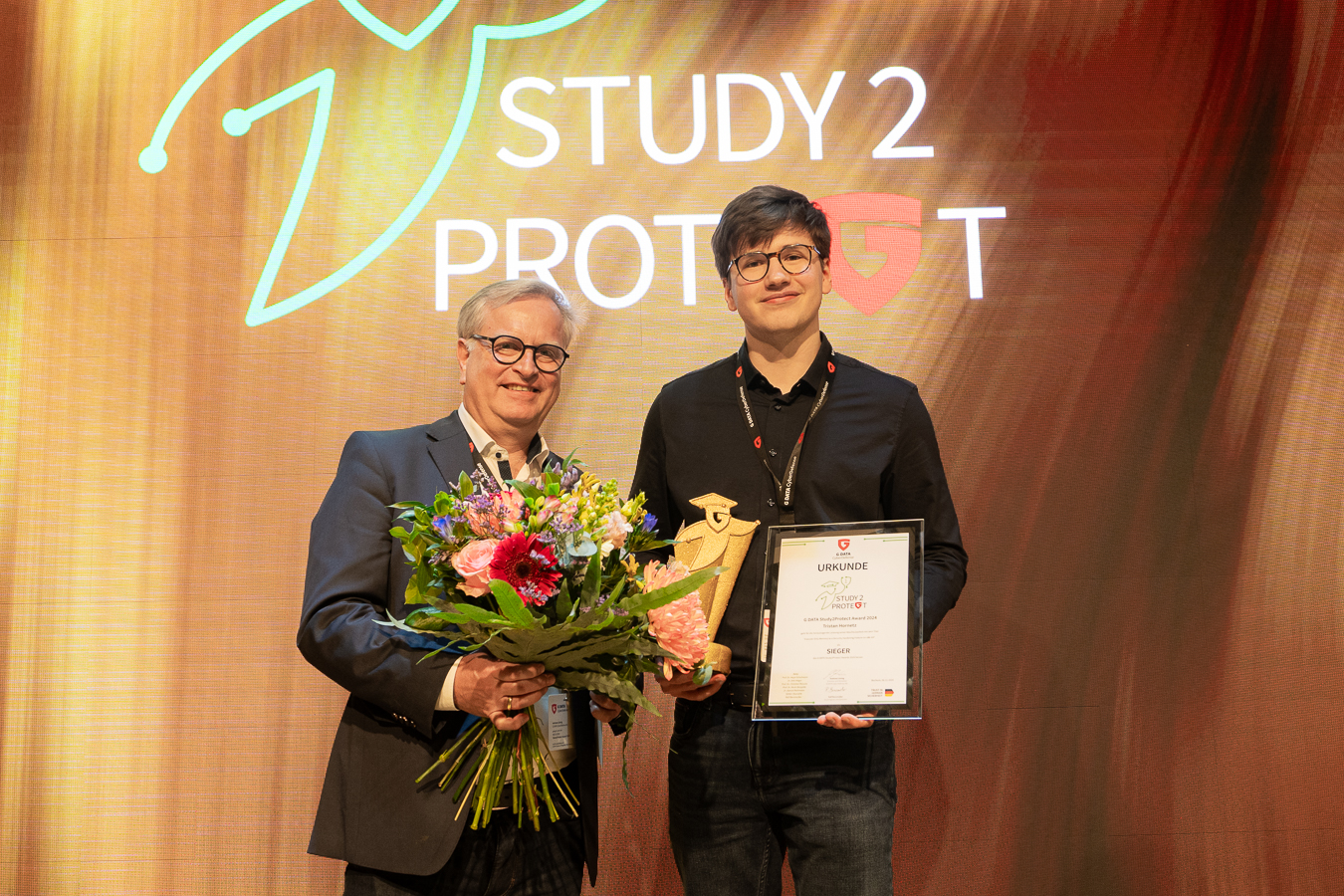 (pressebox) (Bochum, 07.11.2024) Eine gelungene Premiere feierte der Study2Protect Award der G DATA CyberDefense AG am 6. November 2024 auf dem G DATA Campus in Bochum. Vier Finalisten stellten ihre Bachelor- und Masterarbeiten im Bereich Cybersecurity, Cyberdefense und Cyberresilienz mit einem Kurzvortrag der Fachjury und den rund 100 Gästen vor. Tristan Hornetz überzeugte die Fachleute aus Wissenschaft, Wirtschaft, Behörden und Verbänden mit seiner Arbeit und gewann den mit 1.000 Euro dotierten Award.