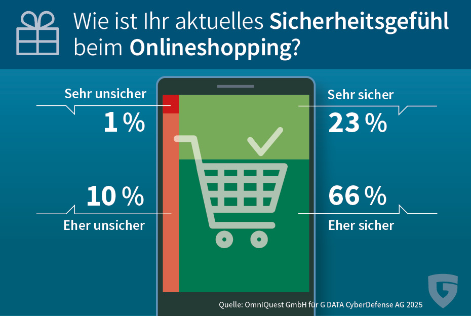 (pressebox) (Bochum, 21.11.2025) Pünktlich zur Black Week und zur Vorweihnachtszeit locken viele Online-Shops mit Aktionen und günstigen Angeboten. Zeitgleich nutzen Cyberkriminelle die Schnäppchenjagd für Freunde und Familie gezielt aus: Dank KI erstellen sie Fake Shops und Phishing-Mails schnell und überzeugend. Wie eine repräsentative Weihnachts-Umfrage von G DATA CyberDefense zeigt: Neun von zehn Befragten empfinden den Einkauf im Netz als sicher oder sogar sehr sicher. Dieses Vertrauen kann schnell zur Gefahr werden. G DATA rät daher zur Vorsicht und gibt konkrete Tipps für sicheres Online-Shopping in der umsatzstärksten Phase des Jahres.