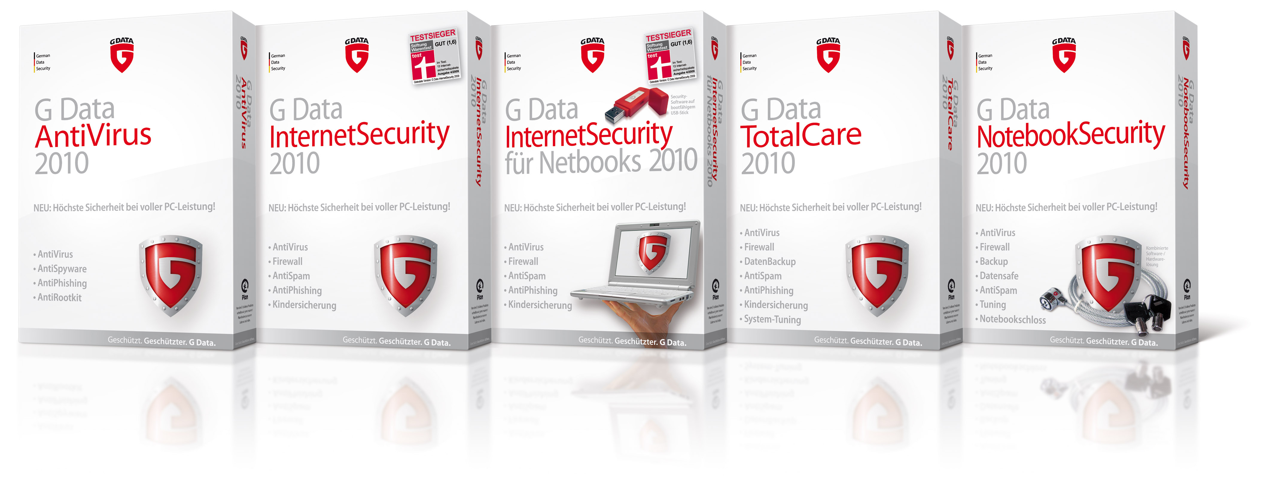 Die All-In-One-Lösung G DATA TotalCare ist das Security-Referenzpaket. In der neuen Version wurden zahlreiche Features optimiert: Schnellere Backups, „one click“ SecurityCenter und Turboscanning. Für Anwender, die das Thema Datensicherheit ganzheitlich angehen, ist TotalCare 2010 genau das richtige Paket.