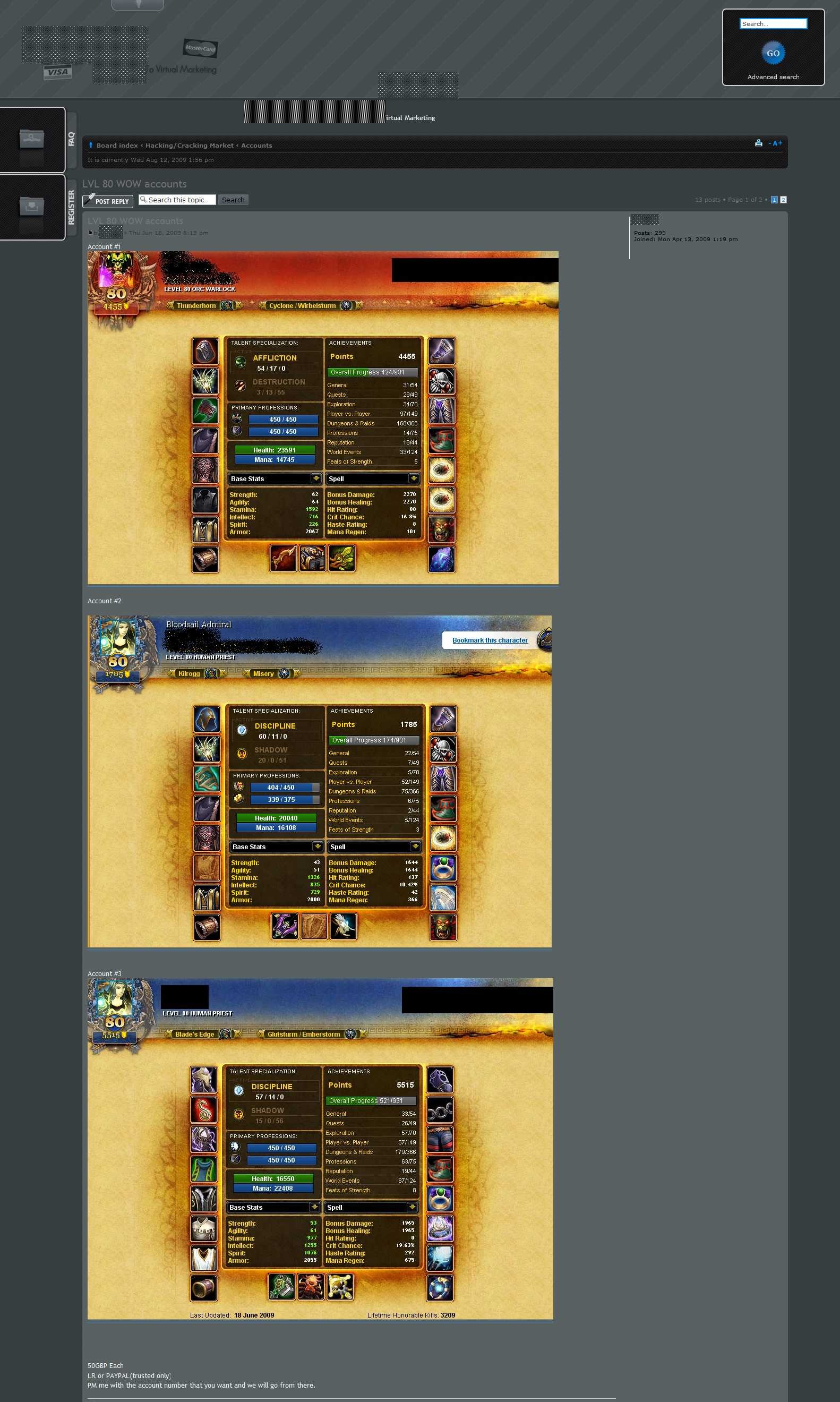 - World of Warcraft (WoW): 5,- Euro (min. Preis pro Account) bis 30,- Euro (max. Preis pro Account)