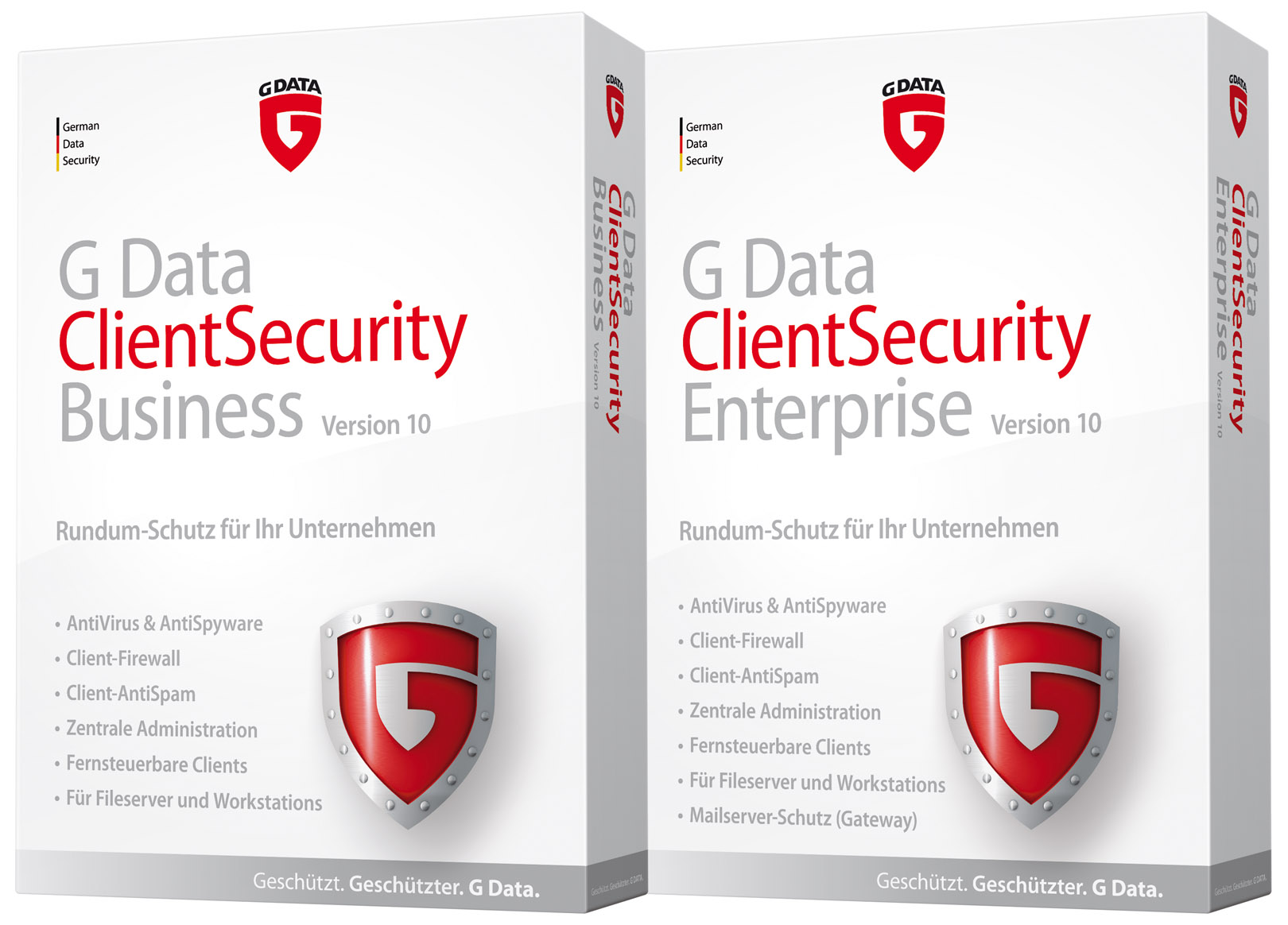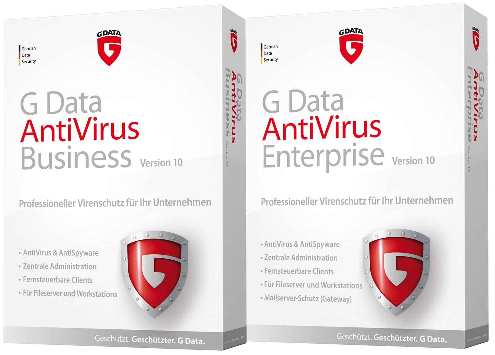 G Data AntiVirus Business ist der zentral gesteuerte Virenschutz für Unternehmen. Der Management-Server steuert alle Clients auf Desktops, Notebooks und Fileservern. Alle Client-Prozesse laufen unsichtbar ab – ohne dass Anwender das Sicherheitslevel ändern könnten. G Data AntiVirus Enterprise erweitert die Business-Version um die leistungsfähige G Data MailSecurity. Die mailserver-unabhängige Gateway-Lösung filtert alle ein- und ausgehenden E-Mails (SMTP/ POP 3) nach Spam und Viren.