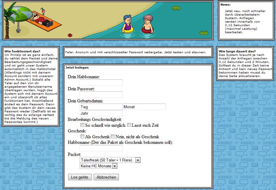 Eine andere Gefahr ist die des Bank-Phishings: Auf der offiziellen Homepage des Spieleanbieters können die User virtuelle Habbo Taler erwerben. Als Zahlungsmöglichkeit wird unter anderem auch die Kreditkartenzahlung angeboten.