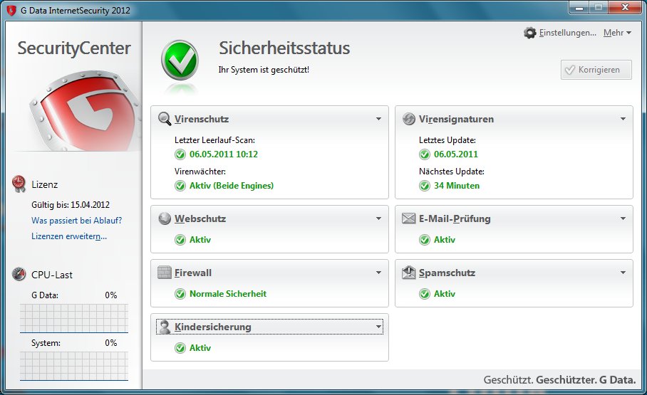 G Data AntiVirus 2012: empf. Verkaufspreis 39,95 CHF