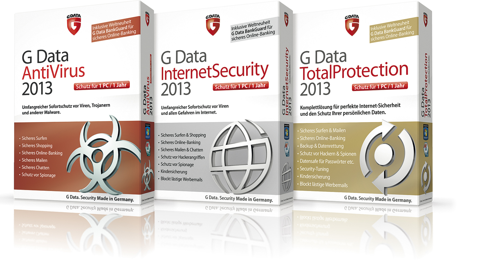 Testergebnisse beweisen: IT-Security „Made in Germany“ schützt Internet-nutzer am besten. Seit 2005 testet die Stiftung Warentest InternetSecurity Produkte. In allen sechs Tests, die von 2005 bis 2013 durchgeführt wurden, erreichte G Data die beste Virenerkennung. In Vergleichstests von AV-Test demonstriert G Data regelmäßig beste Ergebnisse bei der Erkennung von Computerschädlingen. Auch international wurde G Data InternetSecurity von unabhängigen Verbrauchermagazinen als bestes Internetsicherheitspaket ausgezeichnet – u.a. in Australien, Belgien, Frankreich, Italien, den Niederlanden, Österreich, Spanien und den USA.