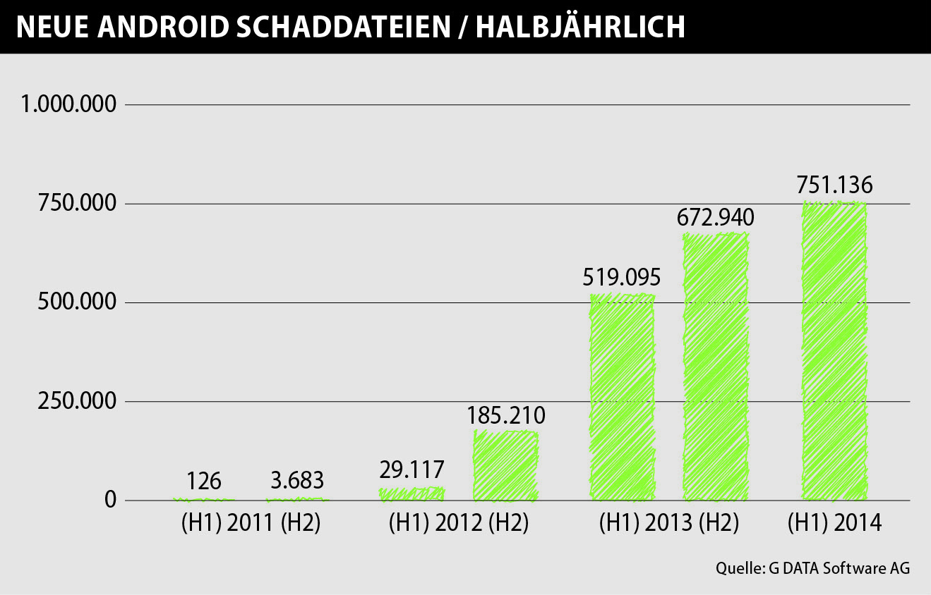 Über eine Milliarde Android-Smartphones werden laut einer Marktstudie von IDC im Jahr 2014 verkauft. Im zweiten Quartal waren 84,7 Prozent aller weltweit verkauften Smartphones mit dem Betriebssystem Android ausgestattet. Das wissen auch Schadcode-Entwickler, die in dieser Sparte kontinuierlich an neuen Malwaretypen arbeitet. Allein im ersten Halbjahr zählten die Sicherheitsexperten bei G DATA 751.136 neue Android-Schaddateien. Für das Gesamtjahr 2014 rechnen die Analysten sogar mit 1,2 Millionen neuen Malware-Samples. Der G DATA Mobile Malware Report für das erste Halbjahr 2014 ist online erhältlich unter: www.gdata.de/rdk/dl-de-mmwr_2014_01
