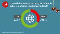 Fast sieben von zehn deutsche Internetnutzer achten beim Kauf im Internet darauf, dass die Webseite des Online-Händlers eine sichere Verbindung aufbaut. Nur gute 30 Prozent achten weder auf ein „https“ in der URL oder das Schlosssymbol in der Browser-Adresszeile und gehen damit das Risiko ein, Opfer von Cyberkriminellen und Betrügern zu werden.