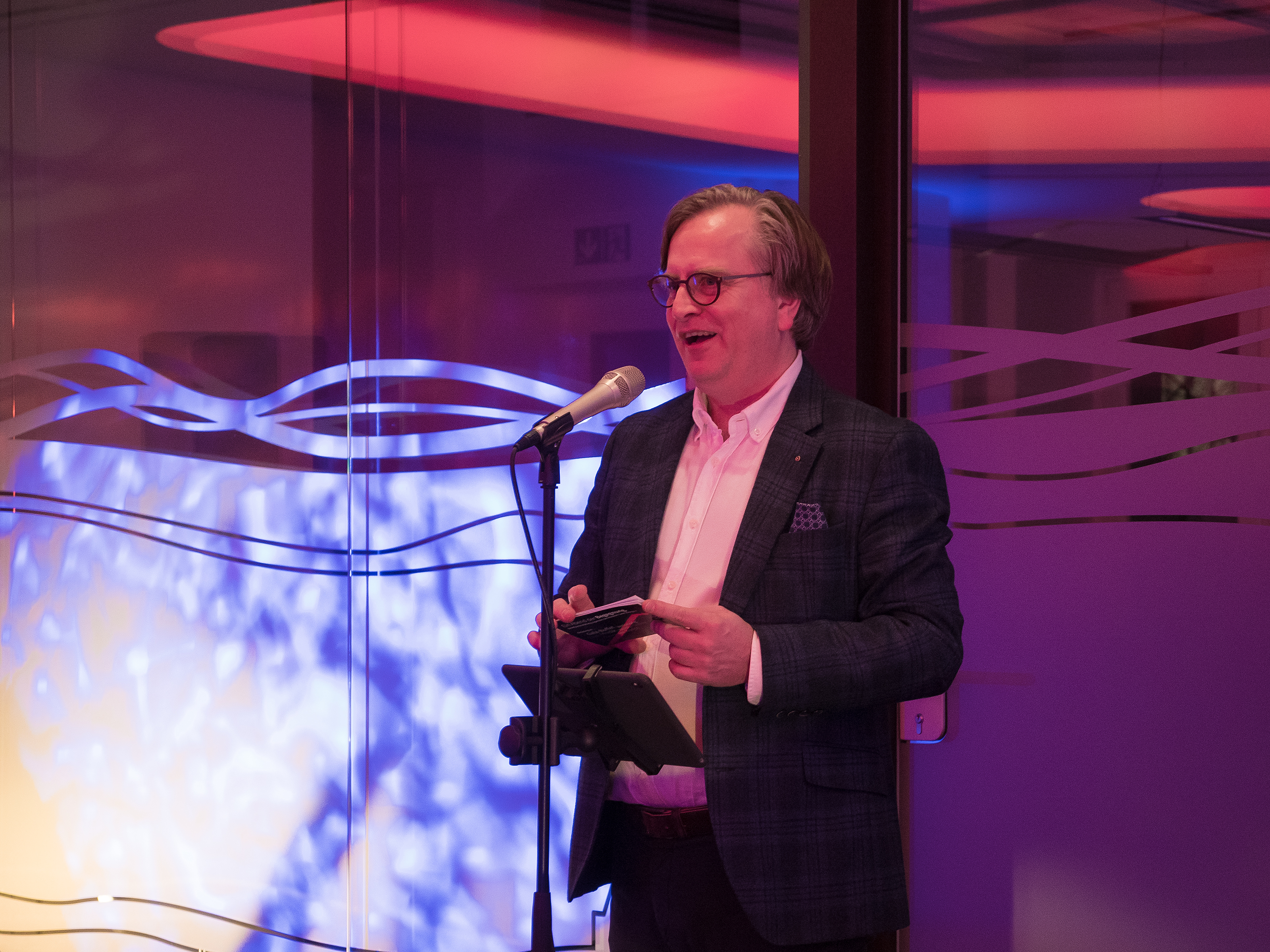 Highlight des Abends war die Versteigerung eines Kissens des Bochumer Teppichdesigners Jan Kath. Die Rolle des Auktionators übernahm der bekannte Wissenschaftsjournalist und G DATA Aufsichtsratsmitglied Jean Pütz. Das hochwertige Accessoire wurde für 1.600 Euro ersteigert.