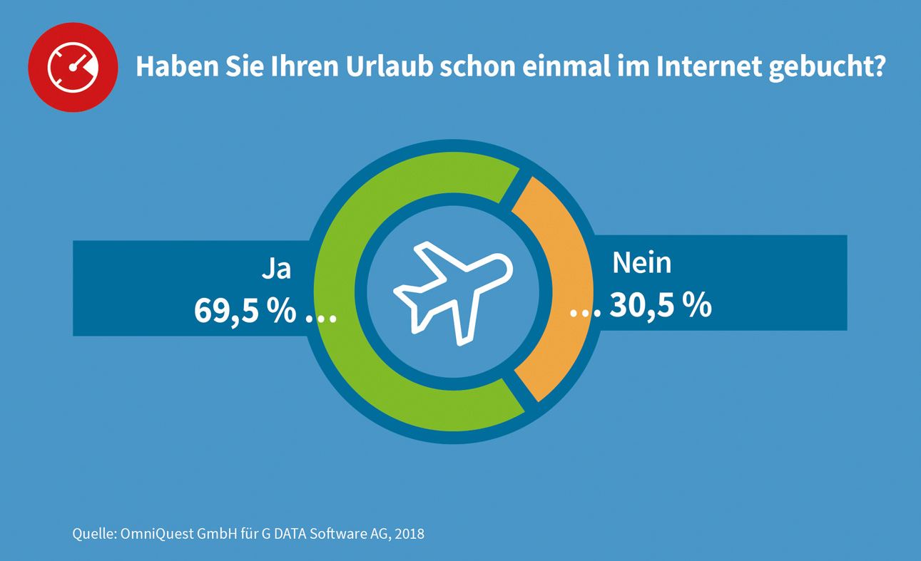 (pressebox) (Bochum, 29.05.2018) 70 Prozent der Deutschen haben ihren Urlaub schon einmal im Internet gebucht - das zeigt eine aktuelle und repräsentative Studie von G DATA. Für Cyberkriminelle ist es hierdurch leicht, durch gezielte Kampagnen Nutzer anzugreifen, um persönliche Daten zu stehlen. Wer sich noch nicht um die schönste Zeit des Jahres gekümmert hat, wird oft jetzt aktiv und bucht last minute. G DATA warnt vor kriminellen Ferien-Kampagnen und gibt Tipps für die sichere Onlinebuchung des Traumreiseziels.
