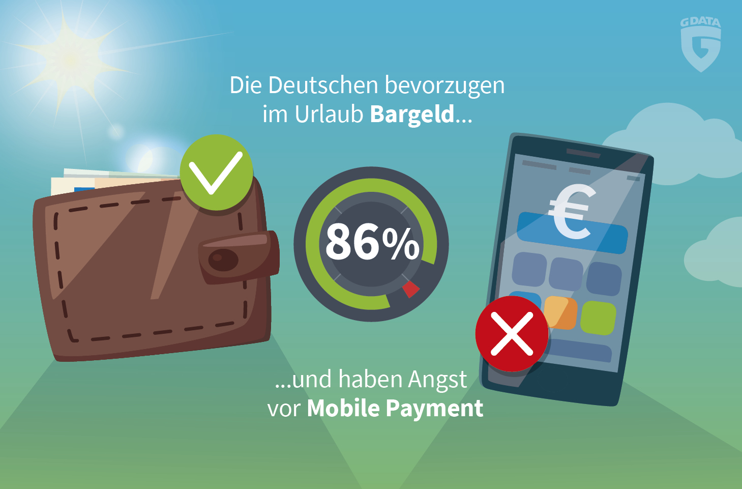 (pressebox) (Bochum, 18.06.2019) Deutsche Urlauber verzichten zunehmend auf die Nutzung von WLAN-Netzen, wie eine aktuelle Security-Studie von G DATA ergibt. Stattdessen verlassen sich die Reisenden auf ihr eigenes Datenvolumen. Das zeigt, dass die EU-Roaming-Verordnung erheblichen Einfluss auf die IT-Sicherheit von Urlaubern hat. Diese müssen nicht mehr auf öffentliche WLANs zurückgreifen, über die Kriminelle persönliche Daten mitlesen können. Das Sicherheitsbewusstsein zeigt sich auch bei der Wahl der Zahlungsmethoden im Urlaubsort. 86 Prozent der Deutschen bevorzugt Bargeld, Mobile Payment findet dagegen kaum Zuspruch. G DATA befragte für seine repräsentative Umfrage 1.000 Internetnutzer aus Deutschland.