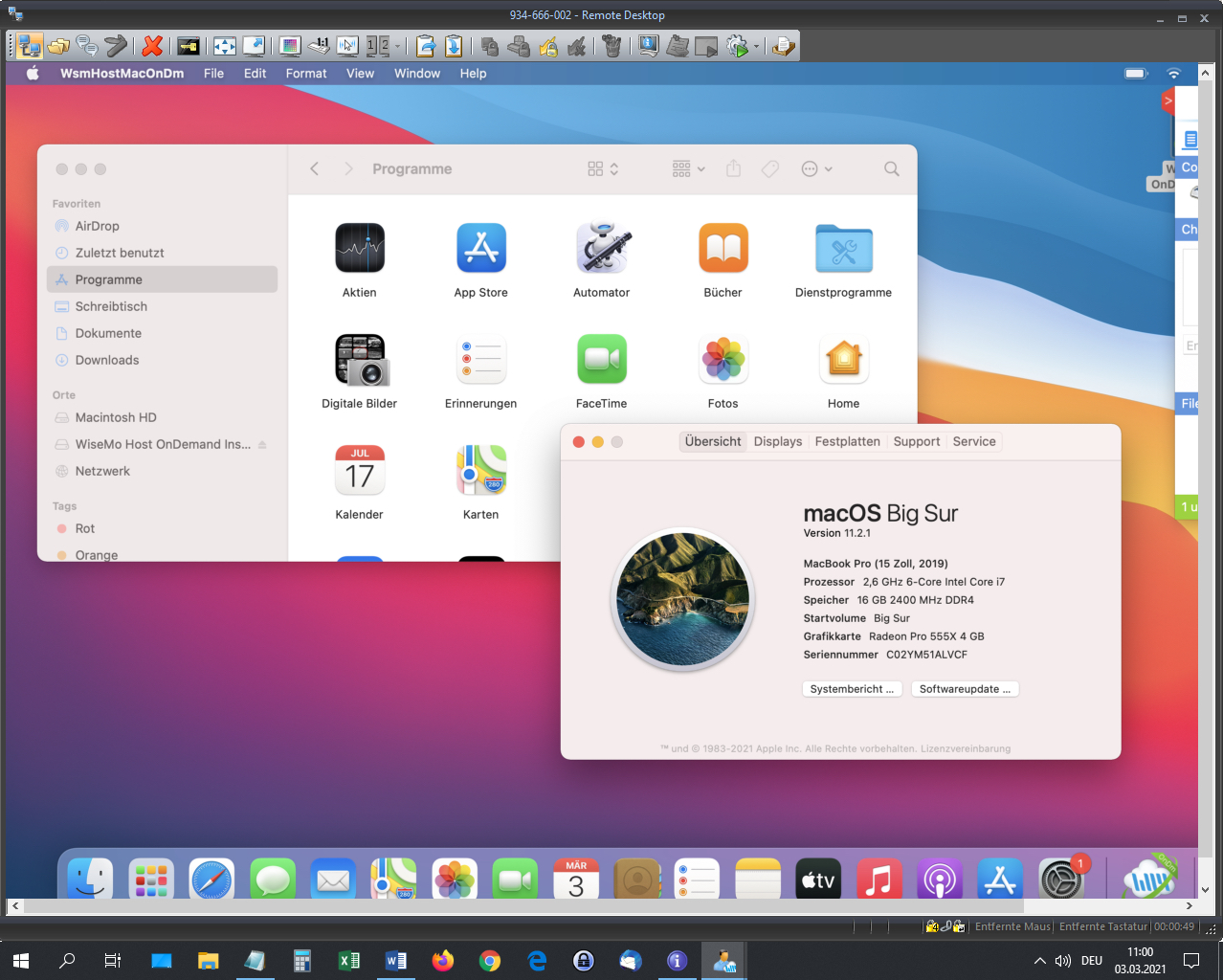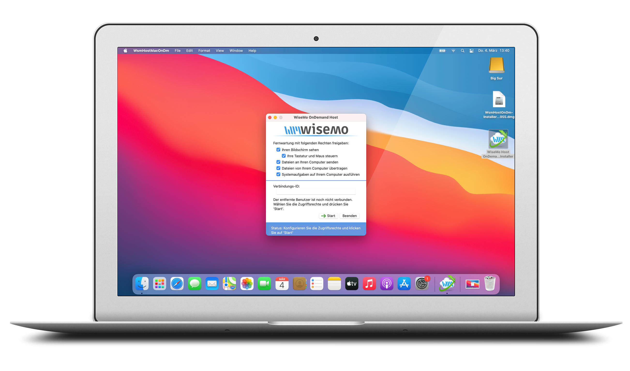 WiseMo Fernzugriff von Windows 10 Pro auf macOS Big Sur