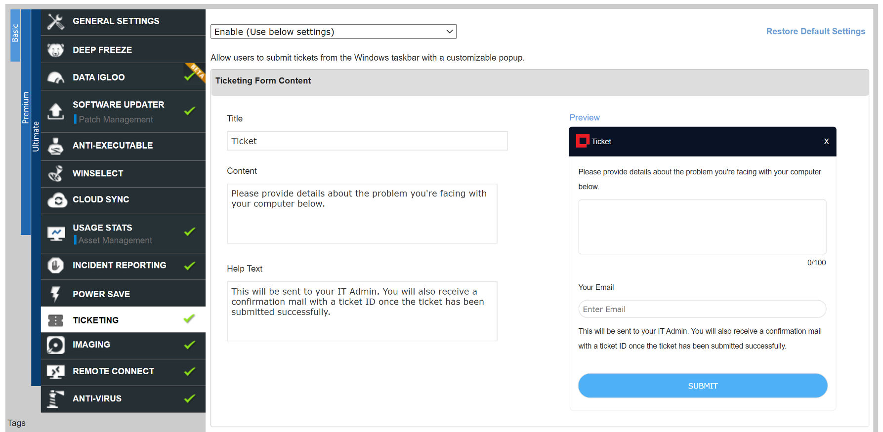 Deep Freeze Cloud Ultimate integriert umfassendes Ticketing-System für den Helpdesk und IT-Administratoren.