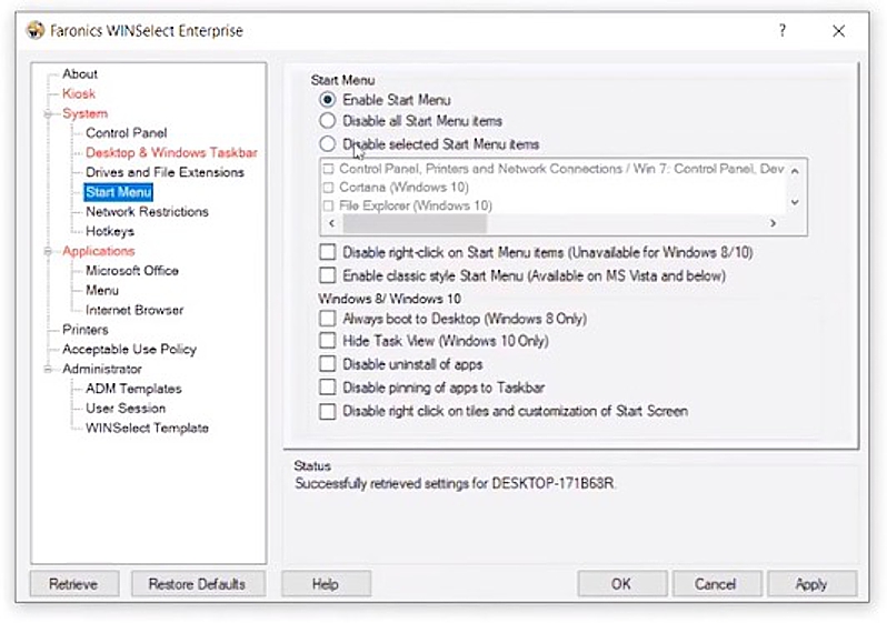 Faronics WINSelect - Geräteverwaltung und Kioskumgebung, standardisierte PC-Umgebungen ohne den Einsatz von Group Policies
