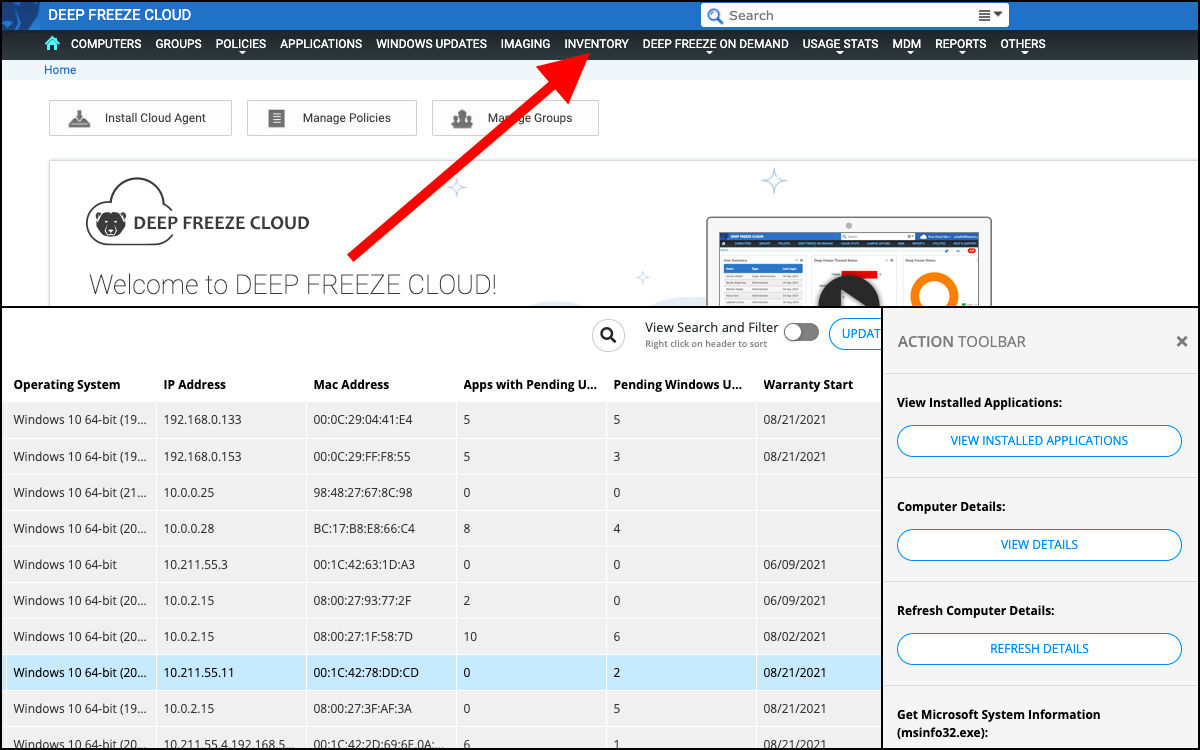Deep Freeze Cloud mit Inventarisierung