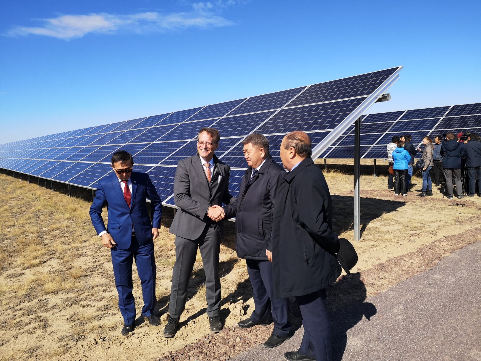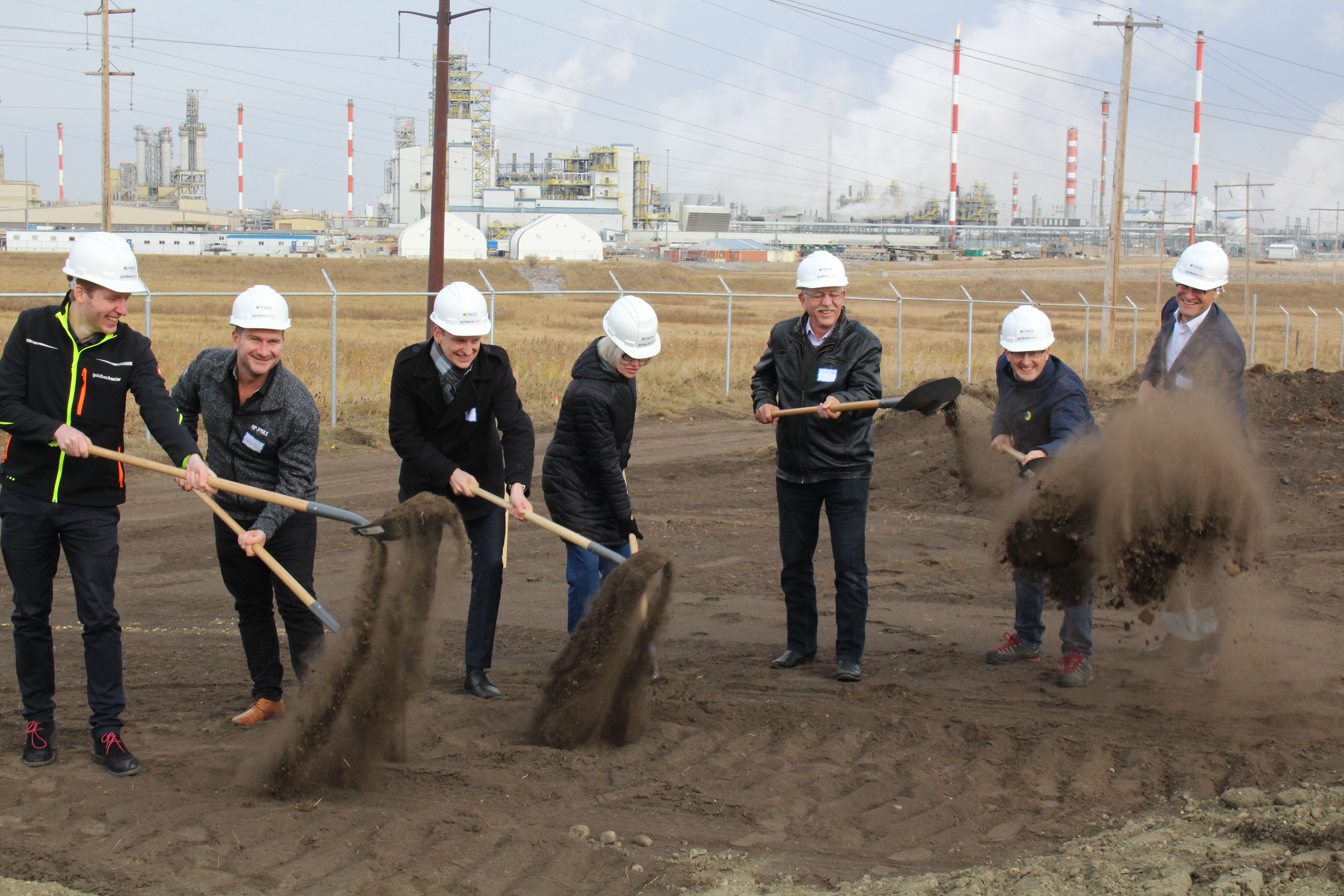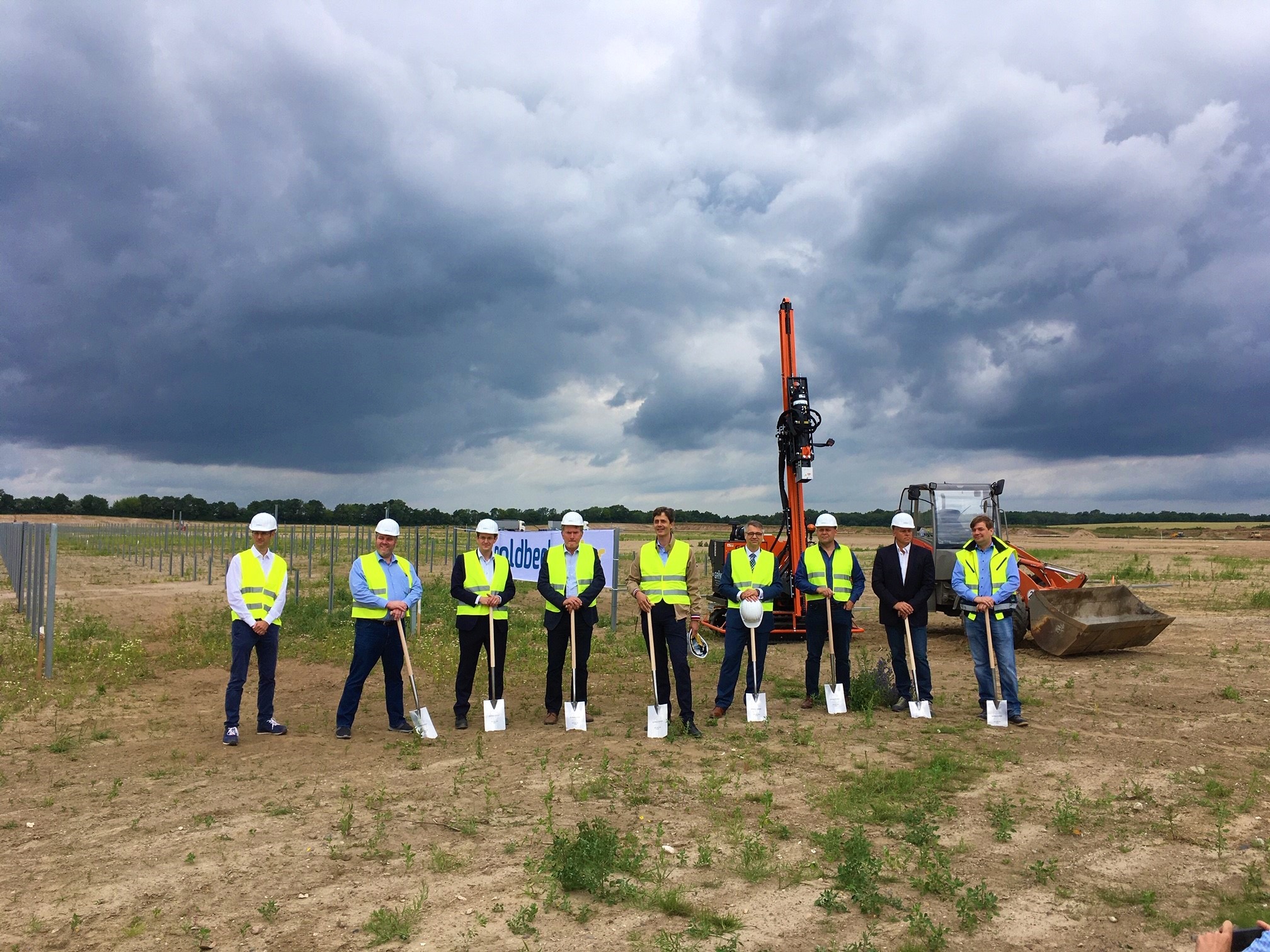 De izquierda a derecha: Juan Carlos Thiemann, Pedro Aravena, Project Manager Iberoamérica GOLDBECK SOLAR, Oriana Offerman Concejal Presidente de la Comisión de Medio Ambiente de Los Ángeles, Oscar Reicher, SEREMI de Medio Ambiente Región del Biobío, Miguel Velasco, Director Iberoamerica GOLDBECK SOLAR, Daniela Espinoza, SEREMI Energía Región del Biobío, Raúl Fuentes, Alcalde subrogante de Los Ángeles, en representación del Alcalde, Sr. Esteban Krause