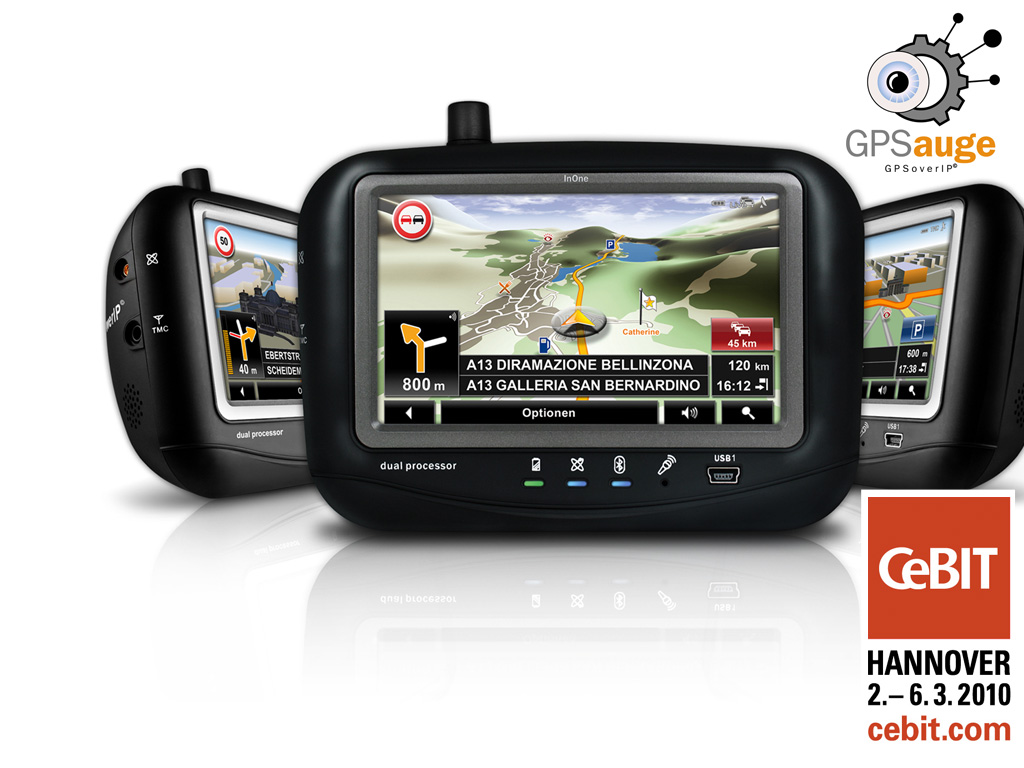 (pressebox) (Schweinfurt, 16.02.2010) Das GPSauge™ IN1 ist bereits seit zwei Jahren ein treuer Begleiter in vielen Firmenfahrzeugen. Es verfügt über Navigation, Live-Ortung, Kommunikation, Datenaustausch und Entertainment. Rechtzeitig zur CeBIT 2010 präsentiert die GPSoverIP GmbH das GPSauge™ IN1 mit einem General Update inklusive neuer Features sowie mit der aktuellen und vollständig integrierten NAVIGON-Software MobileNavigator 7. Das Gehäuse wurde zudem leicht modifiziert und im Inneren sorgt nun ein überarbeiteter GPS-Receiver für herausragende Positionsermittlung.
