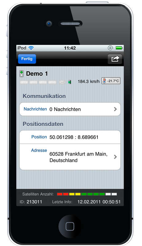 (pressebox) (Schweinfurt, 18.02.2011) Der GPS-Explorer mobile für das Apple iPhone und iPad ist ein vollwertiges Programm für das Flottenmanagement. Er ermöglicht den mobilen Zugriff auf die Position aller im Fuhrpark befindlichen und mit einem GPSauge (bzw. einem GPSoverIP-fähigen Endgerät) ausgerüsteten Fahrzeuge. Die Aktualisierung erfolgt im Sekundentakt, was eine echte Live-Verfolgung der Fahrzeuge erlaubt. Fuhrparkleiter können ihre Fahrzeuge oder Ihren gesamten Fuhrpark von unterwegs verwalten und Fahraufträge oder Nachrichten direkt von Ihrem iPhone/iPad an die Fahrer senden.