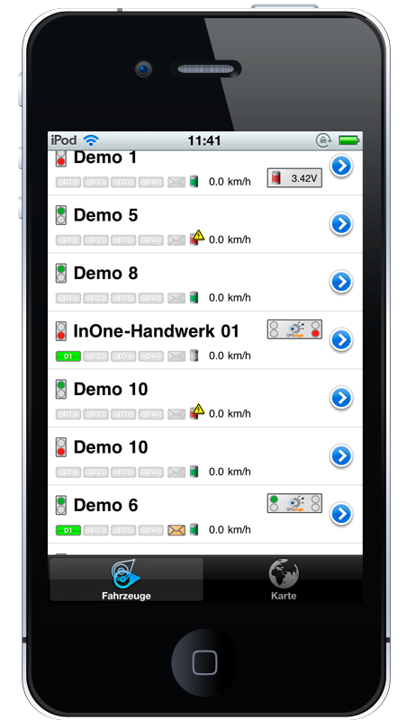 Hierbei lässt sich vom Fahrer über das sog. Statusboard ein entsprechender Status definieren, welcher unmittelbar angezeigt und dokumentiert wird.