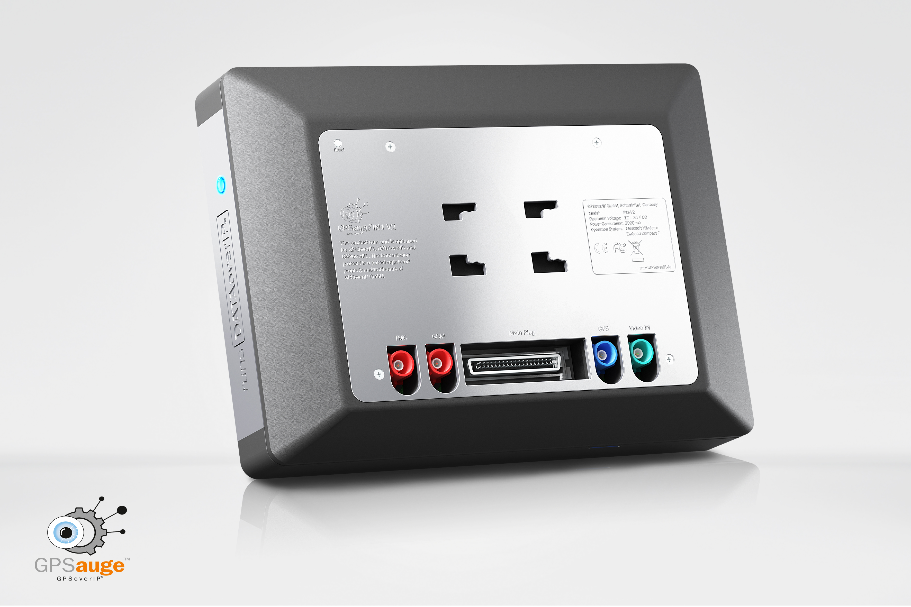 Das GPSaugeTM IN1 V.2 ist eine Highend-Telematikeinheit, entwickelt unter Berücksichtigung der harten Anforderungen im gewerblichen Einsatz. Es erfüllt die Anforderungen nach Schutzklasse IP64 und ist somit auch für die Verwendung unter rauen Umgebungsbedingungen, wie beispielsweise in Baumaschinen, bestens gerüstet. Alle Komponenten sind für eine lange Lebensdauer ausgewählt. Bei der Hardware-Architektur ging man bei dem neuen Model komplett eigene Wege und setzte das Ziel, dass beste am Markt verfügbare M2M-Gerät zu bauen. Im Inneren finden sich so nur die hochwertigsten Bauteile. Zur Schirmung von HF-Strahlungen dient der Gehäuse - Käfig aus Zinkguss.