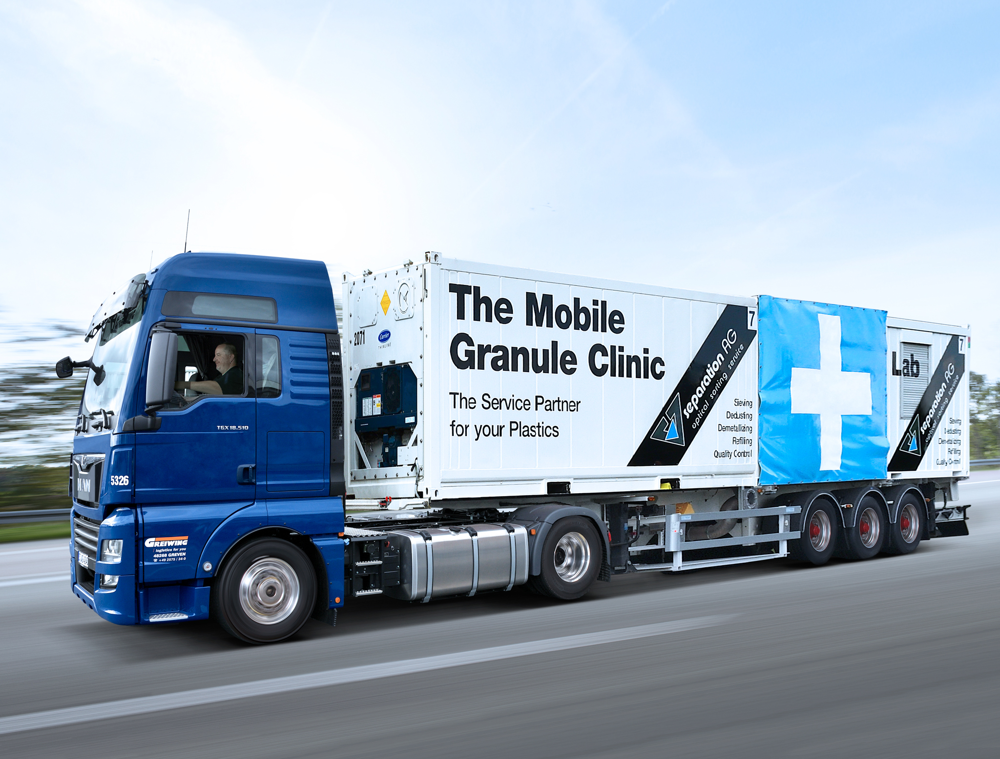 Die GREIWING logistics for you GmbH präsentiert ihr einzigartiges Verfahren, Kunststoffe ortsunabhängig zu sortieren, erstmals auf der K in Düsseldorf. Dort wird eine Mobile Granule Clinic © aufgestellt. (Foto: GREIWING logistics for you GmbH)