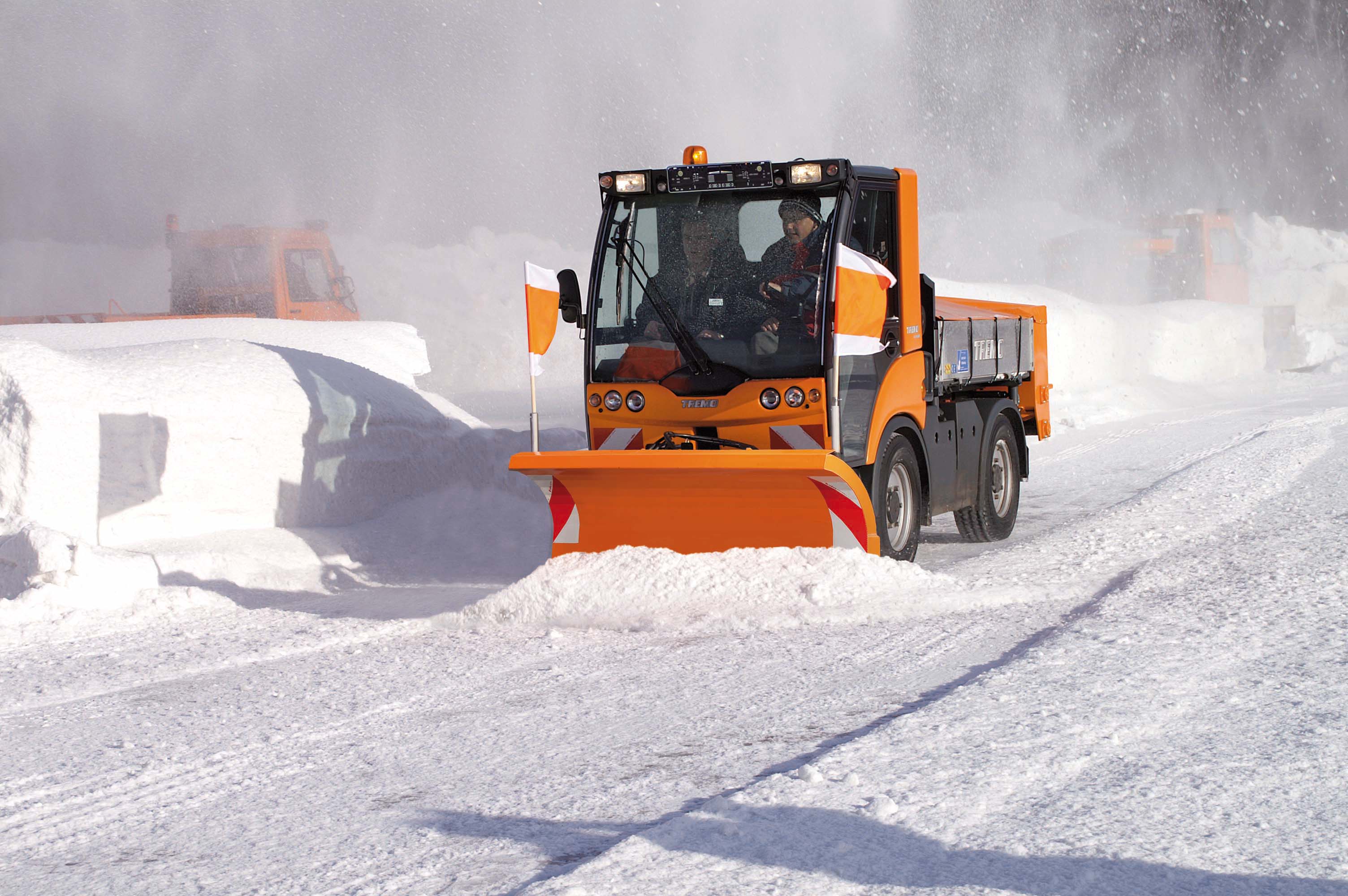 Wie der bewährte TREMO Carrier ist der TREMO T nur 1 Meter 30 breit und damit ideal auf Rad- und Fußwegen einsetzbar. Er verfügt serienmäßig über einen Hinterkipper, kann aber auch als Dreiseitenkipper geliefert werden. Dank seinem zulässigen Gesamtgewicht von 3,5 Tonnen und 1,35 Tonnen Zuladung ist er, für diese Kompaktklasse, äußerst belastbar. Das kommt ihm besonders auch im Winter zugute, wenn der elektrisch angetriebene Heckanbaustreuer mit Streugut befüllt wird. Aber auch beim Müll sammeln oder beim Bewässern macht sich diese hohe Zulademöglichkeit durch eine entsprechende Ausdauer im Arbeitseinsatz bemerkbar.