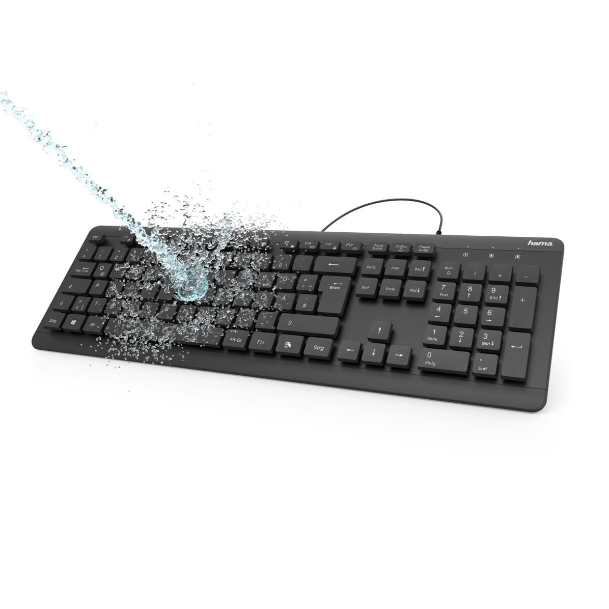 (pressebox) (Monheim, 18.08.2020) Ob es die umgekippte Kaffeetasse auf dem Schreibtisch oder nach intensiver Benutzung einfach mal wieder eine tiefergehende Grundreinigung nötig ist ¬– Computertastaturen müssen täglich einiges durchmachen. Die wasserfeste Tastatur „KC-600“ von Hama trotzt Flüssigkeiten nach IPX7-Standard und hält sogar kurzzeitiges Untertauchen aus. Perfekt also für den Schreibtisch, an dem auch gegessen und getrunken wird und die Intensivreinigung mit Wasser und Schwamm danach.