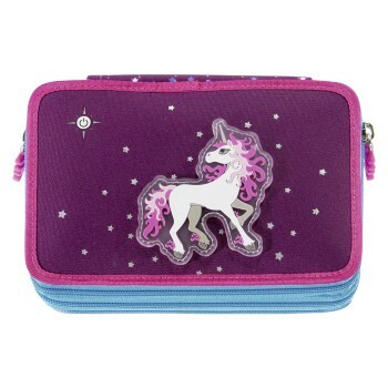 Das XXL-Schlampermäppchen ist mit allem ausgestattet, was Kinder zum Malen und Basteln brauchen: Ob Farb- und Filzstifte, Bleistifte, Spitzer und Radierer oder Schere und Klebestift, jedes Utensil hat von Anfang an seinen festen Platz. Insgesamt gibt es drei Fächer, jedes mit eigenem Rundbogenreißverschluss. So wissen Kinder sofort, wo jeder Stift zu finden ist und nichts kann verlorengehen. Für strahlende Kinderaugen sorgt der FLASH-Effekt – per Knopfdruck beginnt das Motiv auf dem Mäppchen eindrucksvoll zu leuchten.