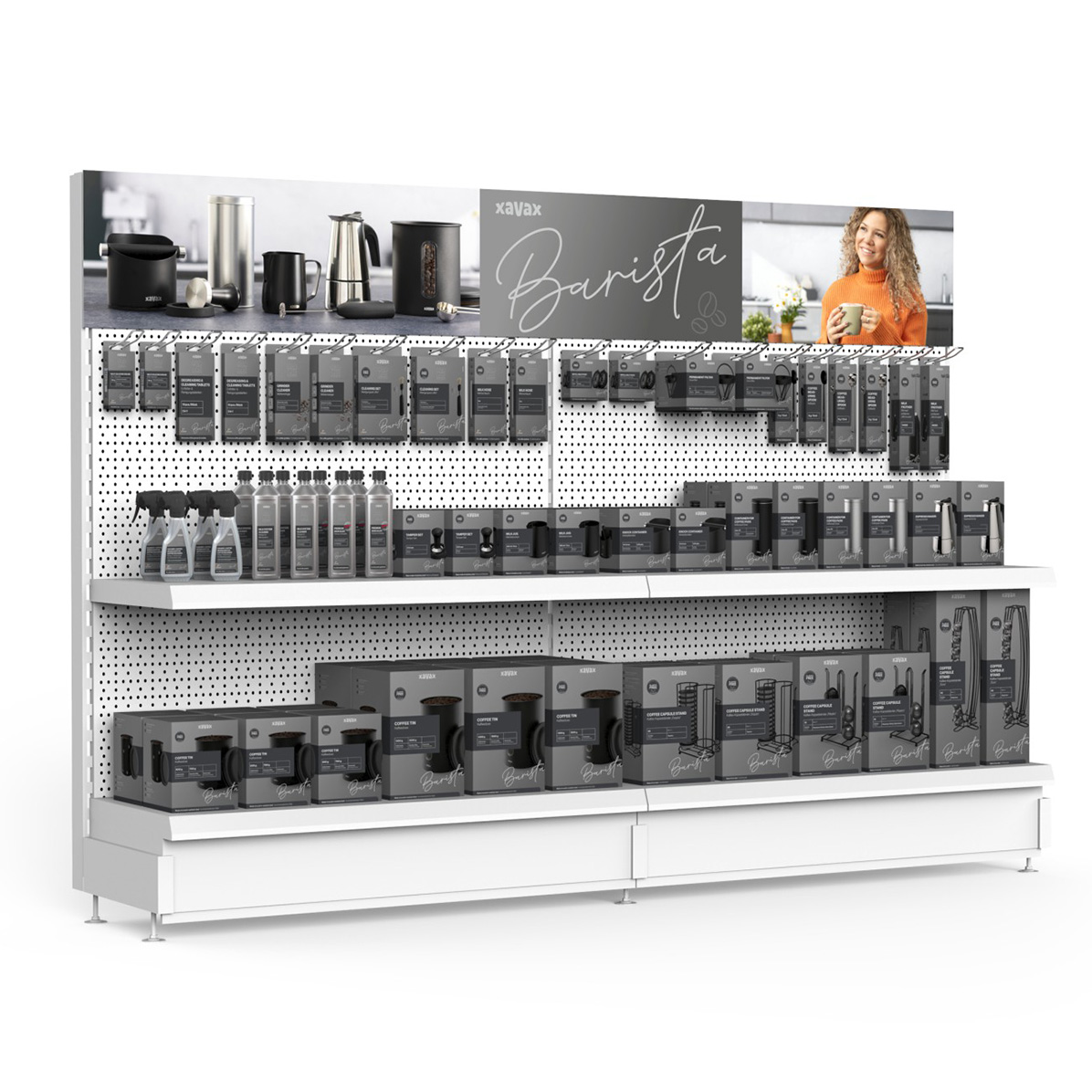 Im Verkaufsraum fällt Xavax Barista nicht nur mit Produktideen, sondern auch mit dem Verpackungsdesign ins Auge. Angelehnt an das stilvolle Ambiente, in dem Kaffeeautomaten und vor allem trendigeSiebträgermaschinen meist ausgestellt werden, punktet auch das Xavax Barista-Sortiment mit einem PoS-Auftritt in einer eleganten,zurückhaltenden Farbgebung. Die plastikfreie, FSC-zertifizierte Verpackung mit dem prägnanten Barista-Schriftzug und den großen Produktbildern hat zudem die SB-Fähigkeit im Fokus. Sie ist reduziert und aufgeräumt, aber gleichzeitig informativ und damit die optimale Verkaufsunterstützung. Das kommt nicht nur bei Verkaufswänden zur Wirkung, sondern auch bei kleineren Einzelpräsentern, die sich vor allem für platzsparende, aber wirkungsvolle Zweitplatzierungen anbieten.