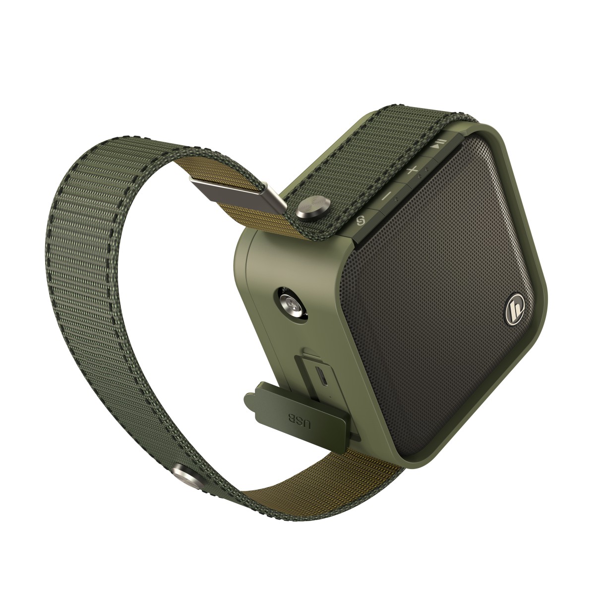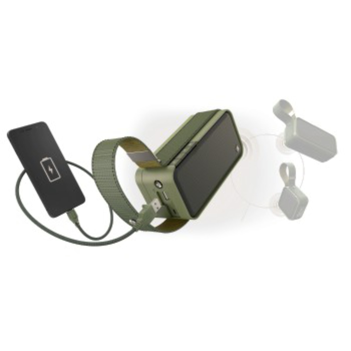 Die strapazierfähige Stoff-Umrandung schützt einerseits die Anschlüsse und dient andererseits aufgeklippst als Hängeschlaufe an Campingstuhl und Co. Erhältlich ist der „Soldier“ als kleines Modell mit fünf Watt und einem Li-Ion-Akku mit 2000 mAh für 14 Stunden Spielzeit oder in der größeren Ausführung mit 20 Watt, 4000 mAh und bis zu 16 Stunden Akkulaufzeit. Praktisch: Weil mit großer Wahrscheinlichkeit das Handy vorher schlapp macht, kümmert sich der im größeren Lautsprecher integrierte Power-Pack um die fortlaufende musikalische Untermalung. Und ist dann doch mal der Akku leer, wird er mit dem mitgelieferten USB-Kabel wieder aufgeladen.