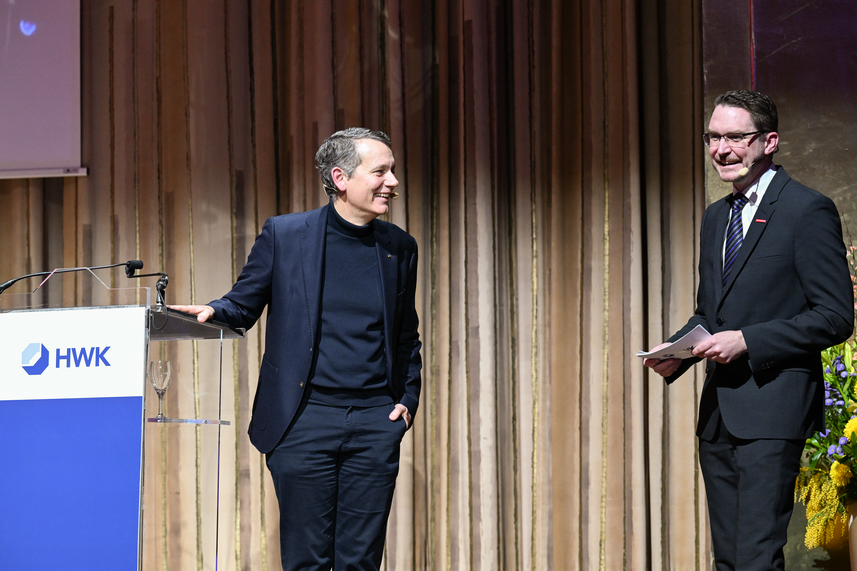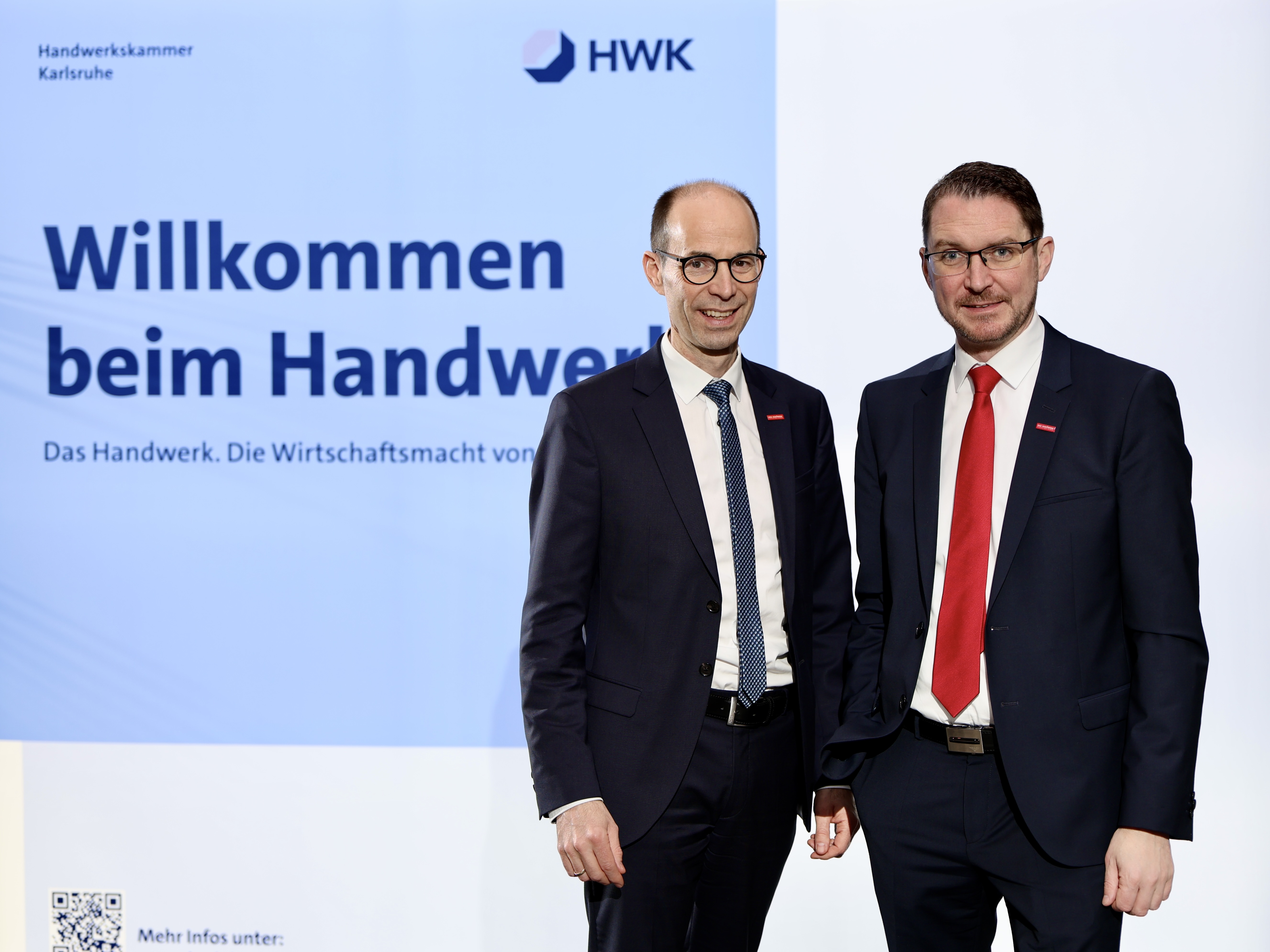 Begeistert vom Potenzial des Handwerks, wie es auch auf der Internationalen Handwerksmesse in München gezeigt wird: Hauptgeschäftsführer Walter Bantleon (links) und der Präsident der Handwerkskammer Karlsruhe, Karsten Lamprecht
