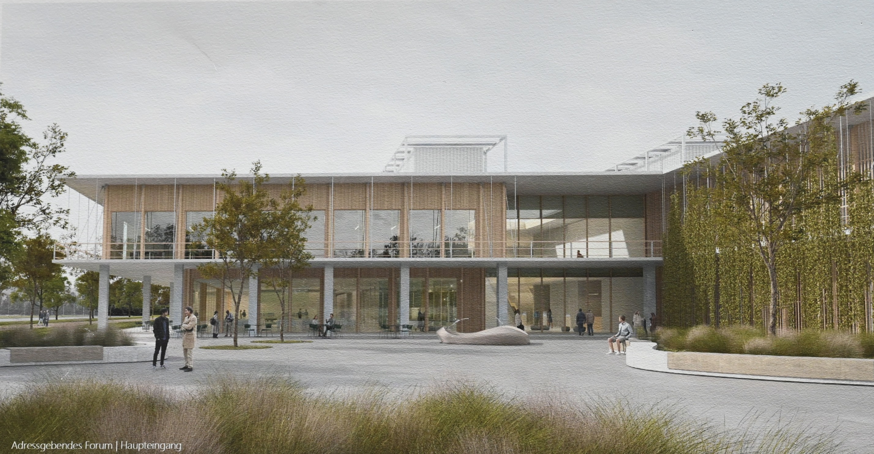 Siegreicher Entwurf: Diese Darstellung des Preisträgers Harter + Kanzler & Partner (Freiburg) zeigt die Außenansicht der geplanten Bildungsakademie der Handwerkskammer Karlsruhe. Bild: Harter + Kanzler & Partner