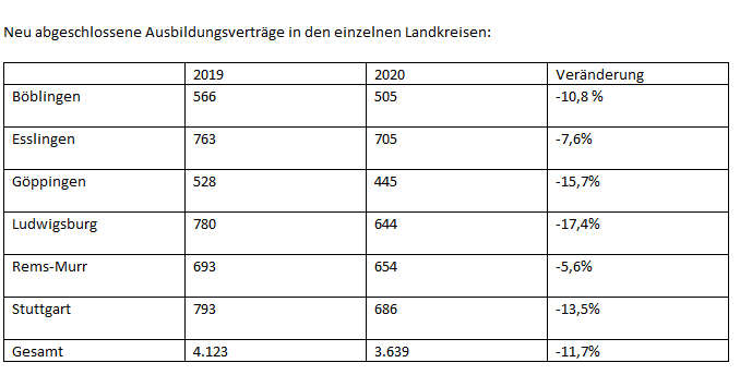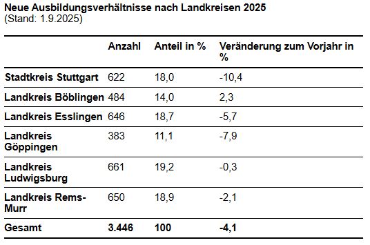 Neue Ausbildungsverhältnisse nach Landkreisen 2025