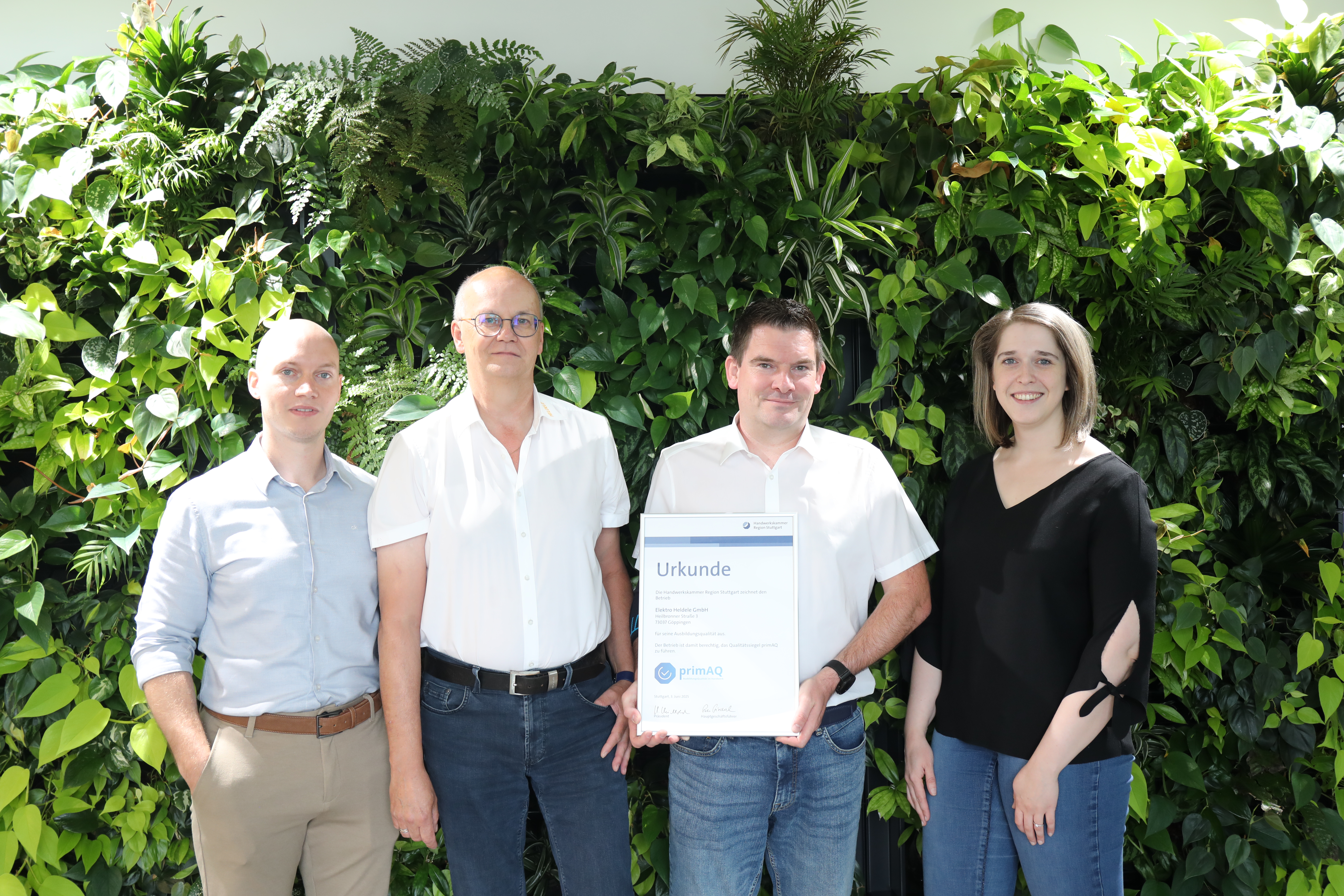 V.l.n.r.: Auszubildende Michèle Zerbe, Geschäftsführer von TÜRENMANN Stuttgart Tobias Rehder, EU-Parlamentsabgeordneter Rainer Wieland, Landtagsabgeordneter Rainhard Löffler, Marianne Thyssen / Foto: HWK