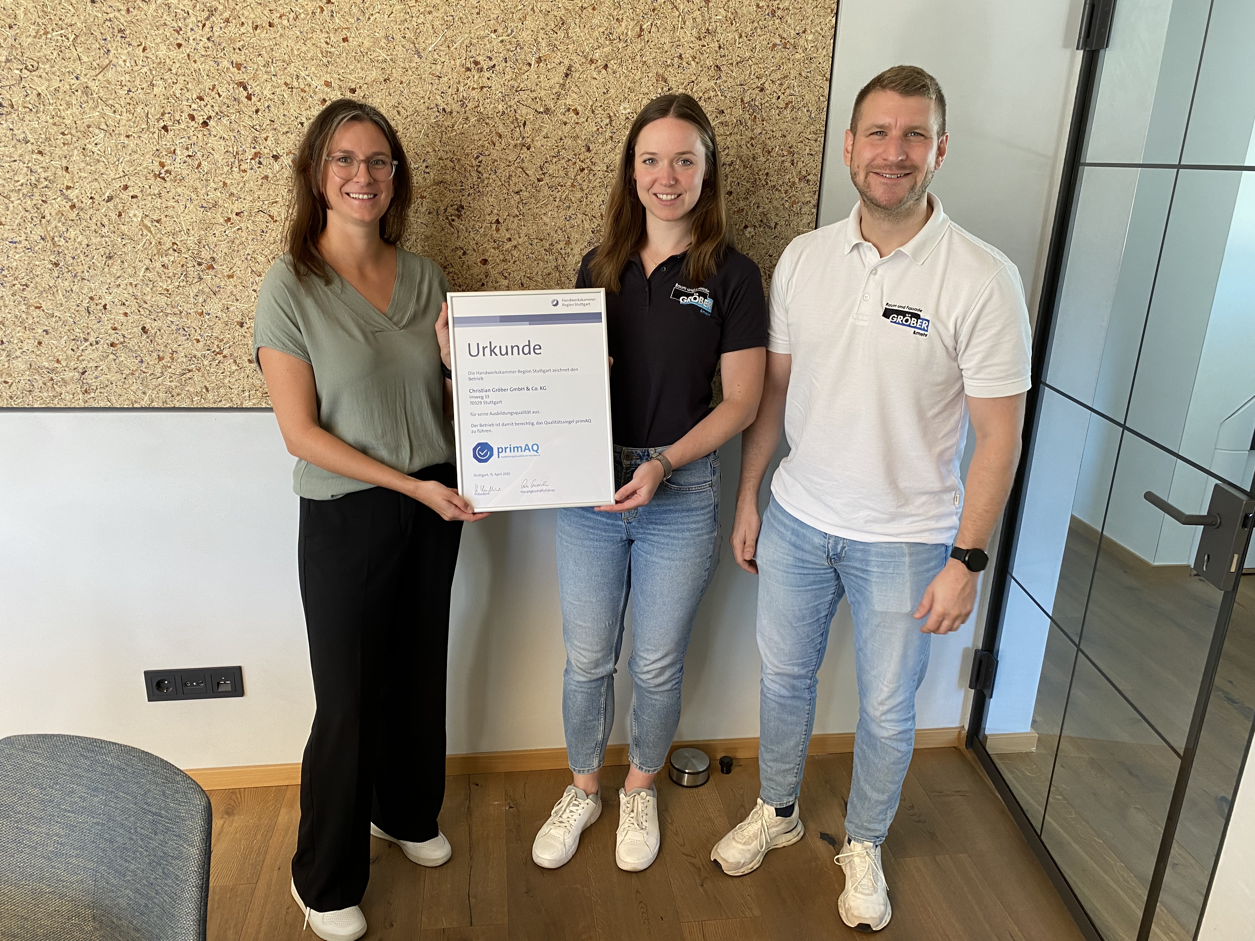 Stahlbau Nägele aus dem Landkreis Göppingen ist auch einer der zertifizierten primAQ-Betriebe. „Mit der Teilnahme wollen wir Werbung fürs Handwerk machen, junge Menschen begeistern und gleichzeitig unser Engagement sichtbar machen“, erzählt Geschäftsführerin Stephanie Nägele-Molitor. Für die Christian Gröber GmbH & Co. KG stehen zudem die Azubis im Fokus. „Man kann die Qualität der Ausbildung verbessern, in der Form, dass sie vollständiger wird und dass sie auch mehr auf die Jugendlichen zugeschnitten ist“, erläutert der Geschäftsführer Hermann Blattner.