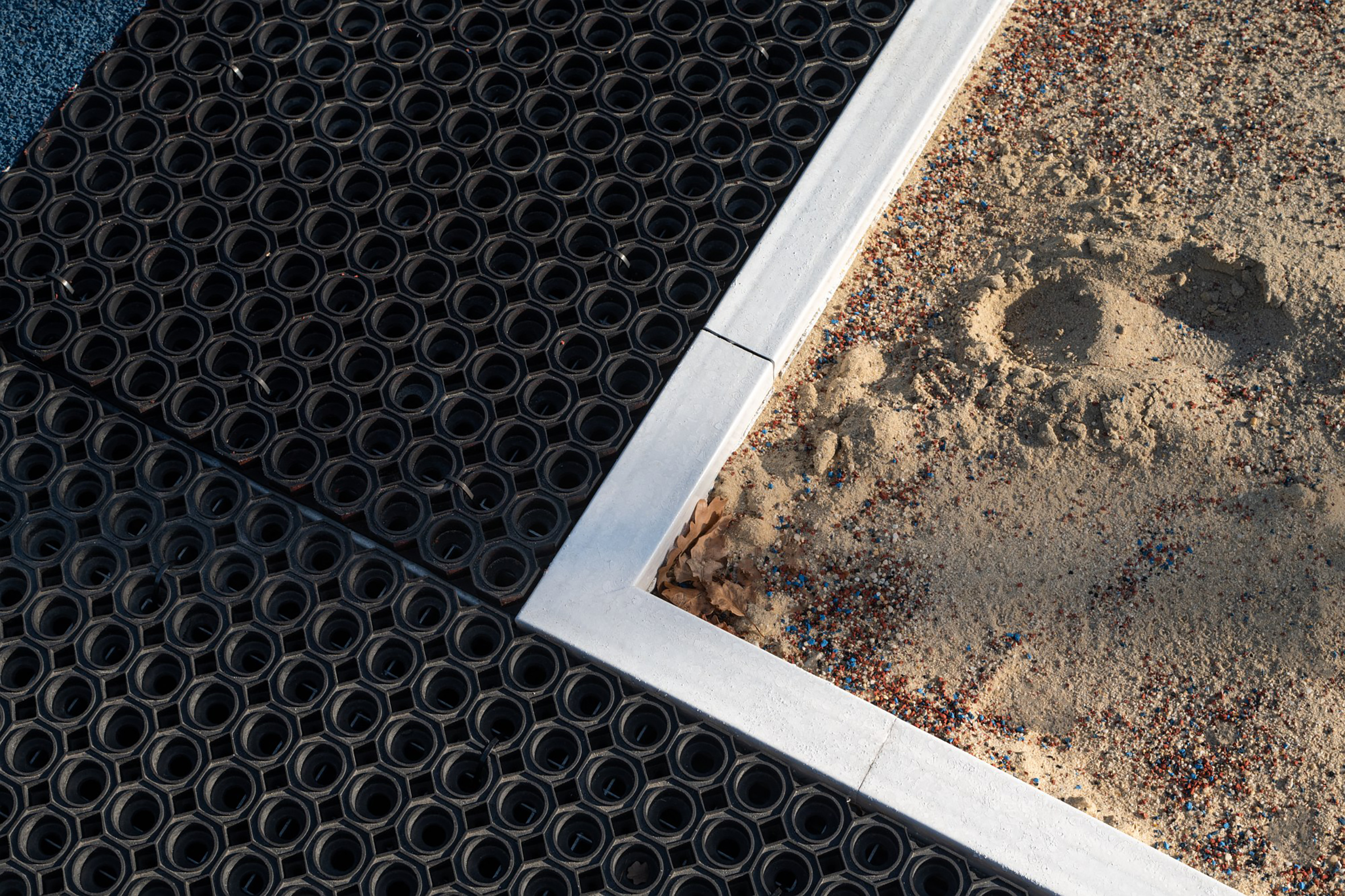 Diese Lösung überzeugt durch eine flächenbündige, nahezu unsichtbare Integration in die Laufbahn und sorgt gleichzeitig für eine zuverlässige Wasserableitung. Das Material ist UV- und frostbeständig, korrosionsbeständig und vollständig recycelbar – ein deutlicher Beitrag zu einer ressourcenschonenden Bauweise.