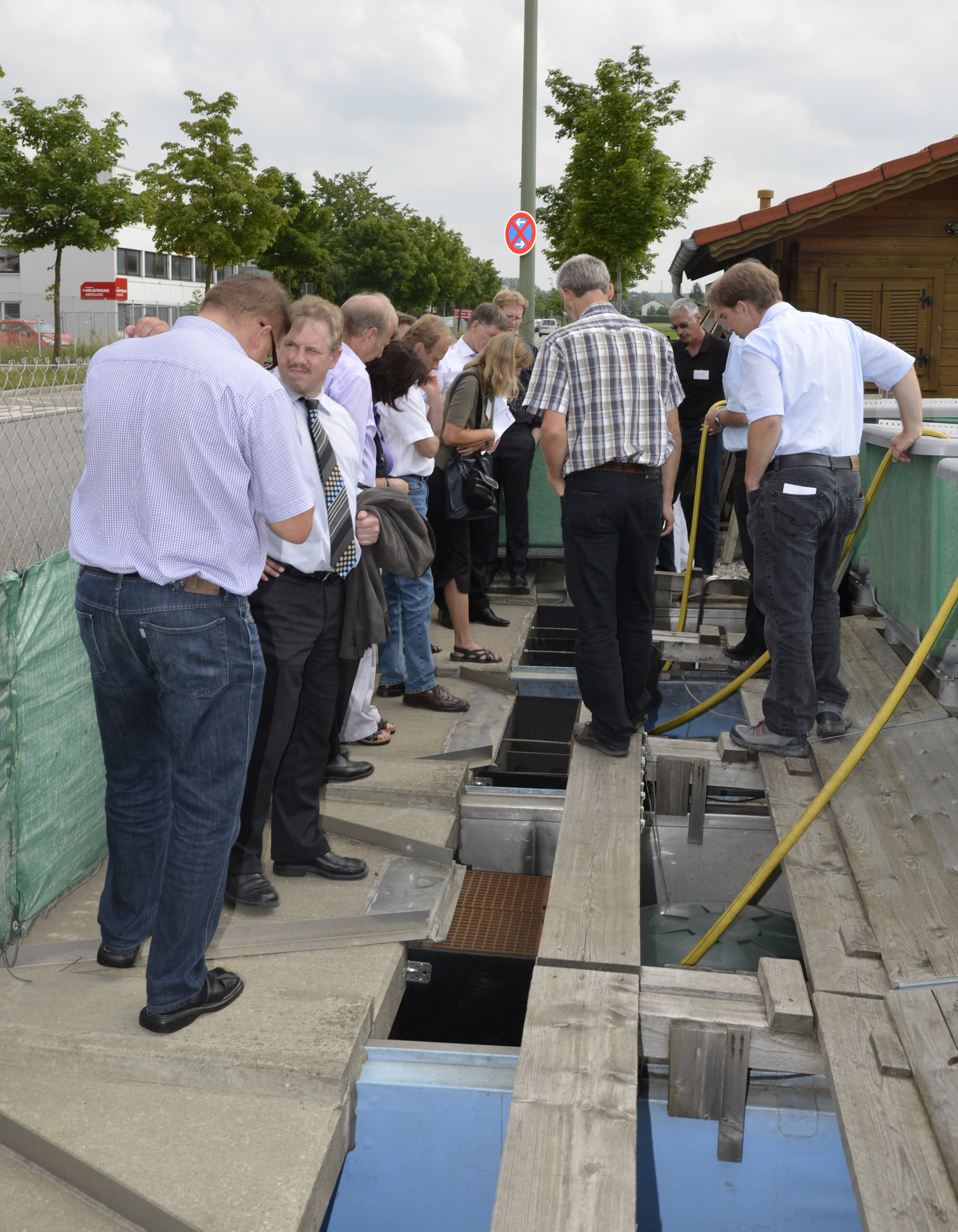 „Dass unser Modell hält, was es verspricht, lässt sich hier ‚live’ erleben“, erklärt Hauraton-Produktentwickler Claus Huwe. „Mit Drainfix Clean haben wir ein höchst effizientes System entworfen, um Regenwasser zu sammeln, effektiv zu reinigen und sicher abzuleiten. In Augsburg lässt sich dies anhand der einzelnen Filteranlagen praxisnah und anschaulich erklären.“ Gespannt folgten die Besucher den detaillierten Ausführungen des Fachmanns vor Ort. Dietmar Sperfeld von der Fachvereinigung Betriebs- und Regenwassernutzung e.V. war überrascht, mit welchem Aufwand Hauraton diese in Deutschland einzigartige Versuchsanlage betreibt. „Sie liefert nicht nur für Kunden, sondern auch für die Fachwelt wichtige und besonders belastbare Daten und Erkenntnisse im Bereich der nachhaltigen Niederschlagswasserreinigung.“