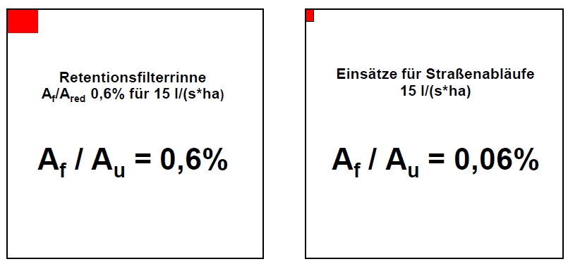 Über das Anschlussflächenverhältnis wird die hydraulische Leistung der Regenwasserbehandlungsanlage gesteuert. Je größer das Anschlussflächenverhältnis, desto größer ist die Filterfläche des Retentionsrinnenfiltersystems (Abb. 5).