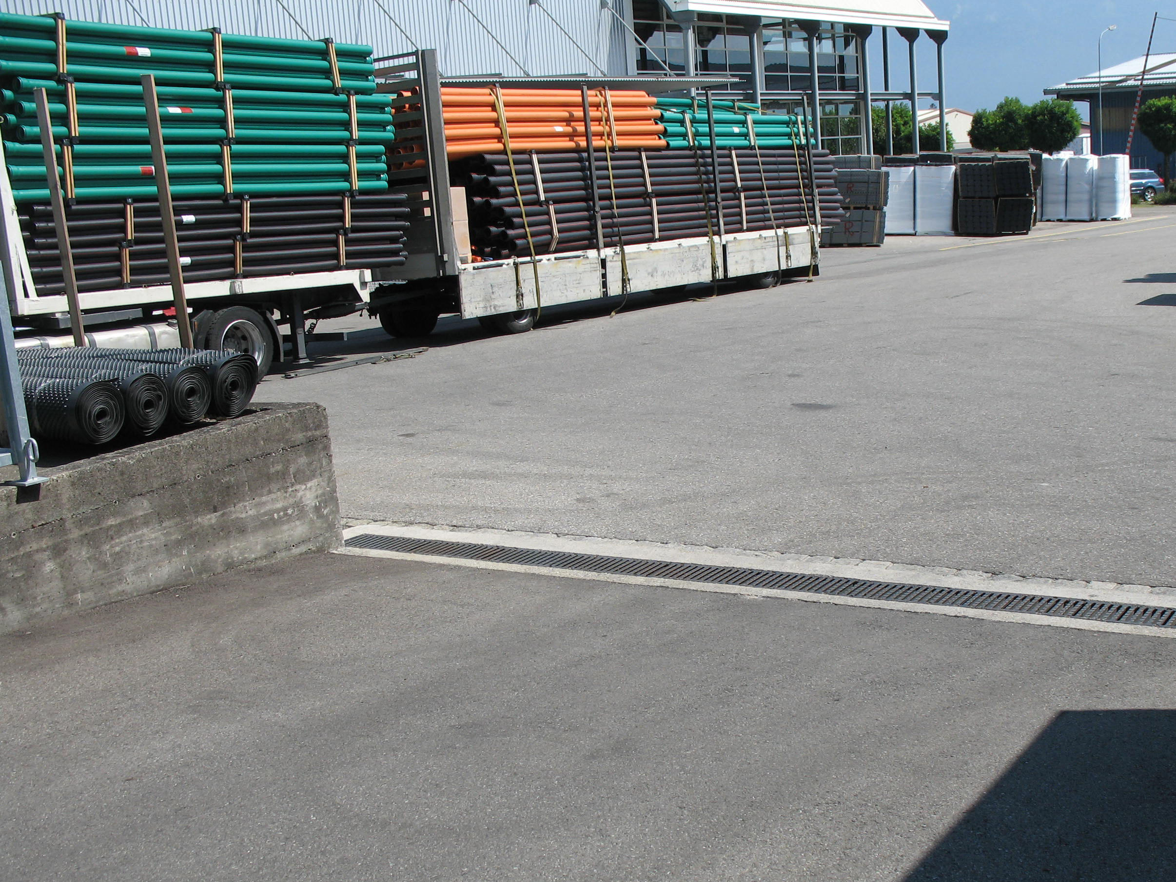 Beim Baustofffachhandel SFS unimarket, dem führenden Baustoffexperten in der Schweiz, wurde im August 2013 eine stark befahrene Lagerfläche im Außenbereich des Standortes Altstätten saniert. In diesem Zuge musste auch das Entwässerungssystem erneuert werden.