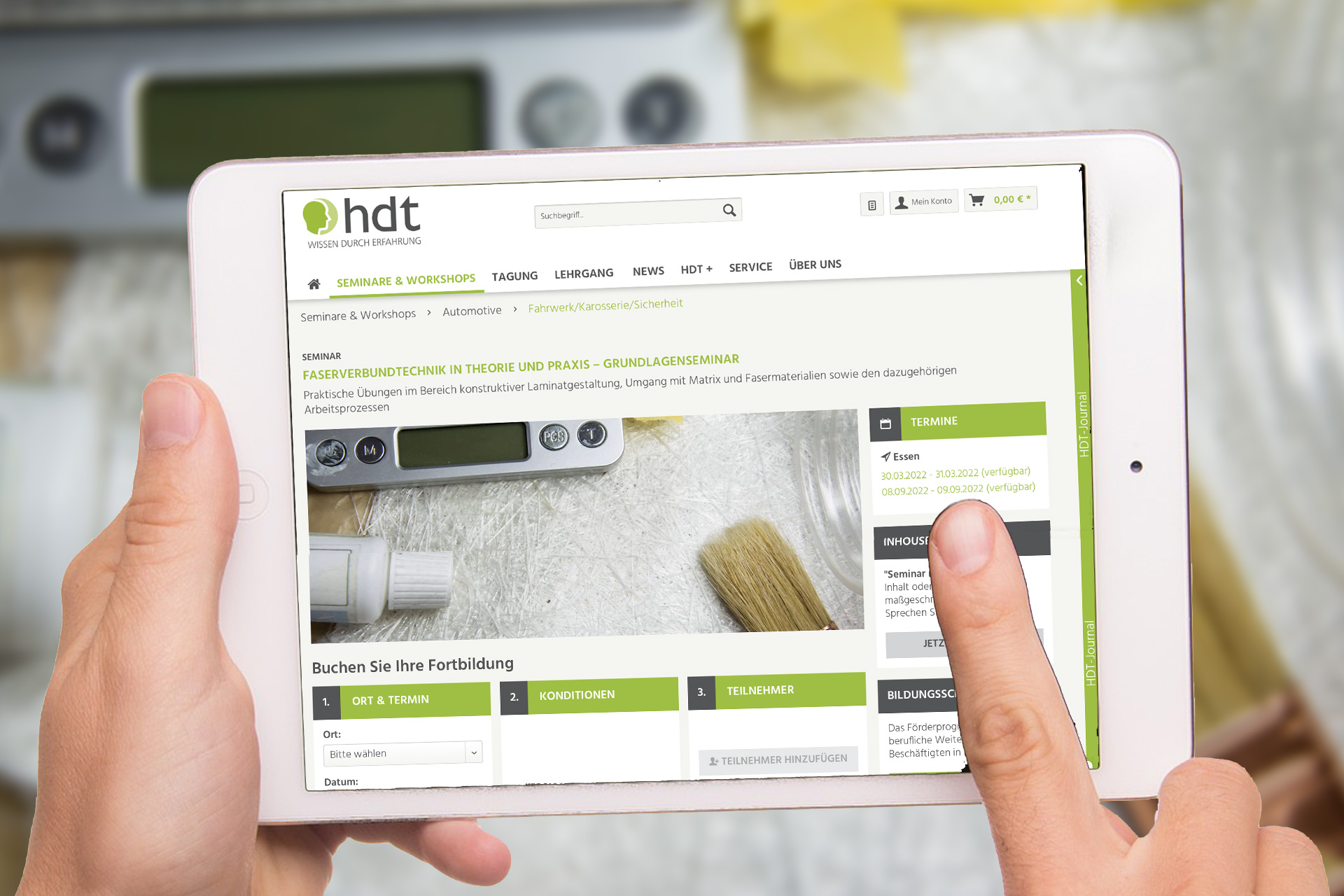 Details zum Faserverbundtechnik-Grundlagenseminar finden Interessierte auf der Website des HDT: https://www.hdt.de/faserverbundtechnik