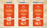 Dabei ist in der Basisvariante „Senior“ keine Flatrate enthalten. Kunden bezahlen 9 Cent in der Minute in das deutsche Festnetz, 14 Cent in alle deutschen Mobilfunknetze. In den Varianten „Senior Flat“ sowie „Senior Flat Plus“ entfallen die Kosten für die innerdeutschen Festnetzgespräche. Sie sind im Grundpreis von 16,95 Euro bzw. 18,95 Euro im Monat wie es der Name schon verrät, enthalten. Die 14 Cent in die deutschen Mobilfunknetze bleiben.