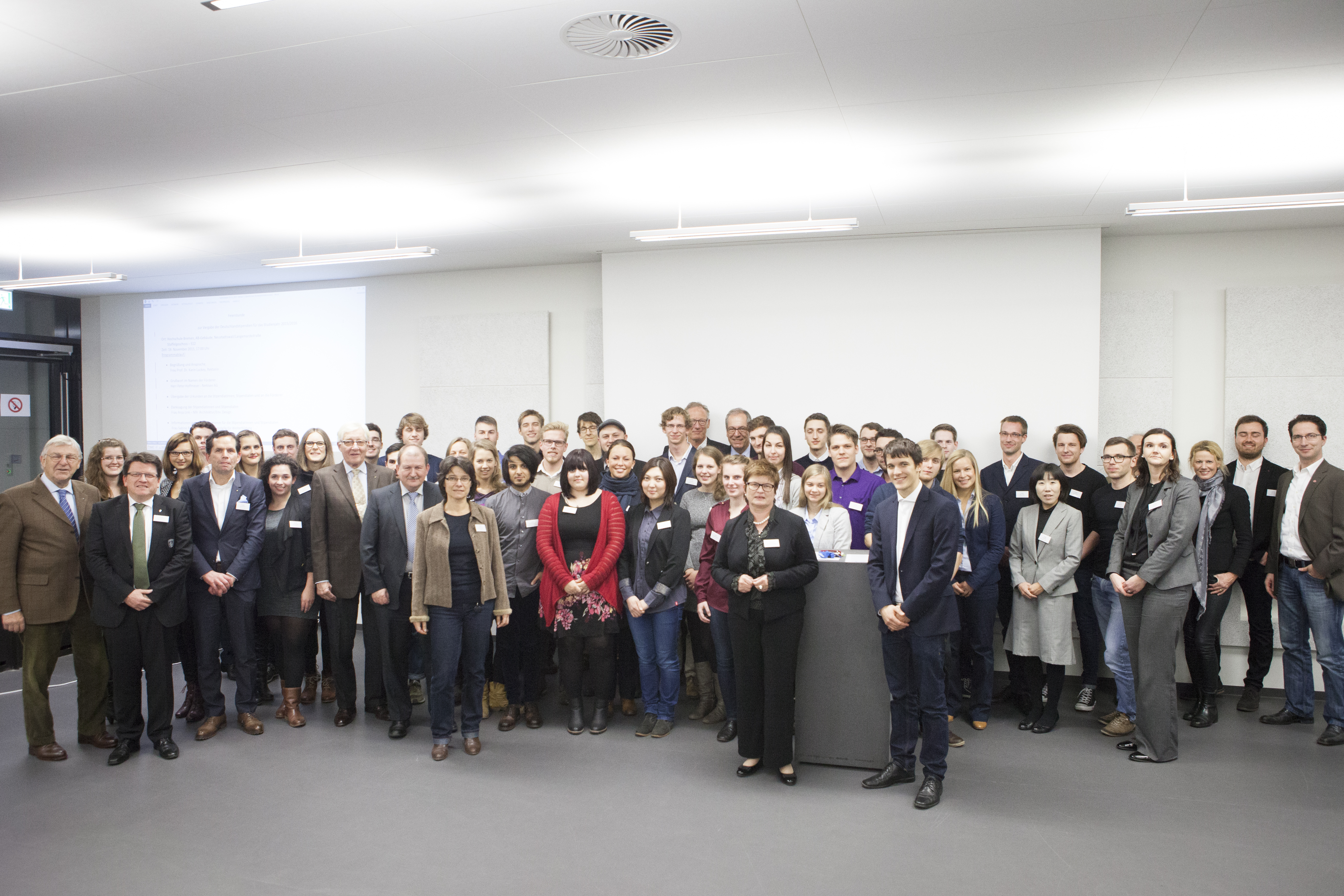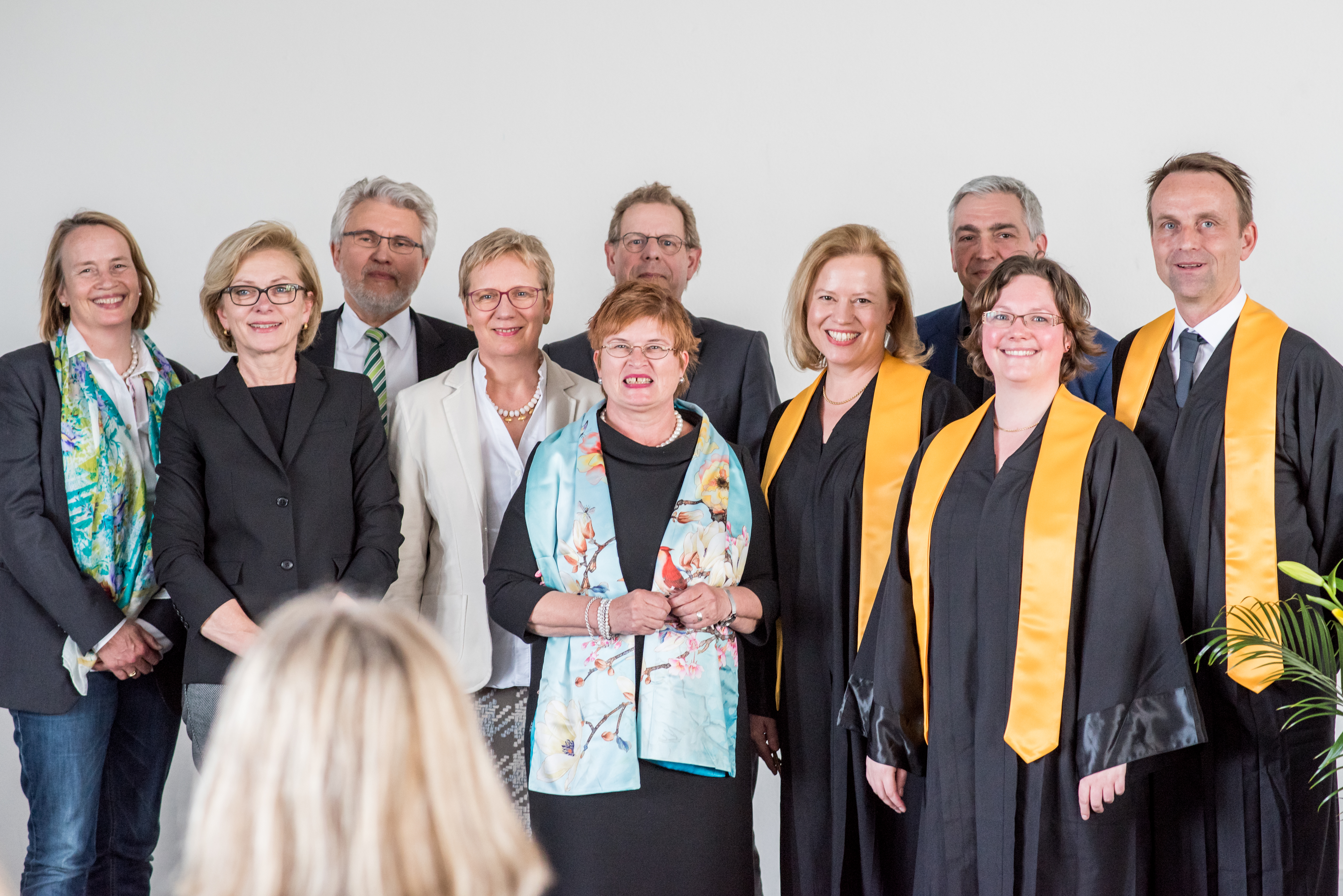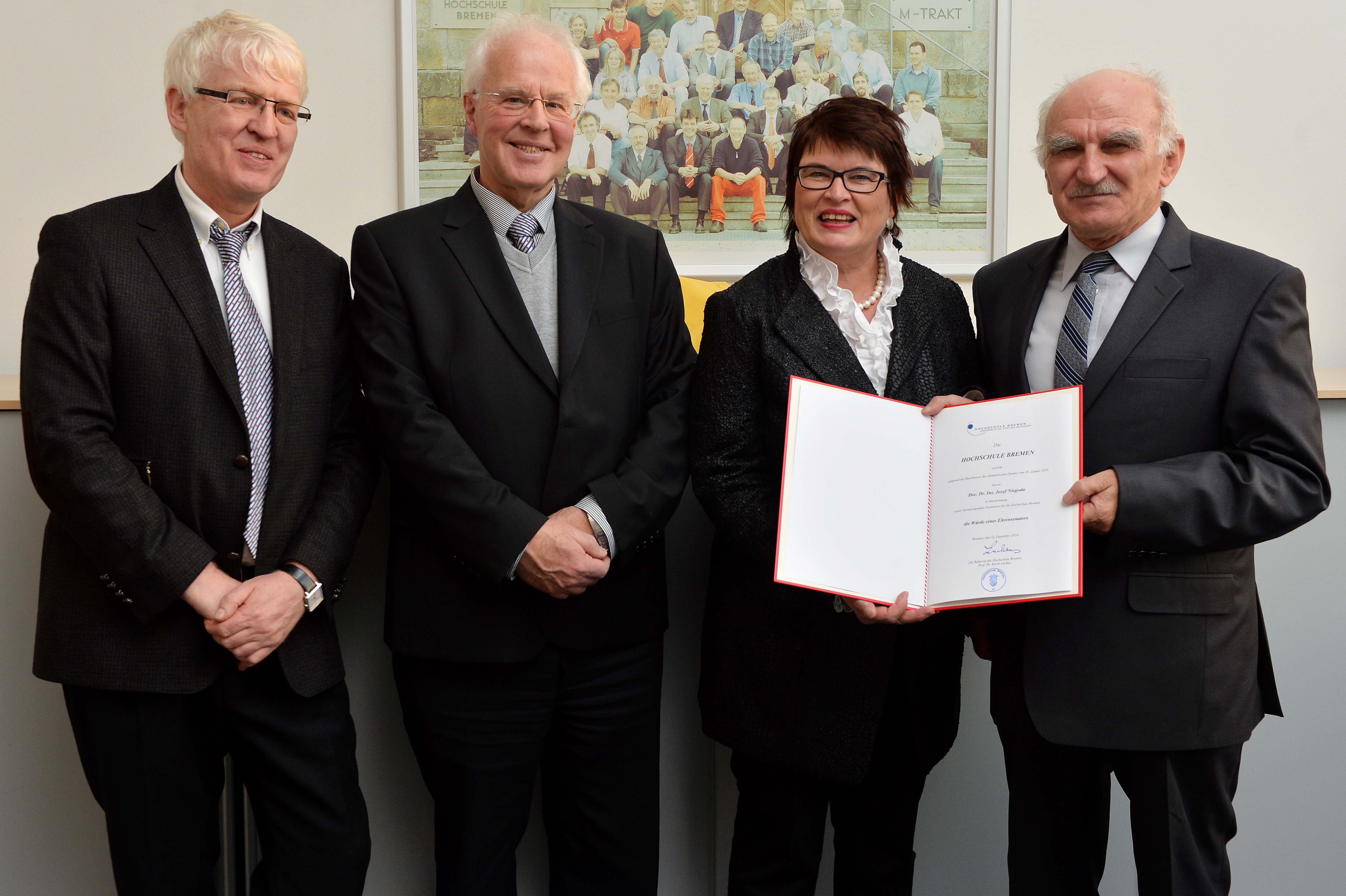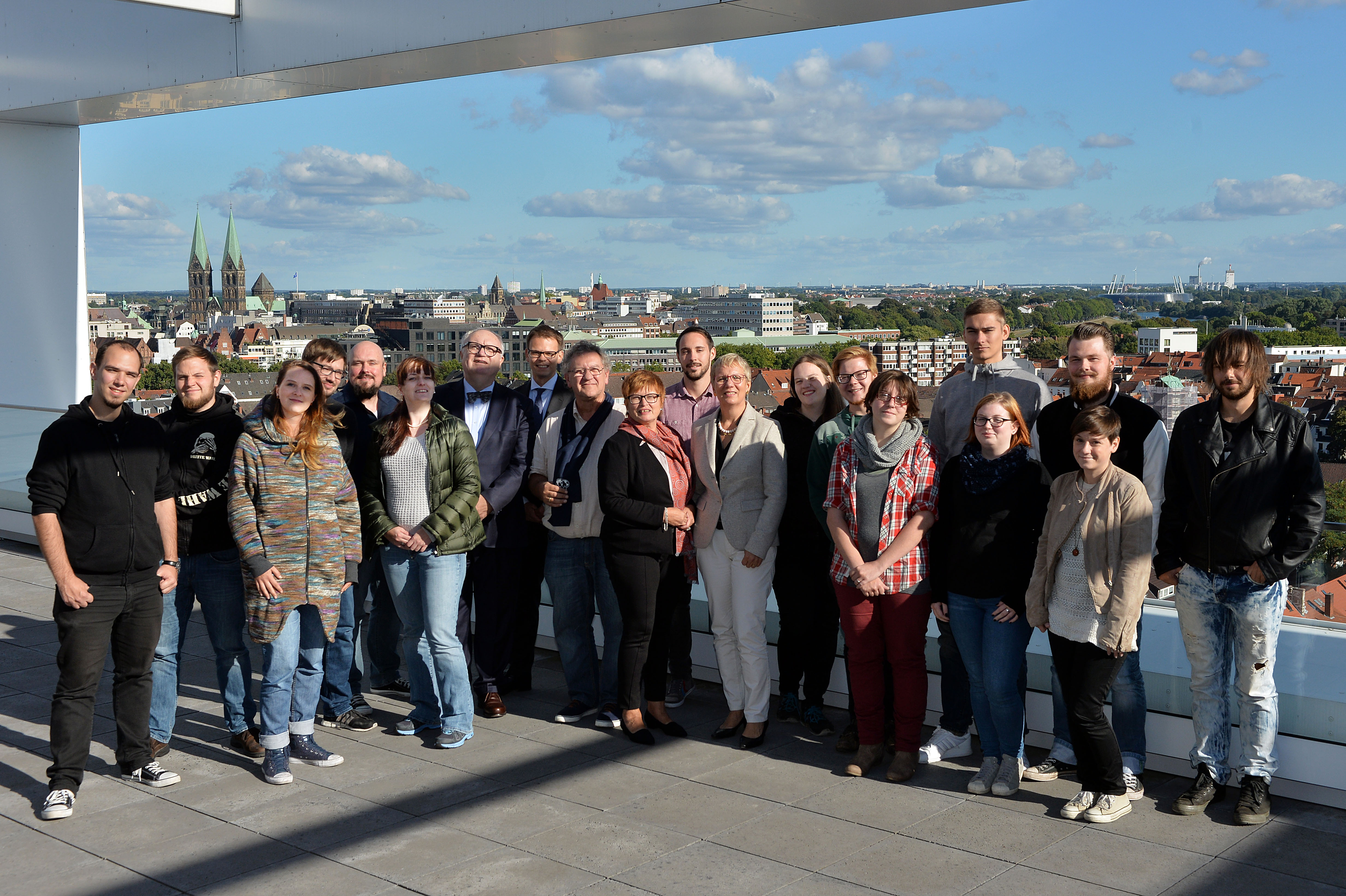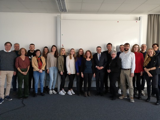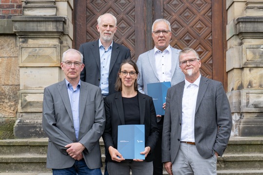 von links nach rechts: (untere Reihe) Prof. Dr. Ingo Haug, Prof. Dr. Jasminka Matevska, Rektorin Prof. Dr. Karin Luckey, Susanne Grobien (CDU), (mittlere Reihe) Dekan Elektrotechnik und Informatik Prof. Dr. Helmut Eirund, Dekan Natur und Technik, Prof. Dr. Jürgen Westhof, Konrektorin Prof. Dr. Uta Bohnebeck, Prof. Dr. Evren Eren, Konrektor Prof. Dr. Axel Viereck, (obere Reihe) Prof. Dr. Carsten Reinhardt, Dr. Frank Thoss (Handelskammer) und Prof. Dr. Jan-Henning Dirks. - Nicht abgebildet sind Prof. Dr. Claudia Kromrei, Prof. Dr. Burkhard Lemper und Dr. Elke Wietoska