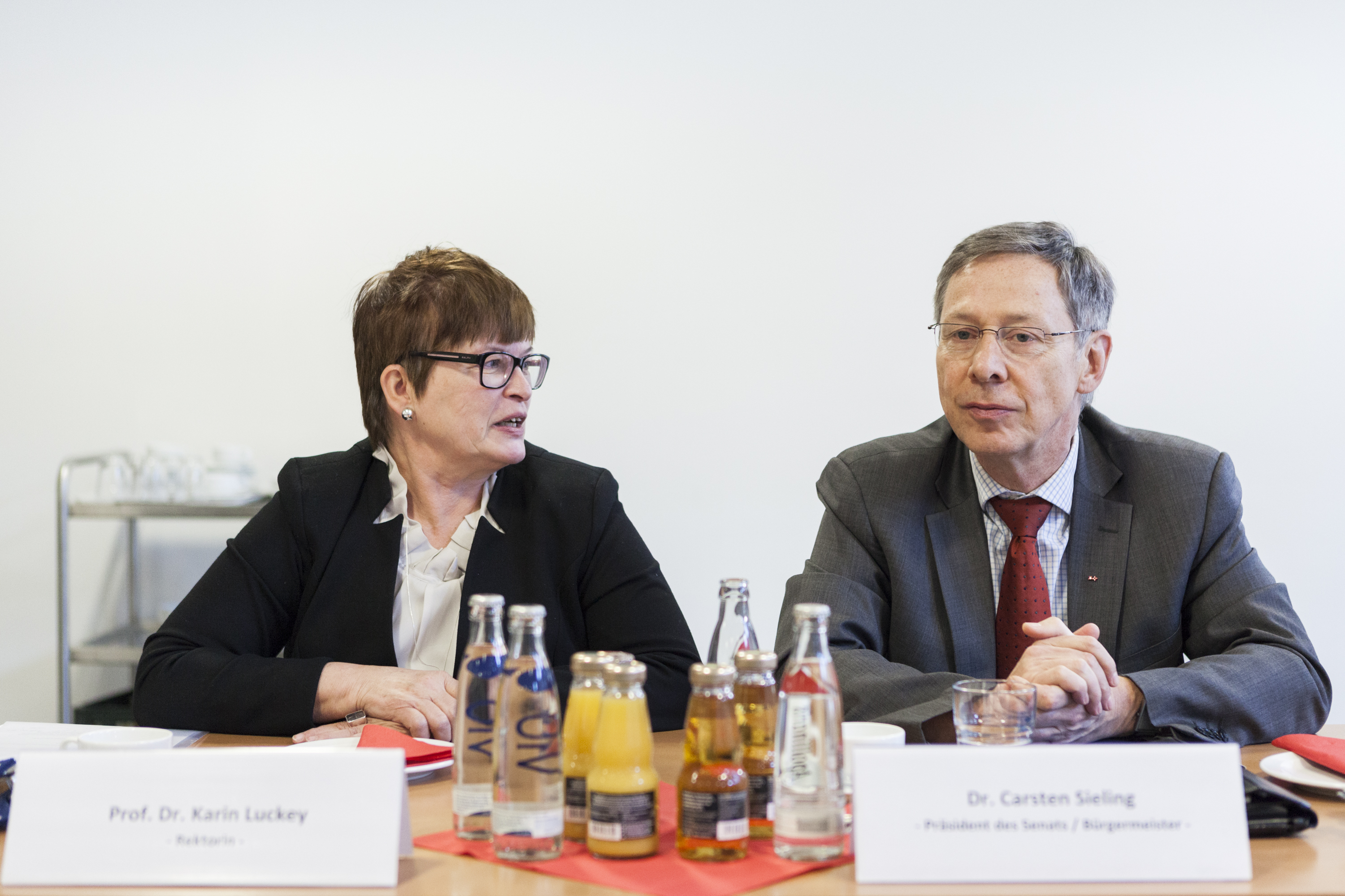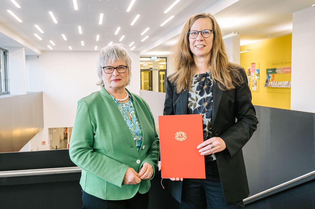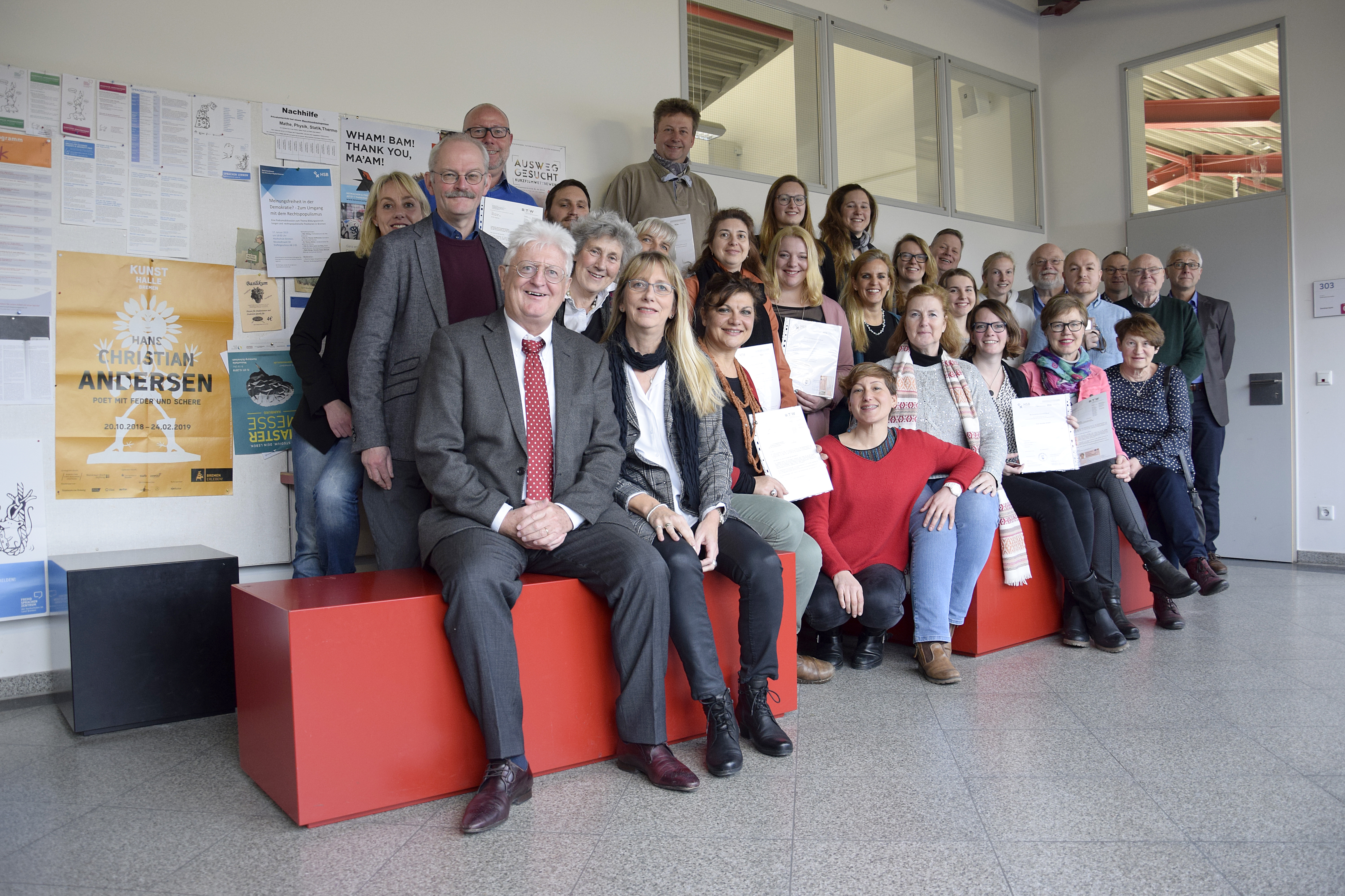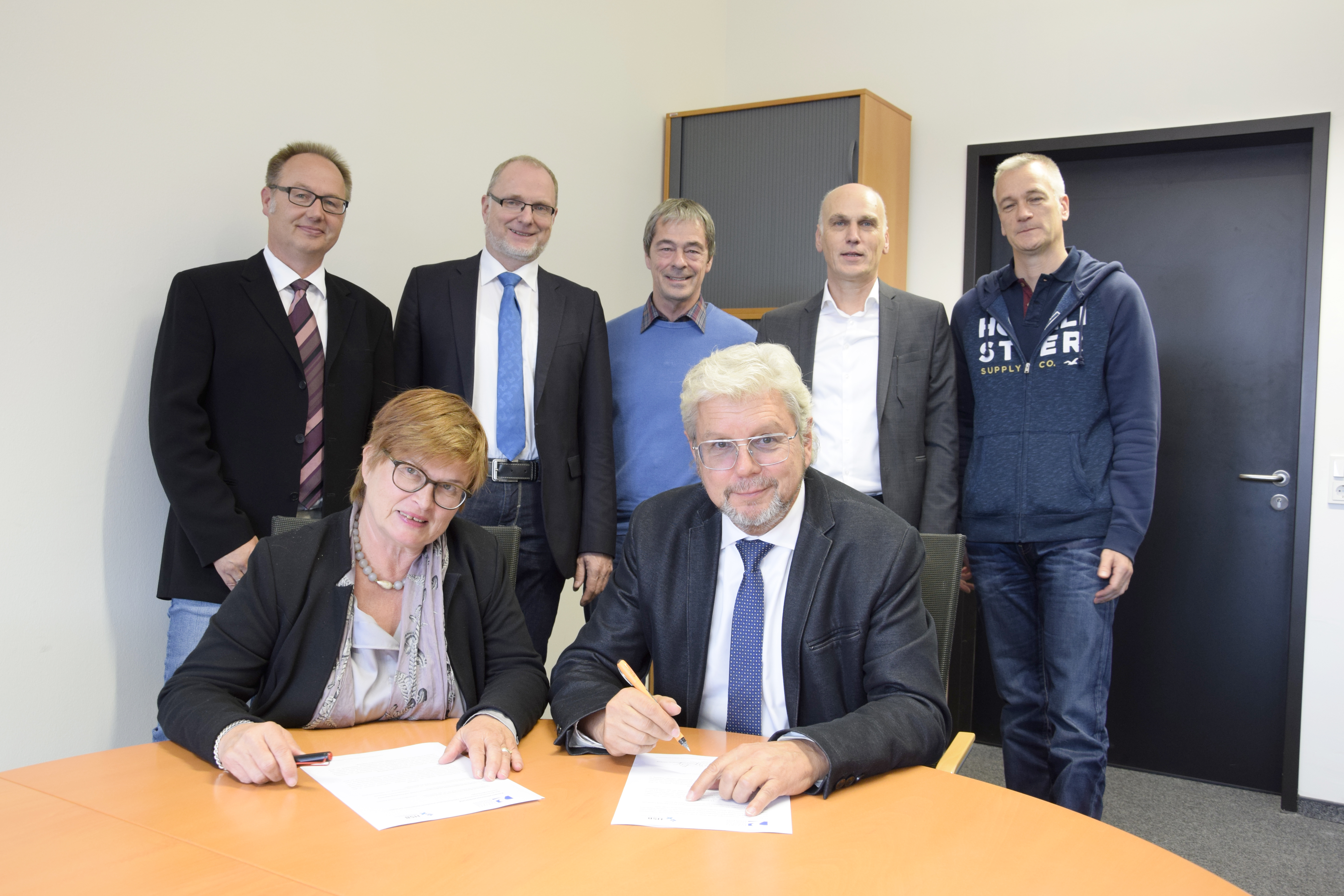 von links nach rechts: (untere Reihe) Prof. Dr. Ingo Haug, Prof. Dr. Jasminka Matevska, Rektorin Prof. Dr. Karin Luckey, Susanne Grobien (CDU), (mittlere Reihe) Dekan Elektrotechnik und Informatik Prof. Dr. Helmut Eirund, Dekan Natur und Technik, Prof. Dr. Jürgen Westhof, Konrektorin Prof. Dr. Uta Bohnebeck, Prof. Dr. Evren Eren, Konrektor Prof. Dr. Axel Viereck, (obere Reihe) Prof. Dr. Carsten Reinhardt, Dr. Frank Thoss (Handelskammer) und Prof. Dr. Jan-Henning Dirks. - Nicht abgebildet sind Prof. Dr. Claudia Kromrei, Prof. Dr. Burkhard Lemper und Dr. Elke Wietoska