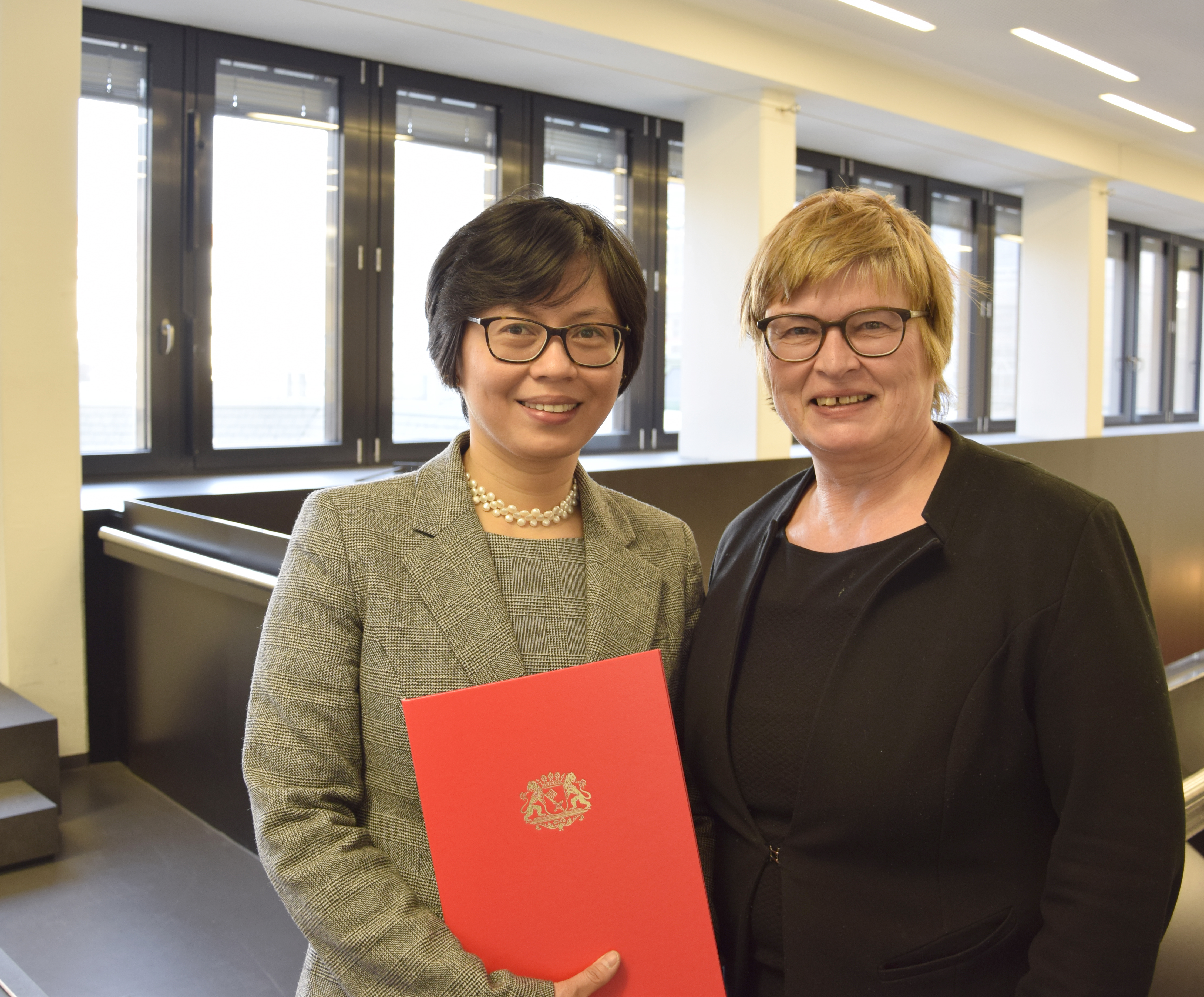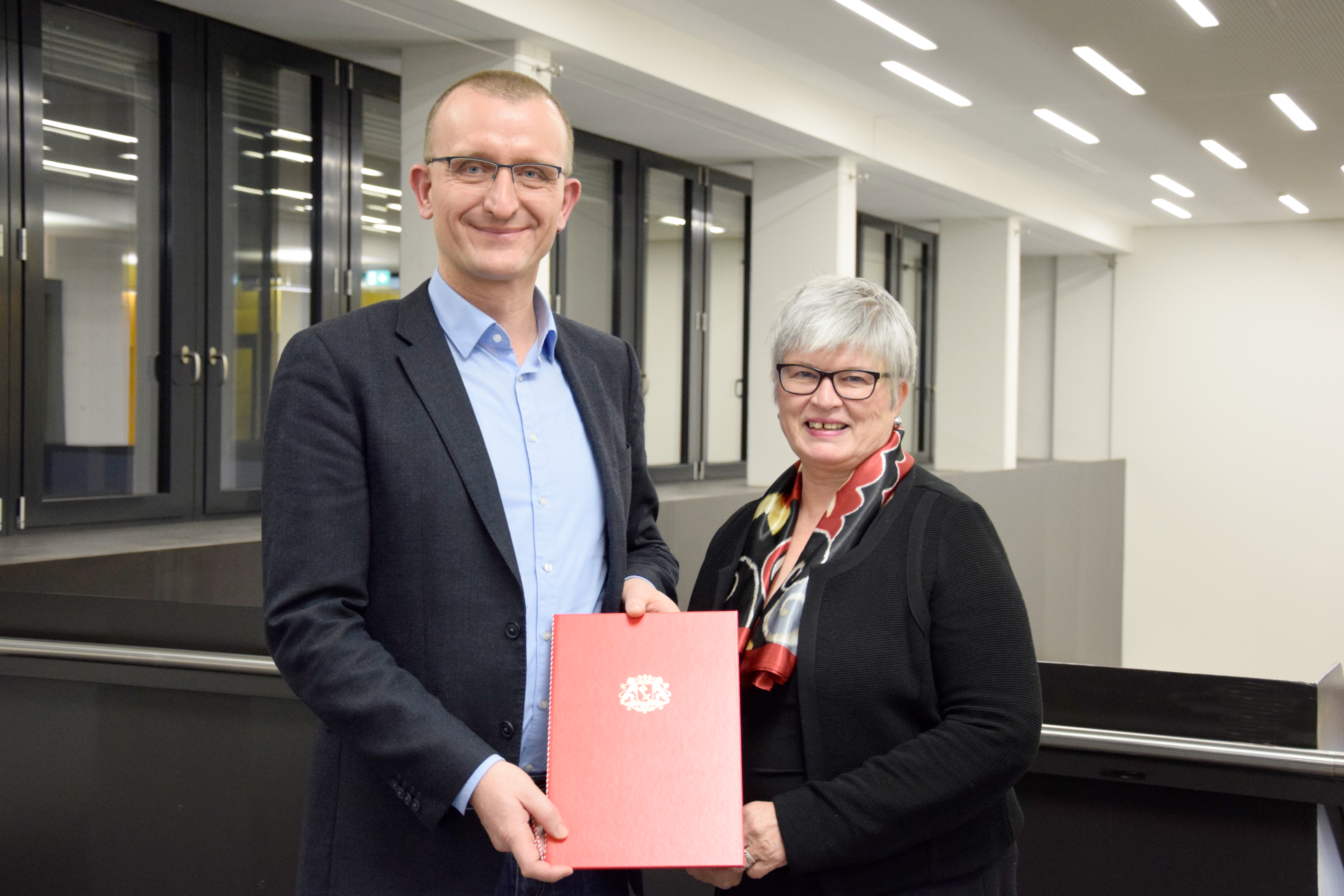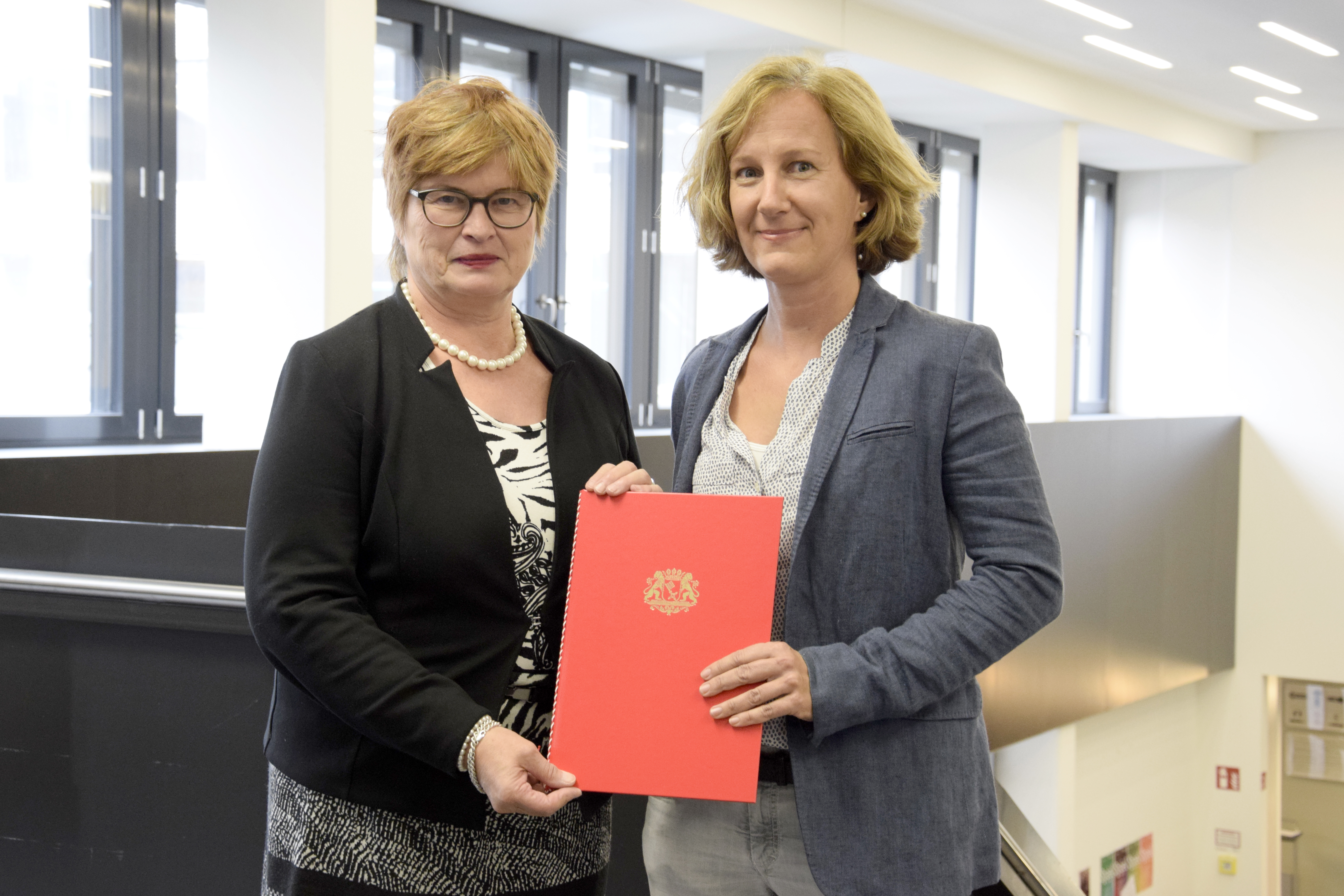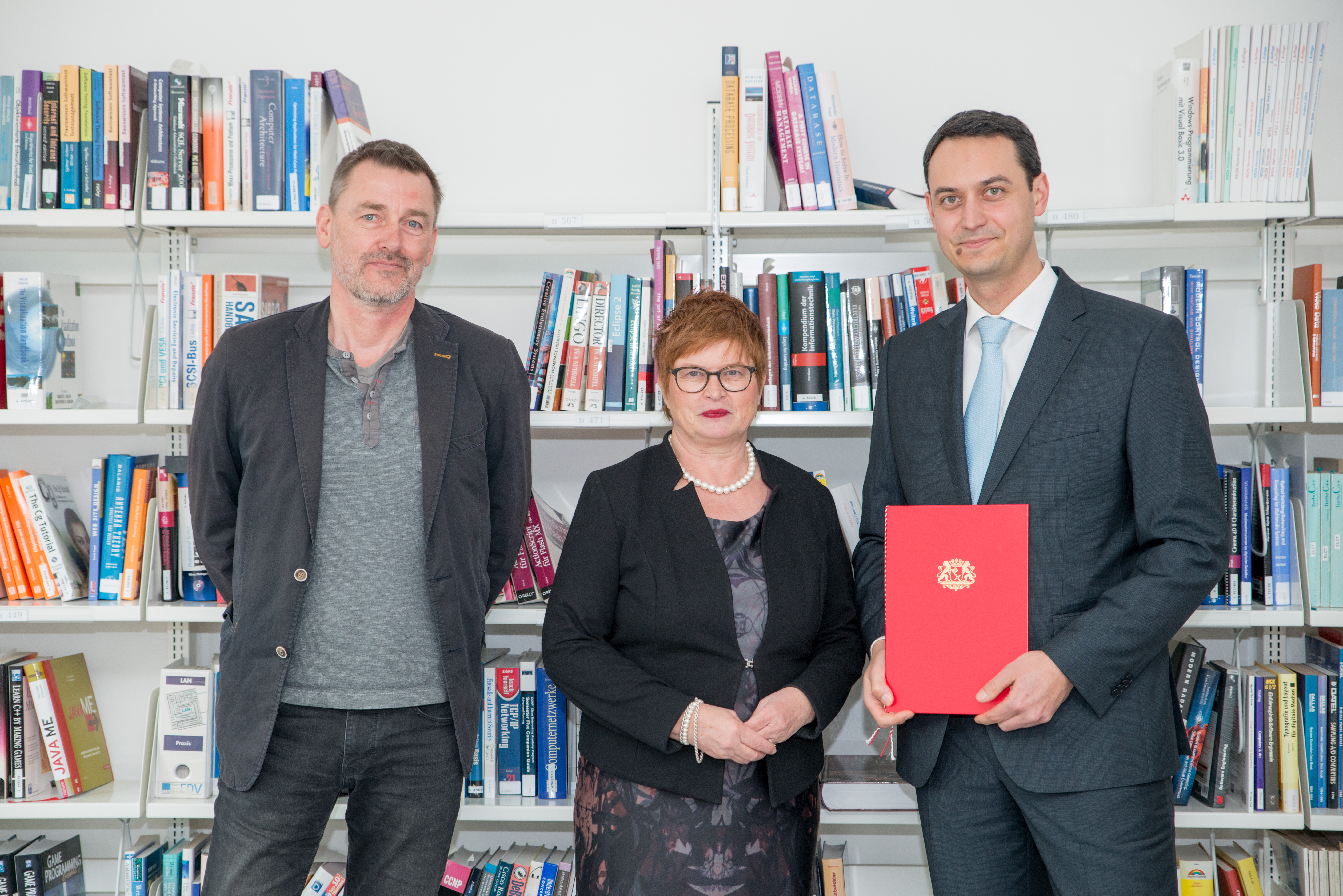 von links nach rechts: (untere Reihe) Prof. Dr. Ingo Haug, Prof. Dr. Jasminka Matevska, Rektorin Prof. Dr. Karin Luckey, Susanne Grobien (CDU), (mittlere Reihe) Dekan Elektrotechnik und Informatik Prof. Dr. Helmut Eirund, Dekan Natur und Technik, Prof. Dr. Jürgen Westhof, Konrektorin Prof. Dr. Uta Bohnebeck, Prof. Dr. Evren Eren, Konrektor Prof. Dr. Axel Viereck, (obere Reihe) Prof. Dr. Carsten Reinhardt, Dr. Frank Thoss (Handelskammer) und Prof. Dr. Jan-Henning Dirks. - Nicht abgebildet sind Prof. Dr. Claudia Kromrei, Prof. Dr. Burkhard Lemper und Dr. Elke Wietoska