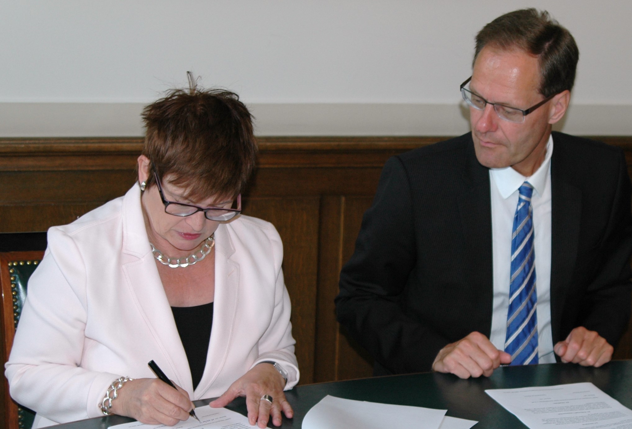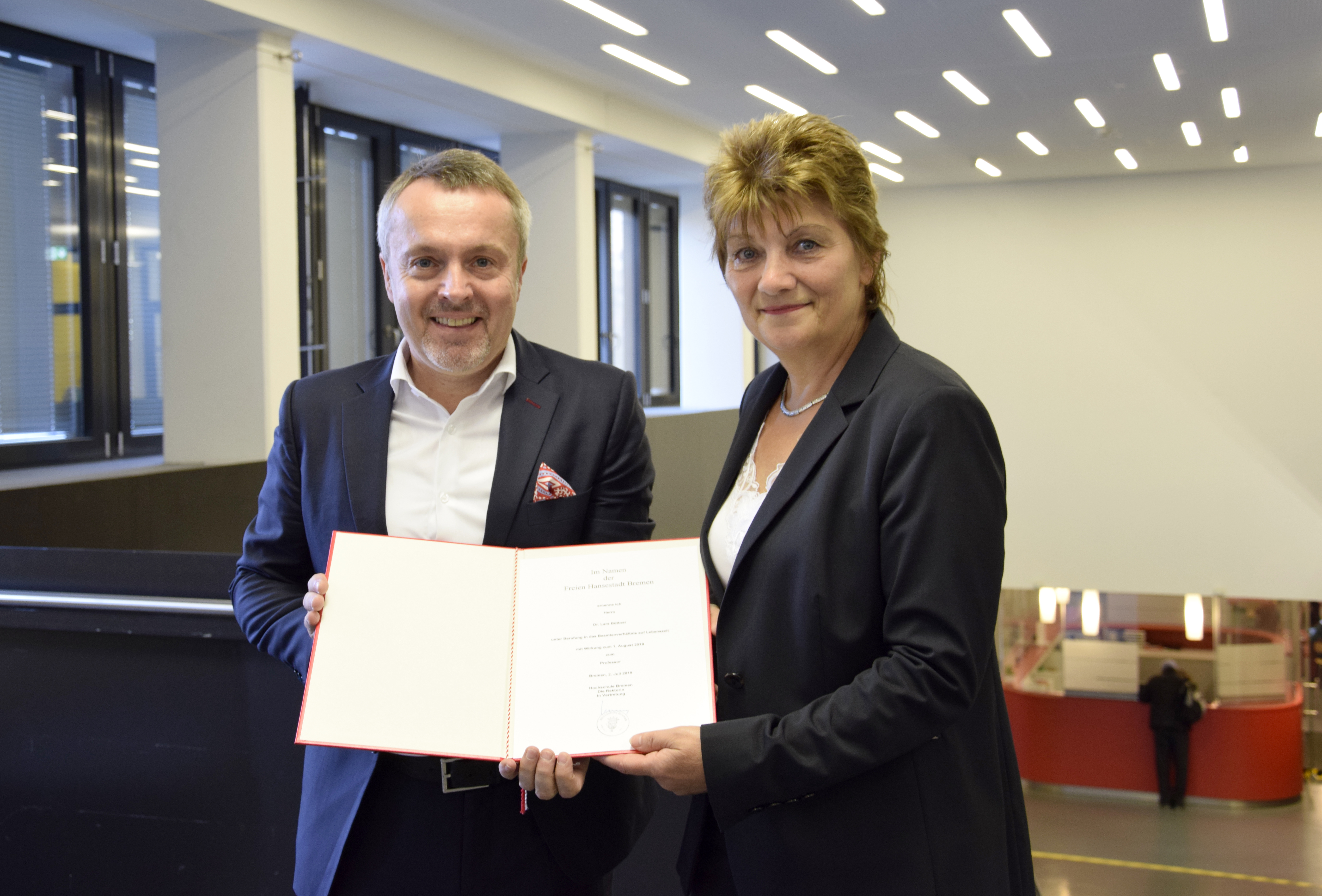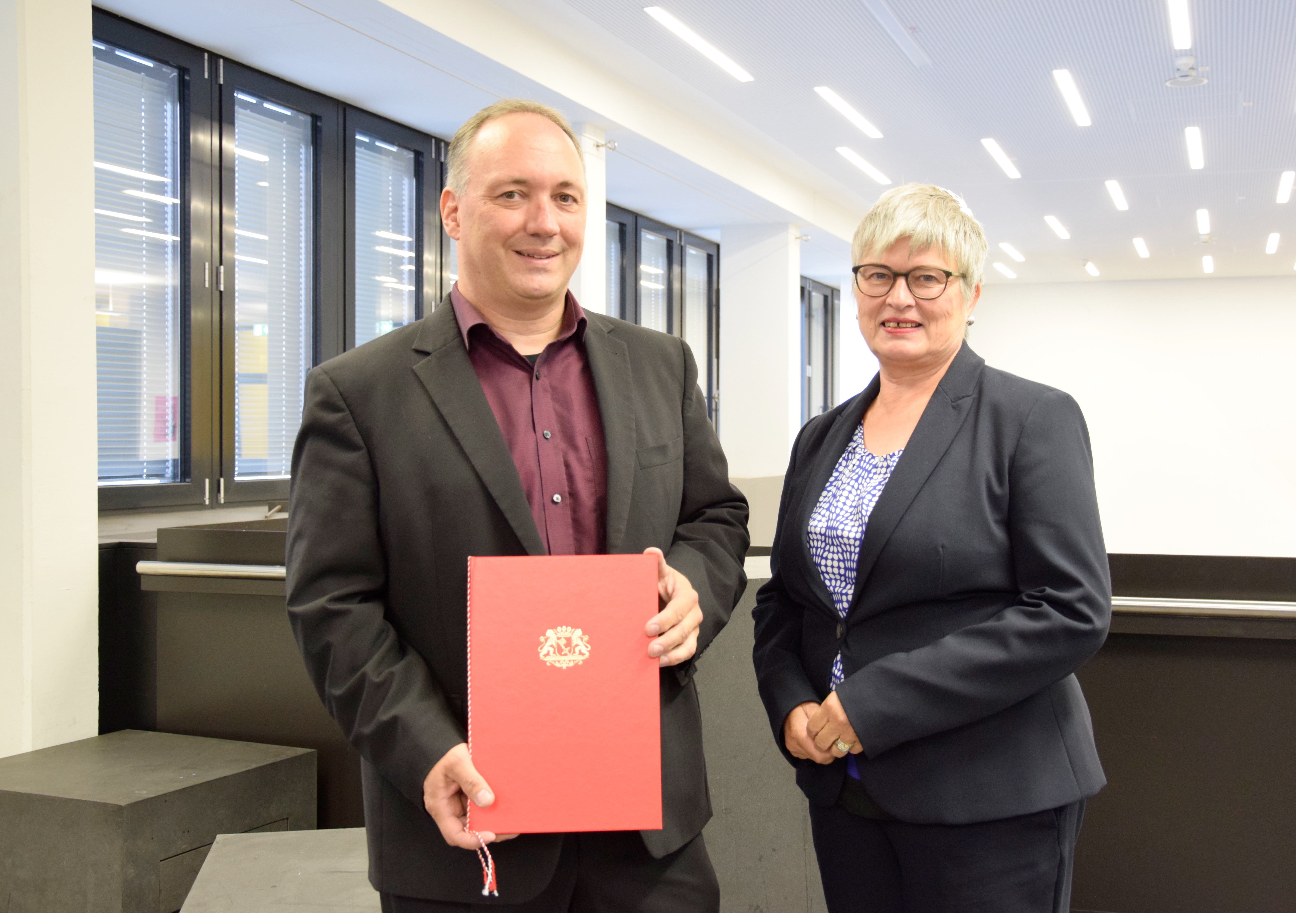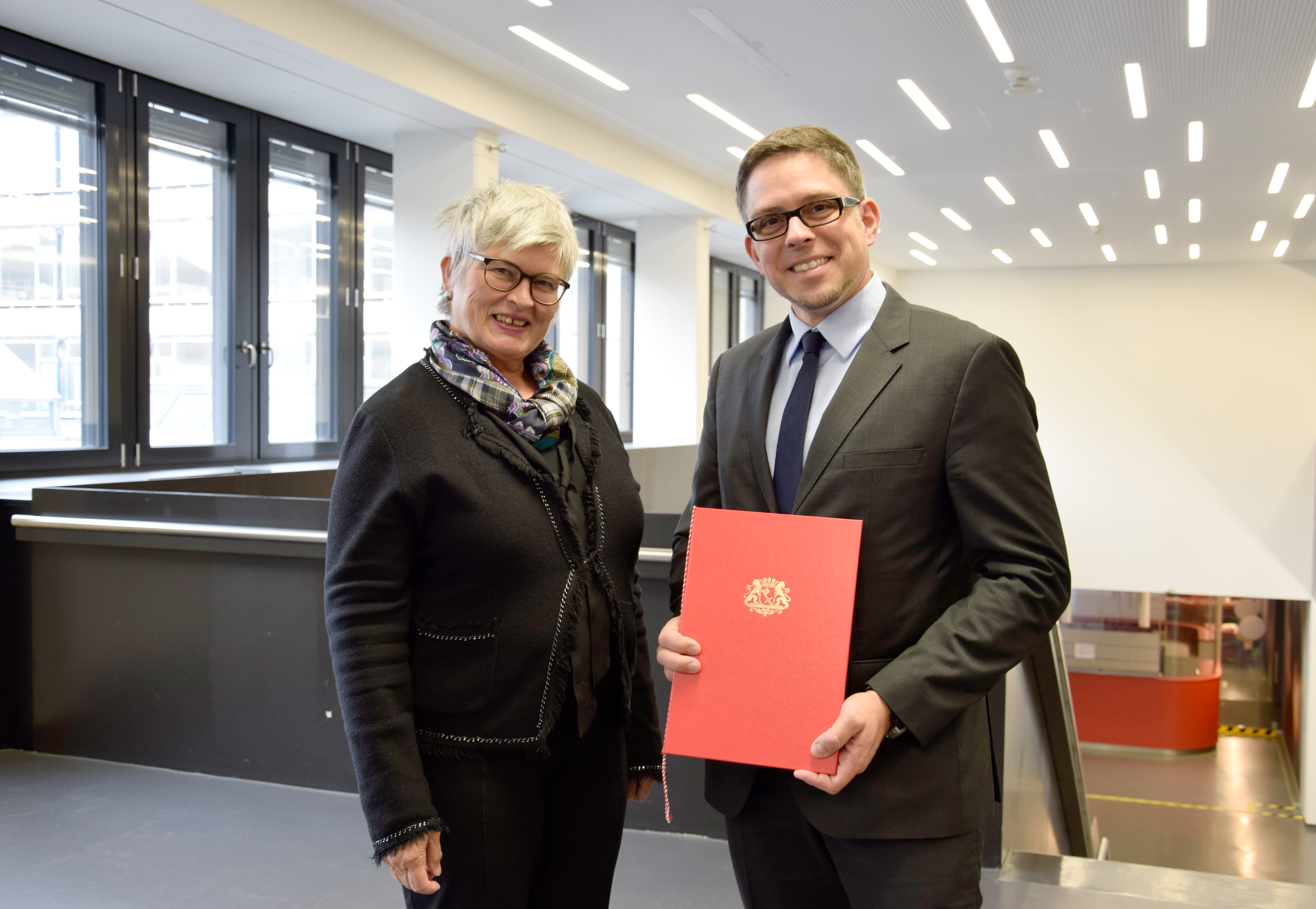 von links nach rechts: (untere Reihe) Prof. Dr. Ingo Haug, Prof. Dr. Jasminka Matevska, Rektorin Prof. Dr. Karin Luckey, Susanne Grobien (CDU), (mittlere Reihe) Dekan Elektrotechnik und Informatik Prof. Dr. Helmut Eirund, Dekan Natur und Technik, Prof. Dr. Jürgen Westhof, Konrektorin Prof. Dr. Uta Bohnebeck, Prof. Dr. Evren Eren, Konrektor Prof. Dr. Axel Viereck, (obere Reihe) Prof. Dr. Carsten Reinhardt, Dr. Frank Thoss (Handelskammer) und Prof. Dr. Jan-Henning Dirks. - Nicht abgebildet sind Prof. Dr. Claudia Kromrei, Prof. Dr. Burkhard Lemper und Dr. Elke Wietoska