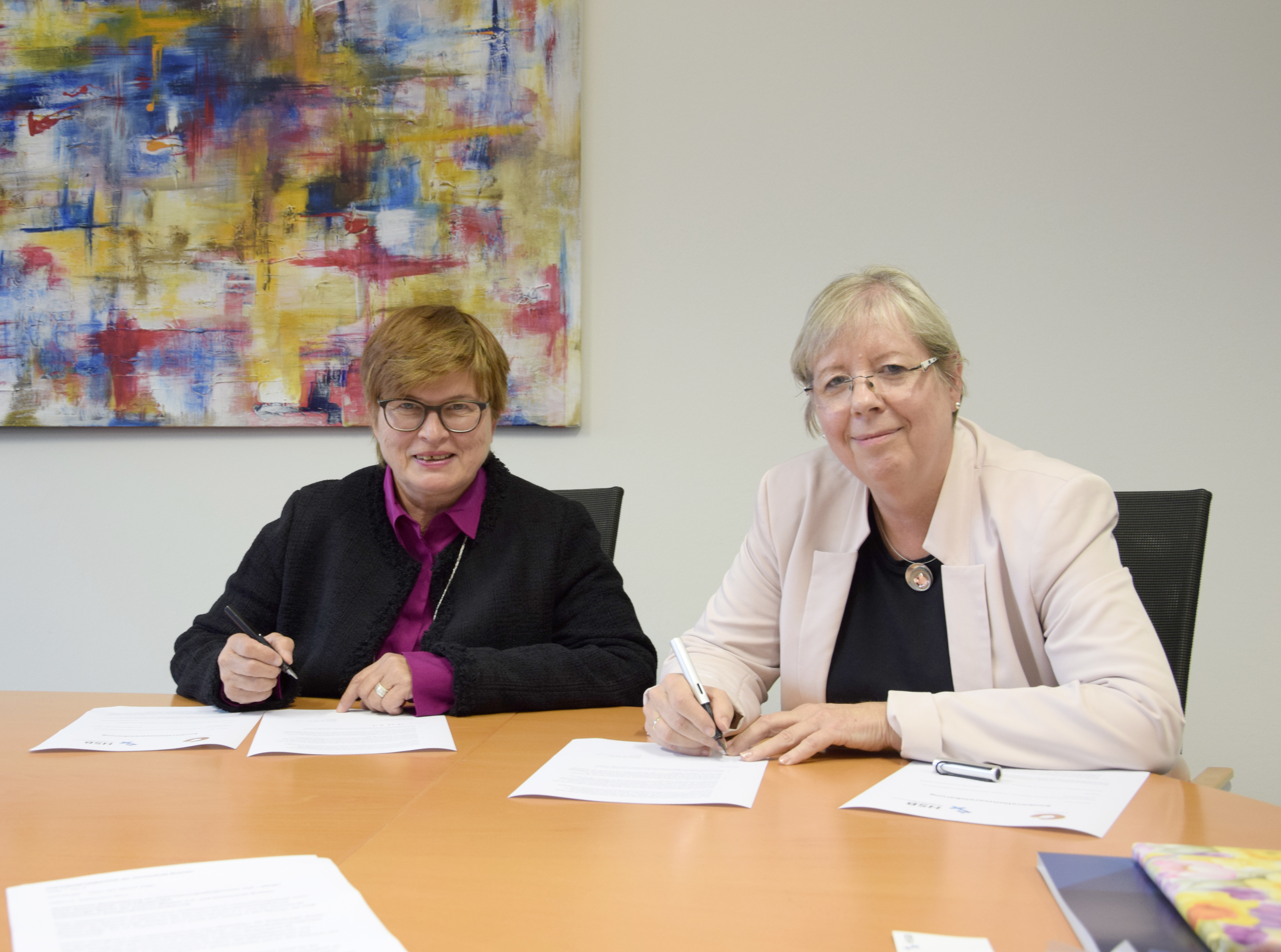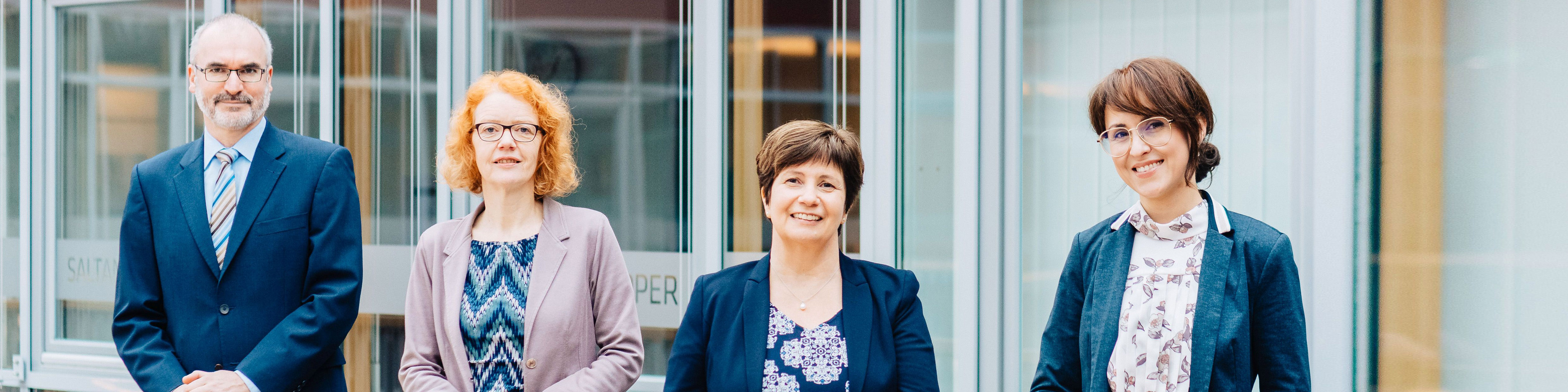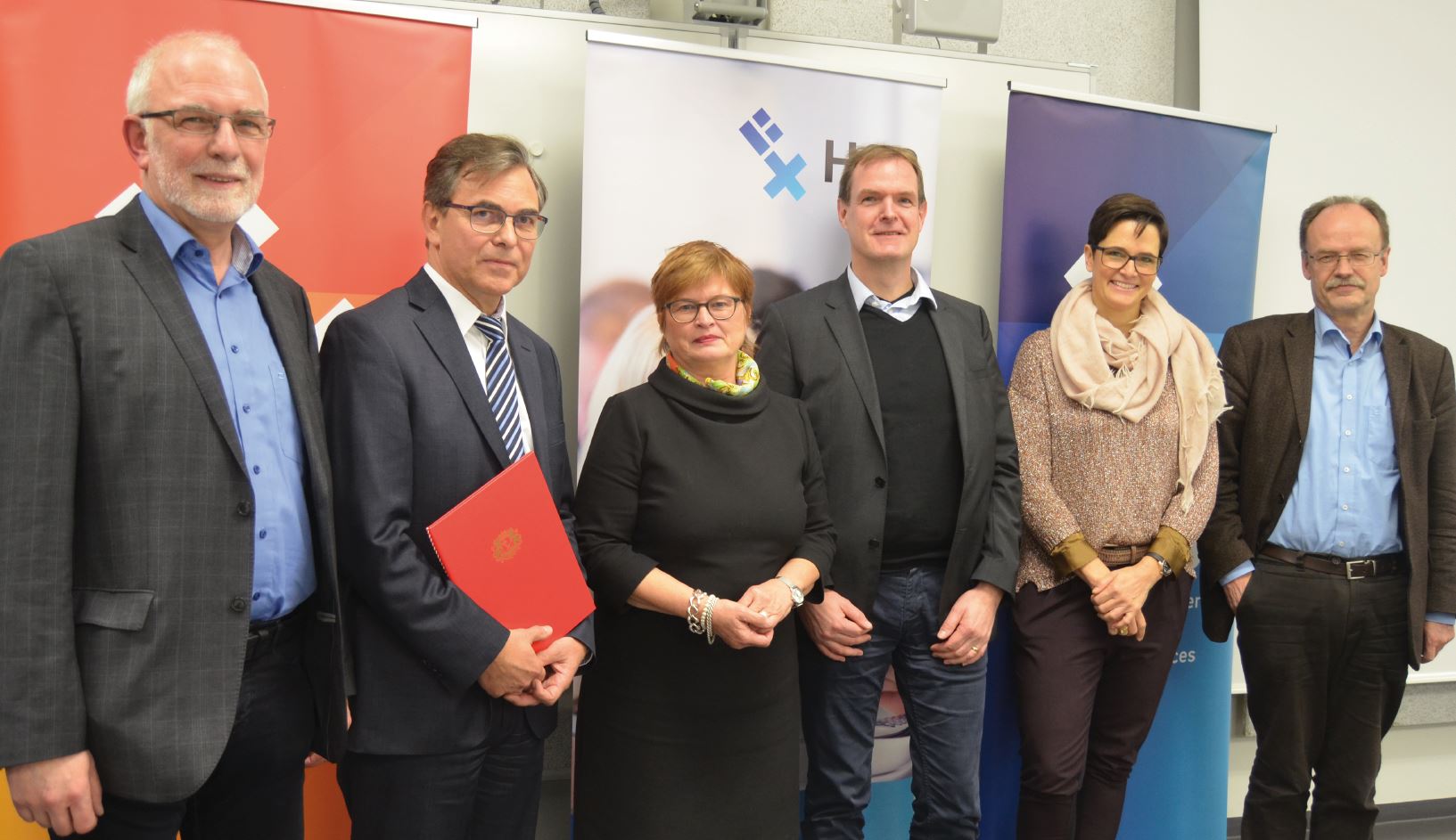 von links nach rechts: Antje Kehrbach, Projektleitung Gesundheitswirtschaft bei der Senatorin für Wissenschaft, Gesundheit und Verbraucherschutz, Prof. Dr. Axel Schäfer, Studiengang Angewandte Therapiewissenschaften (ATW), Lehrgebiet Physiotherapie, Prof. Dr. Wiebke Scharff Rethfeldt, Studiengang ATW, Lehrgebiet Logopädie, Hans-Werner Steinhaus, Geschäftsführer der wisoak, Prof. Dr. Karin Luckey, Rektorin der Hochschule Bremen, Prof. Dr. Heinz Janßen, Dekan der Fakultät Gesellschaftswissenschaften, Jutta Dernedde, Geschäftsführerin Medizin bei der Gesundheit Nord, Prof. Dr. Eva Qante-Brandt, Senatorin für Wissenschaft, Gesundheit und Verbraucherschutz, und Alexander Künzel, Vorstandsvorsitzender der Bremer Heimstiftung / Foto: Dennis Welge, Hochschule Bremen