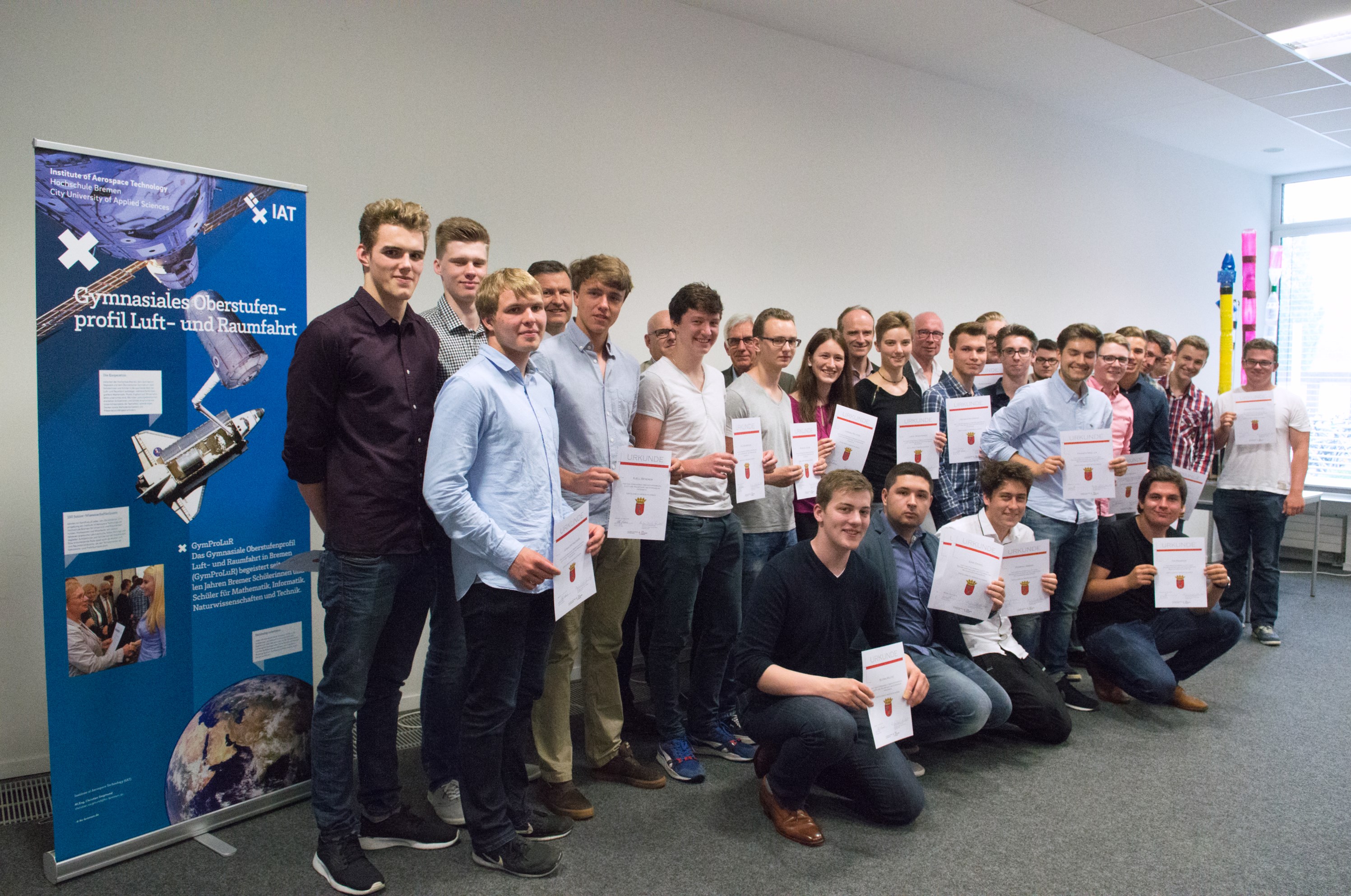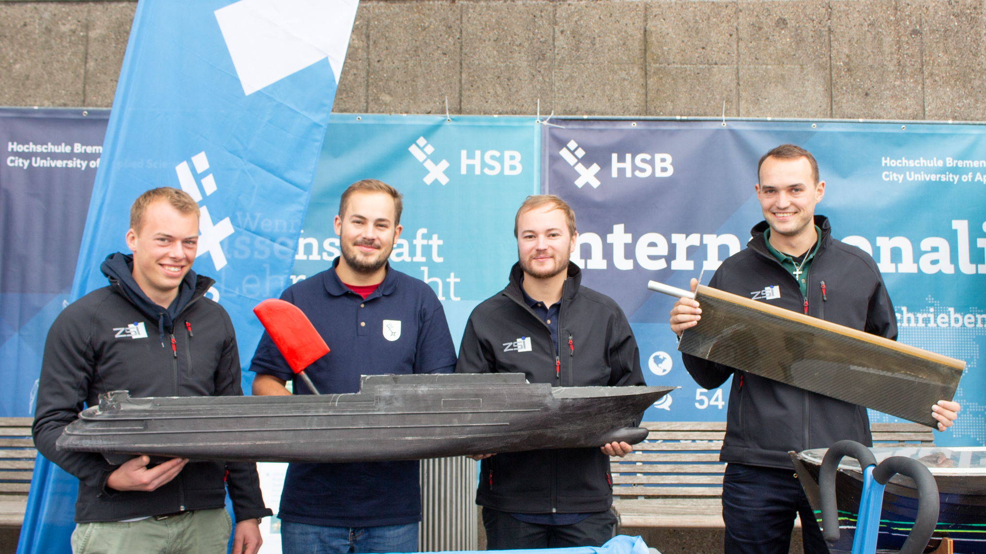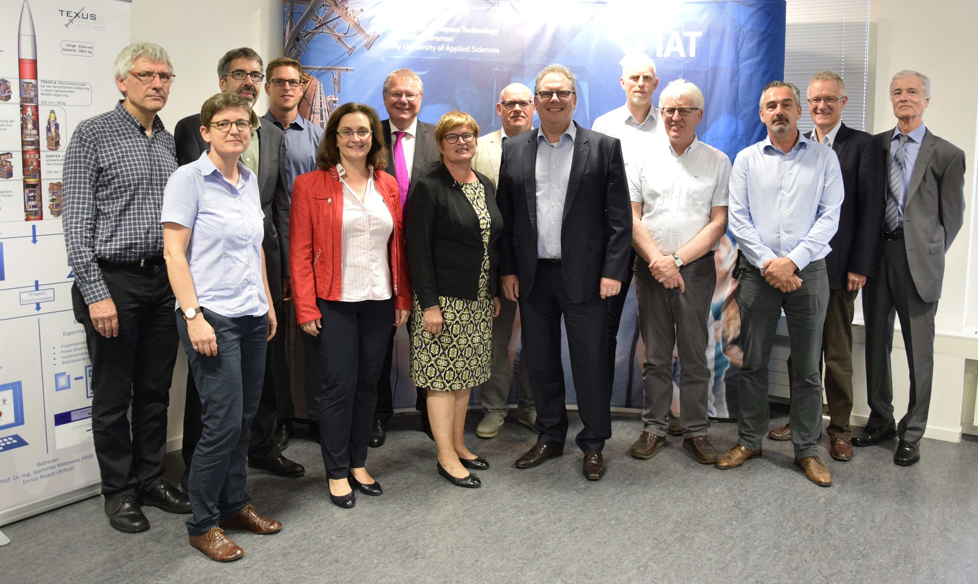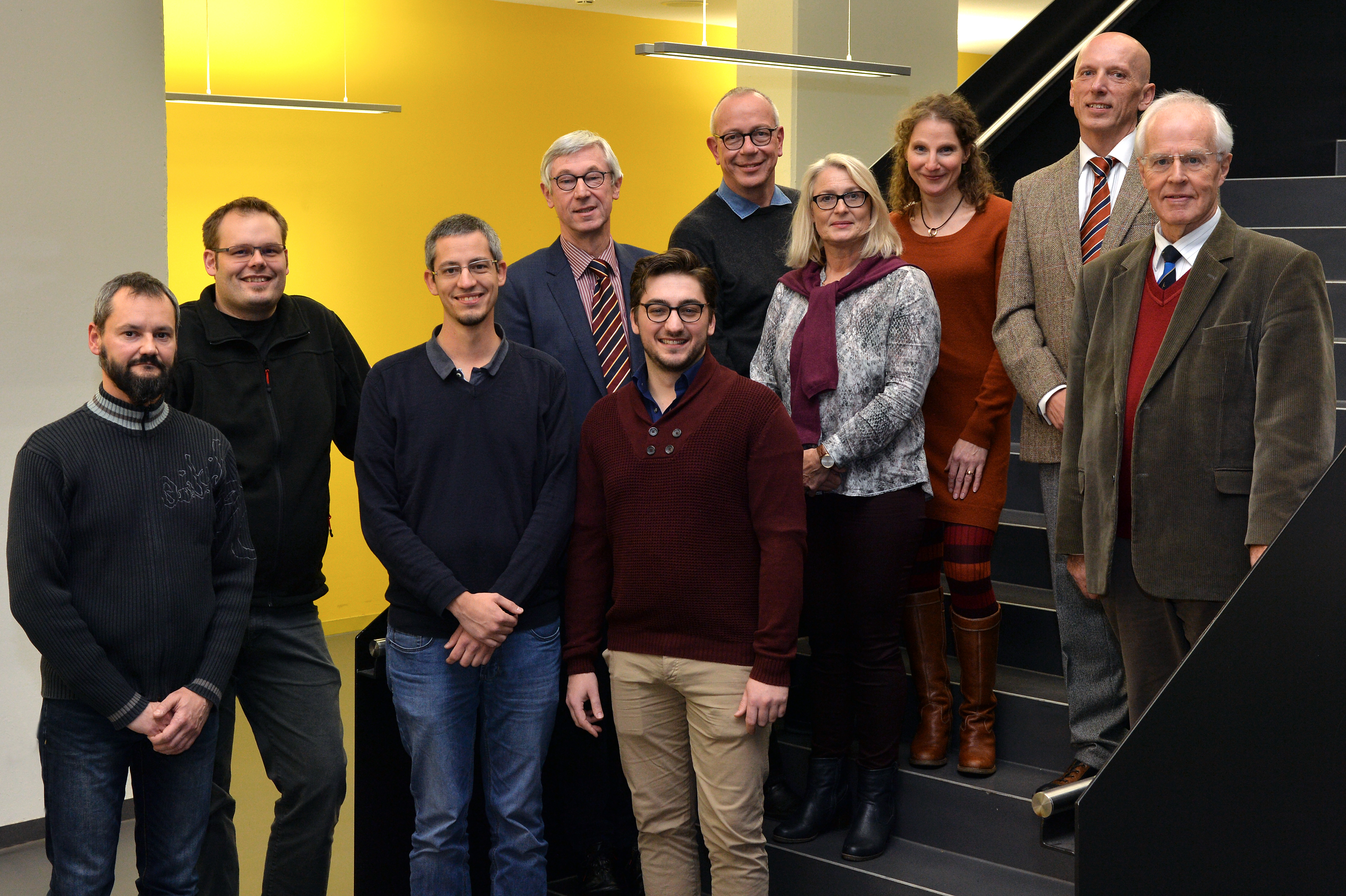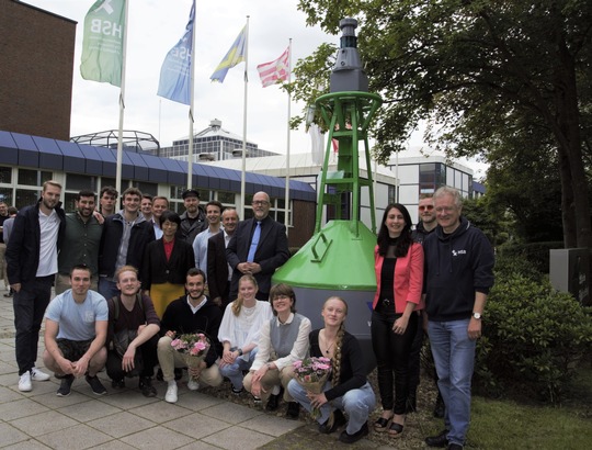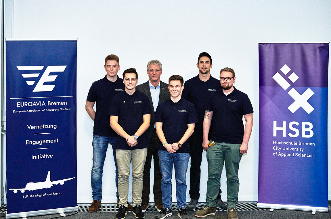 V.l.n.r.: Arnould Berlemont (FSA Béthune), Prof. Dr. Sven Oppermann (HSB), Benoit Meriaux (heute Airbus-Safran-Launchers, Bremen), Prof. Dr. Schubert (HSB), Guillaume Gouverne (heute Airbus-Safran-Launchers, Bremen), Martin Geiß (FSA Béthune), Ilka Knippel, Sandra Conrad-Juhls, Prof. Dr. Slawomir Smolen (alle HSB), Prof. Karl Potthast (ehem. HSB) (Bild: Michael Bahlo)