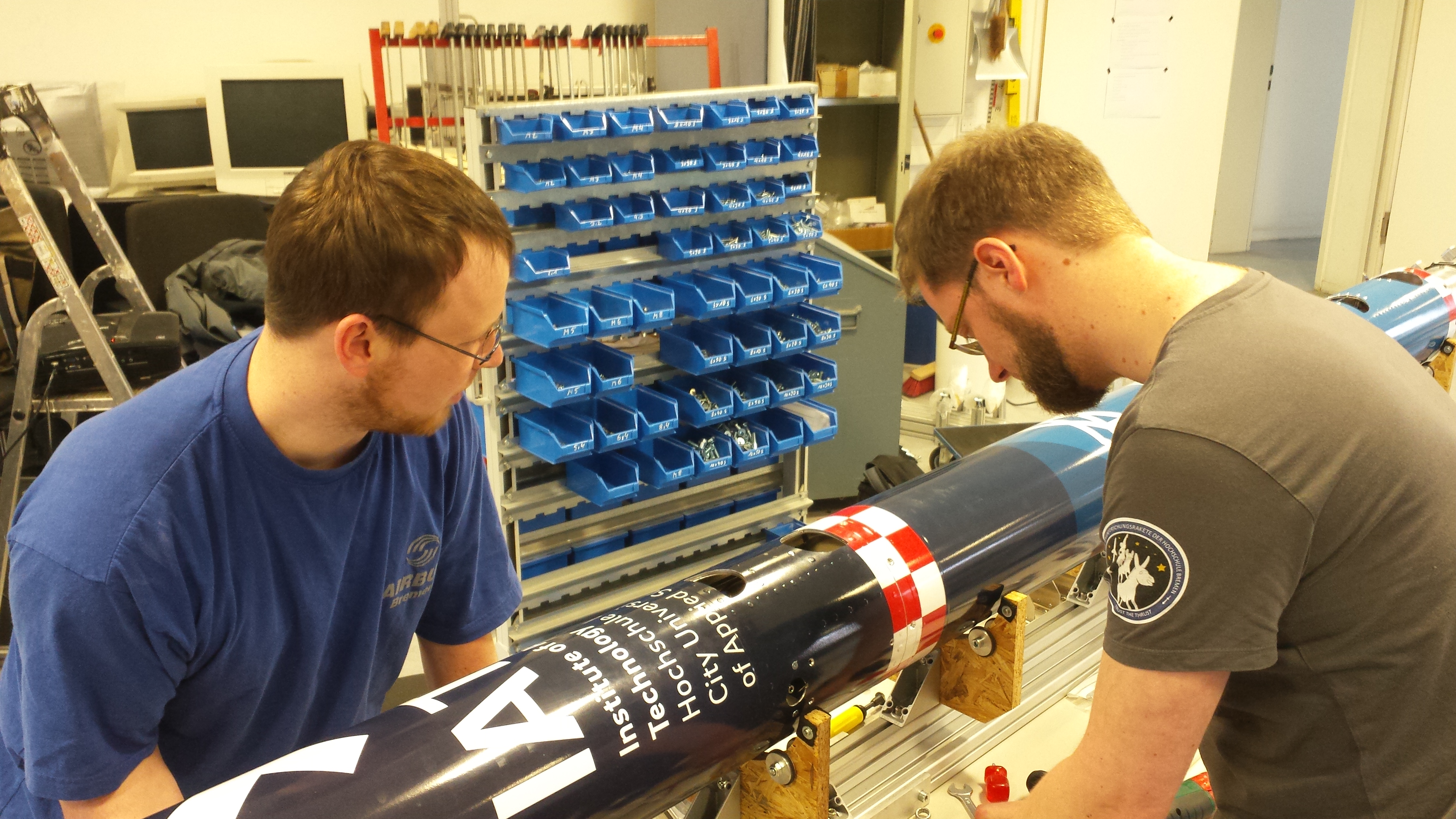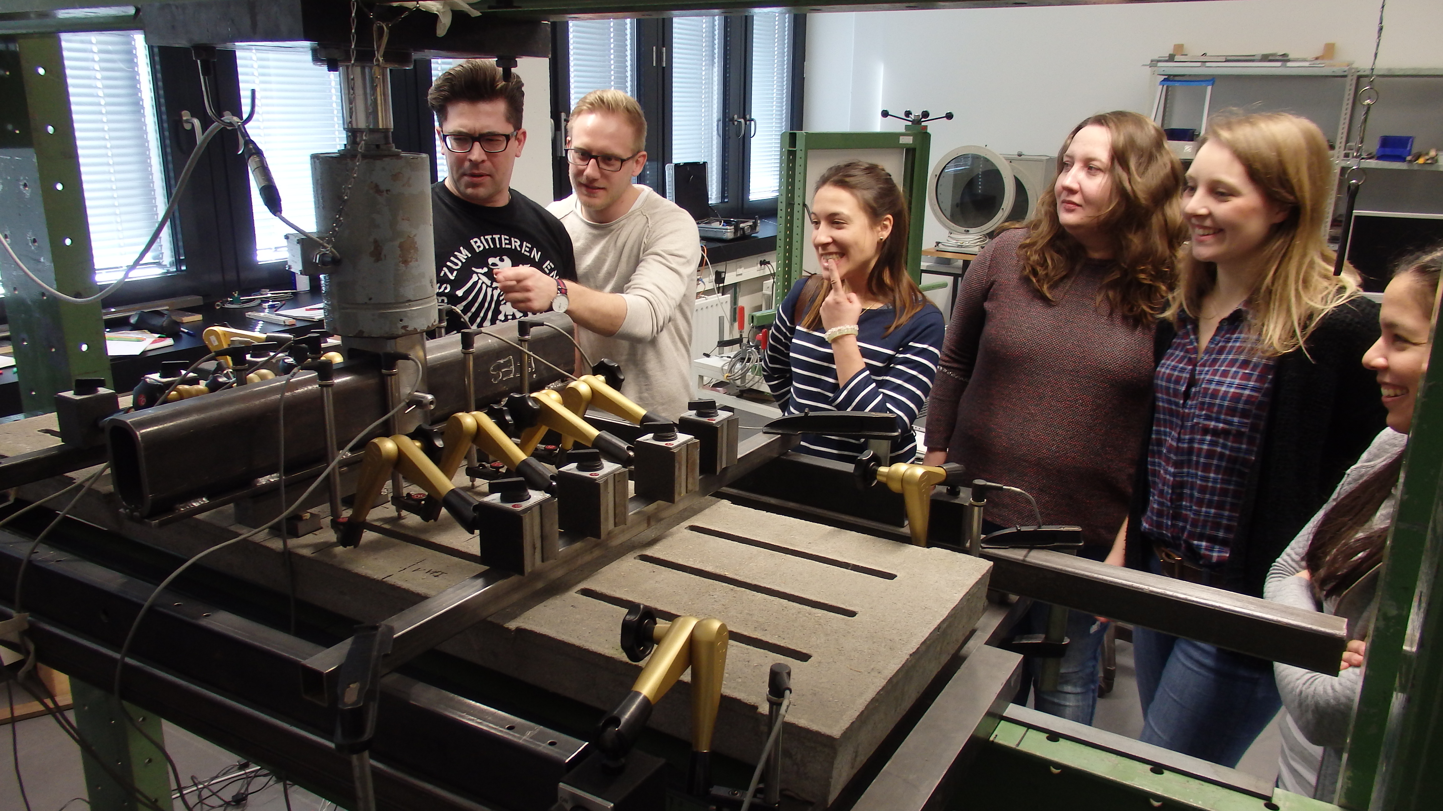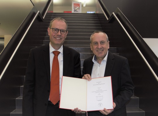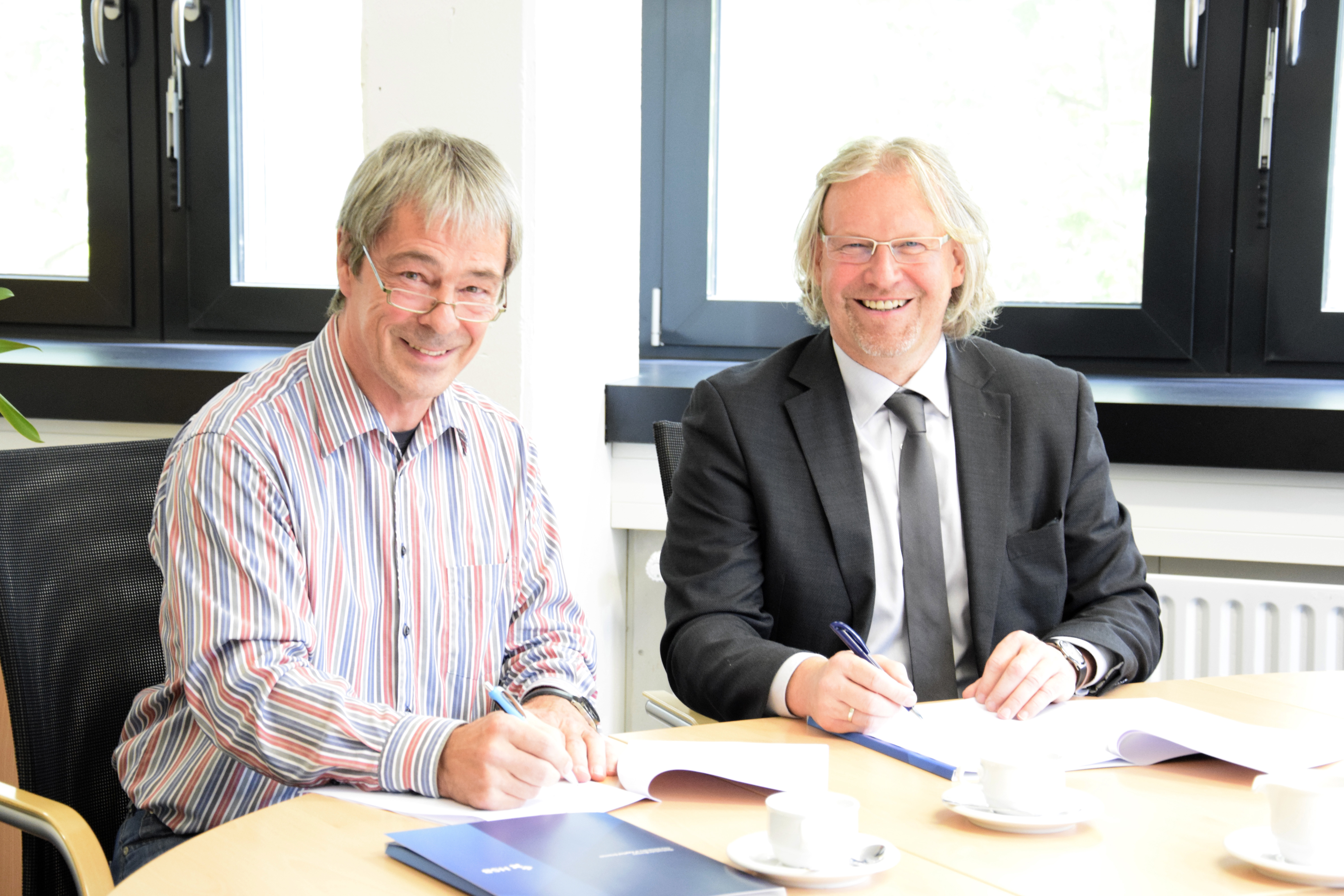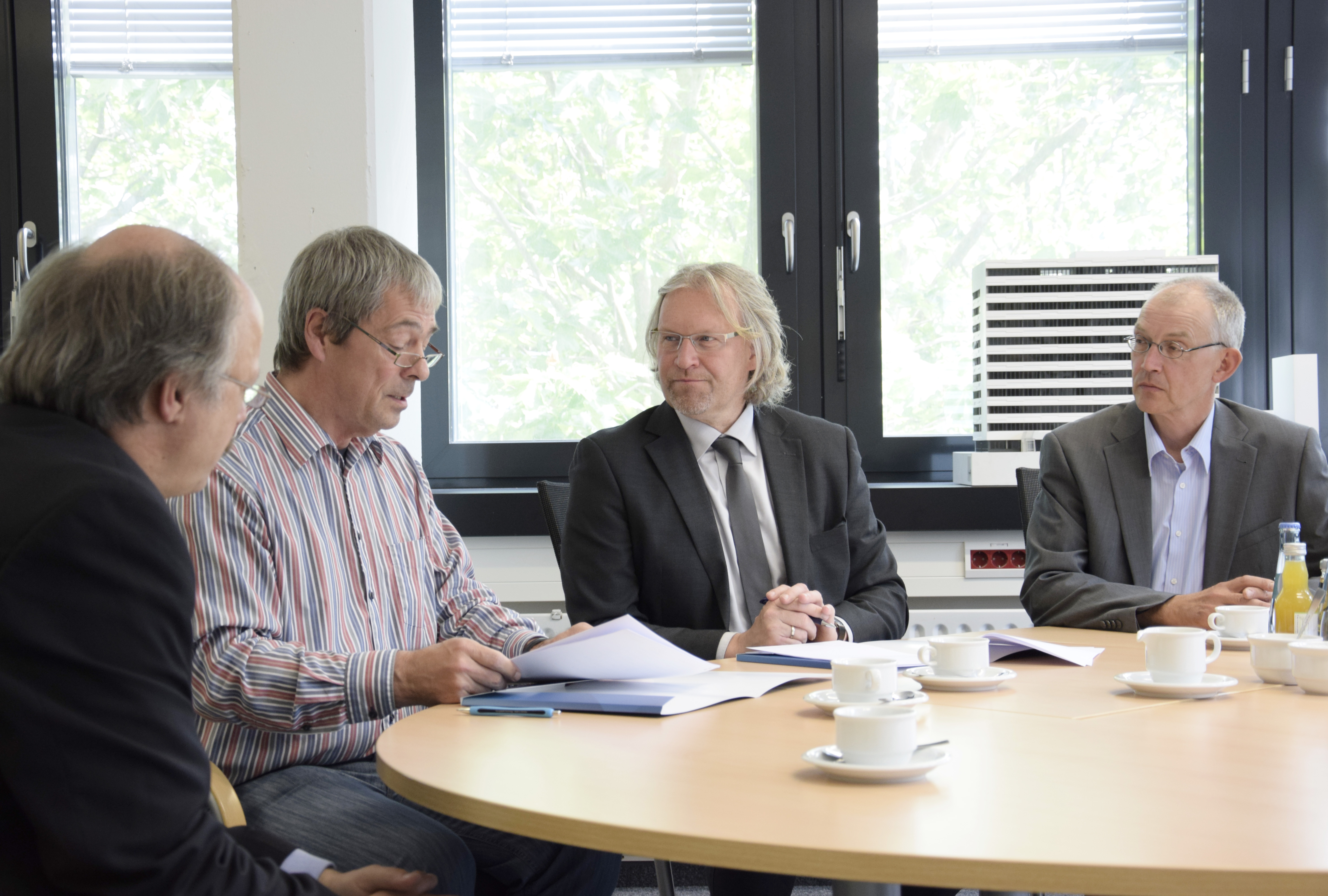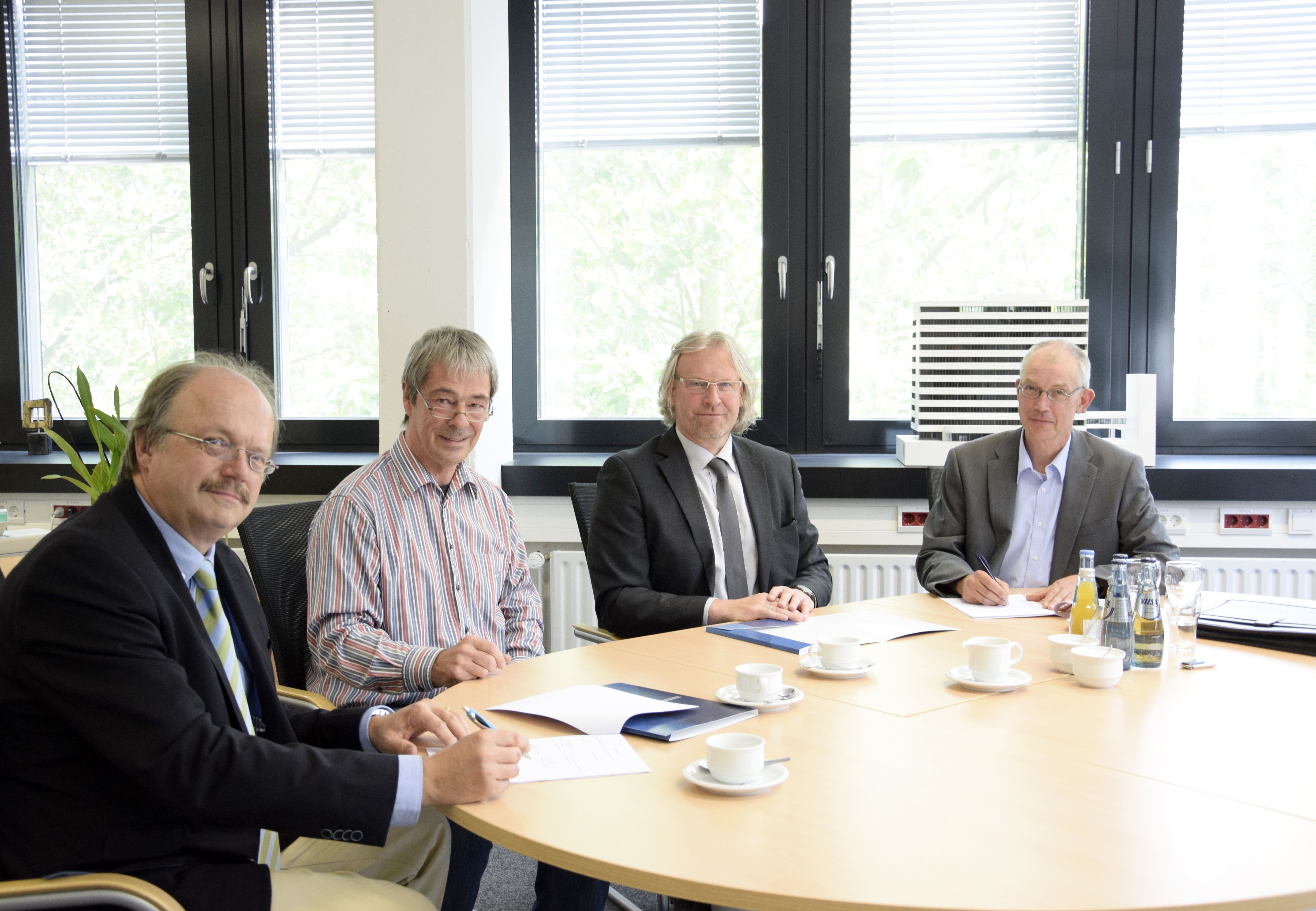 V.l.n.r.: Arnould Berlemont (FSA Béthune), Prof. Dr. Sven Oppermann (HSB), Benoit Meriaux (heute Airbus-Safran-Launchers, Bremen), Prof. Dr. Schubert (HSB), Guillaume Gouverne (heute Airbus-Safran-Launchers, Bremen), Martin Geiß (FSA Béthune), Ilka Knippel, Sandra Conrad-Juhls, Prof. Dr. Slawomir Smolen (alle HSB), Prof. Karl Potthast (ehem. HSB) (Bild: Michael Bahlo)