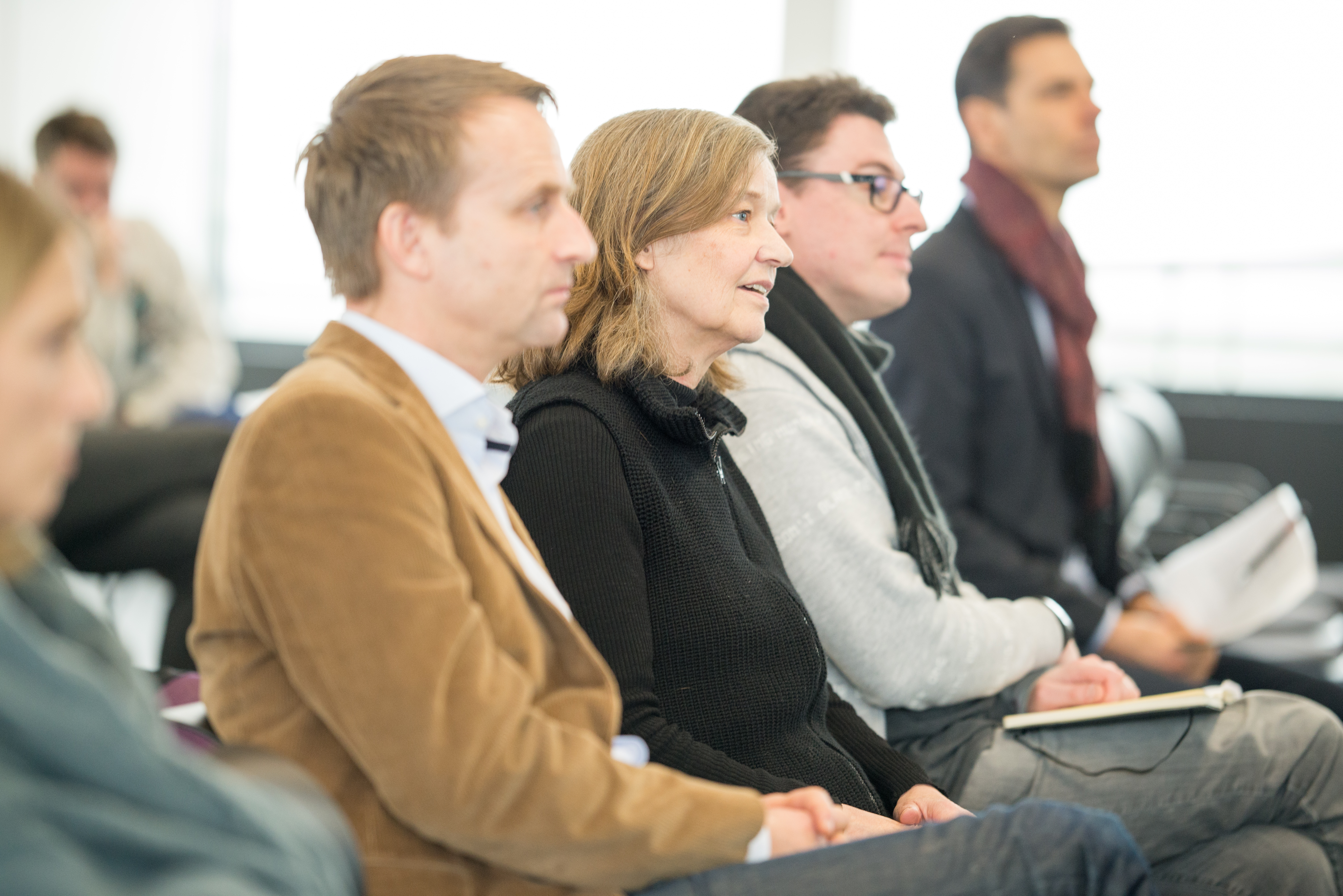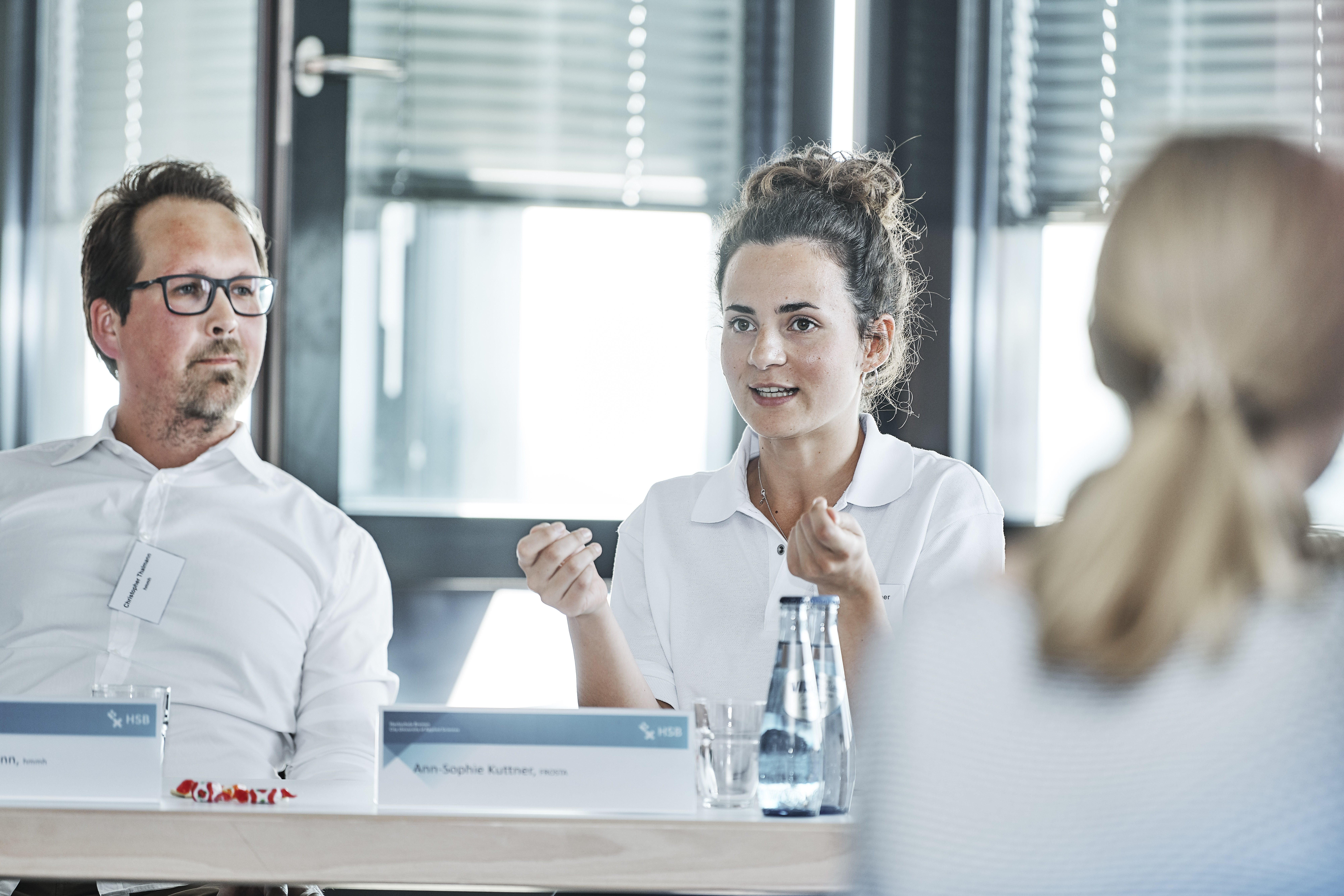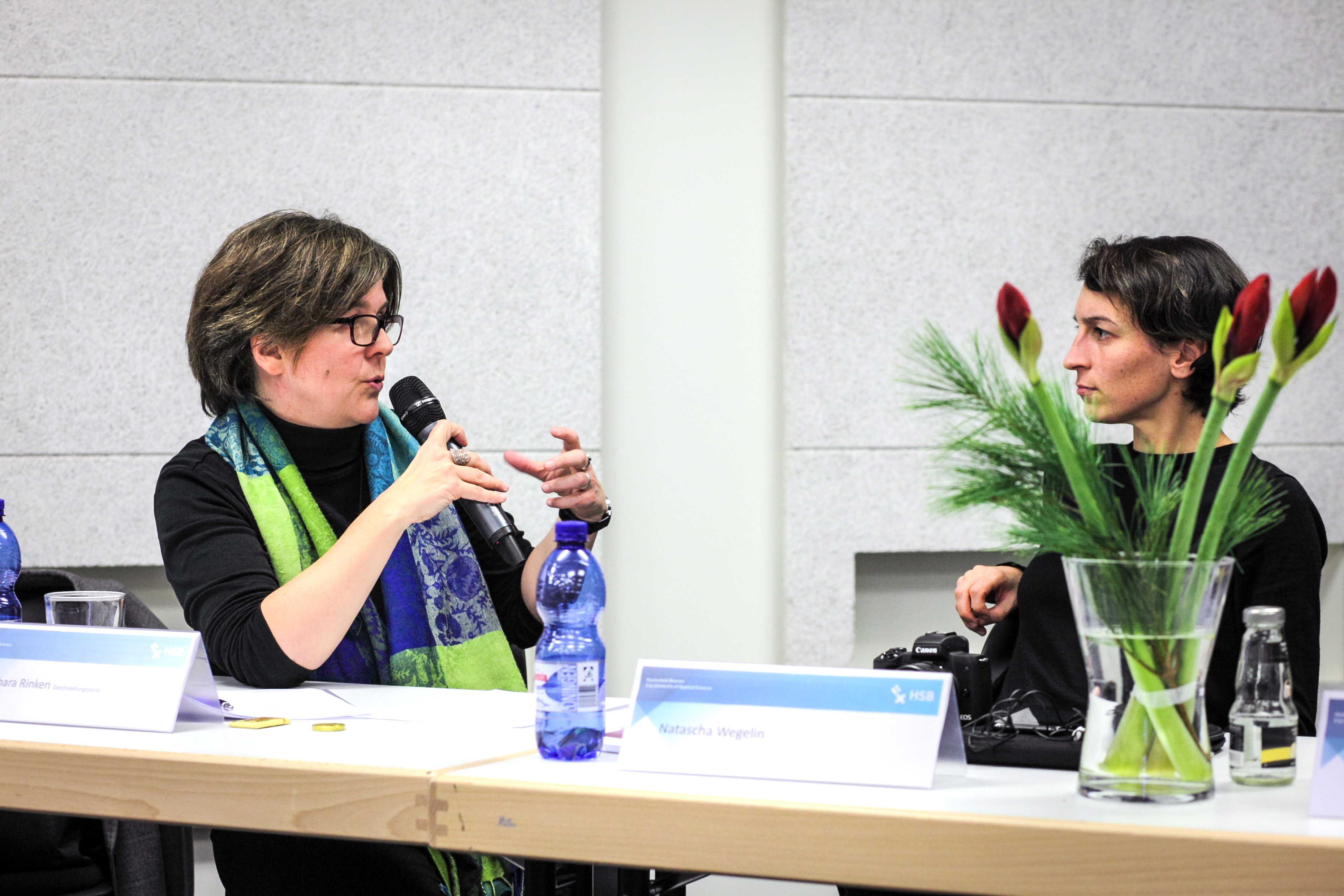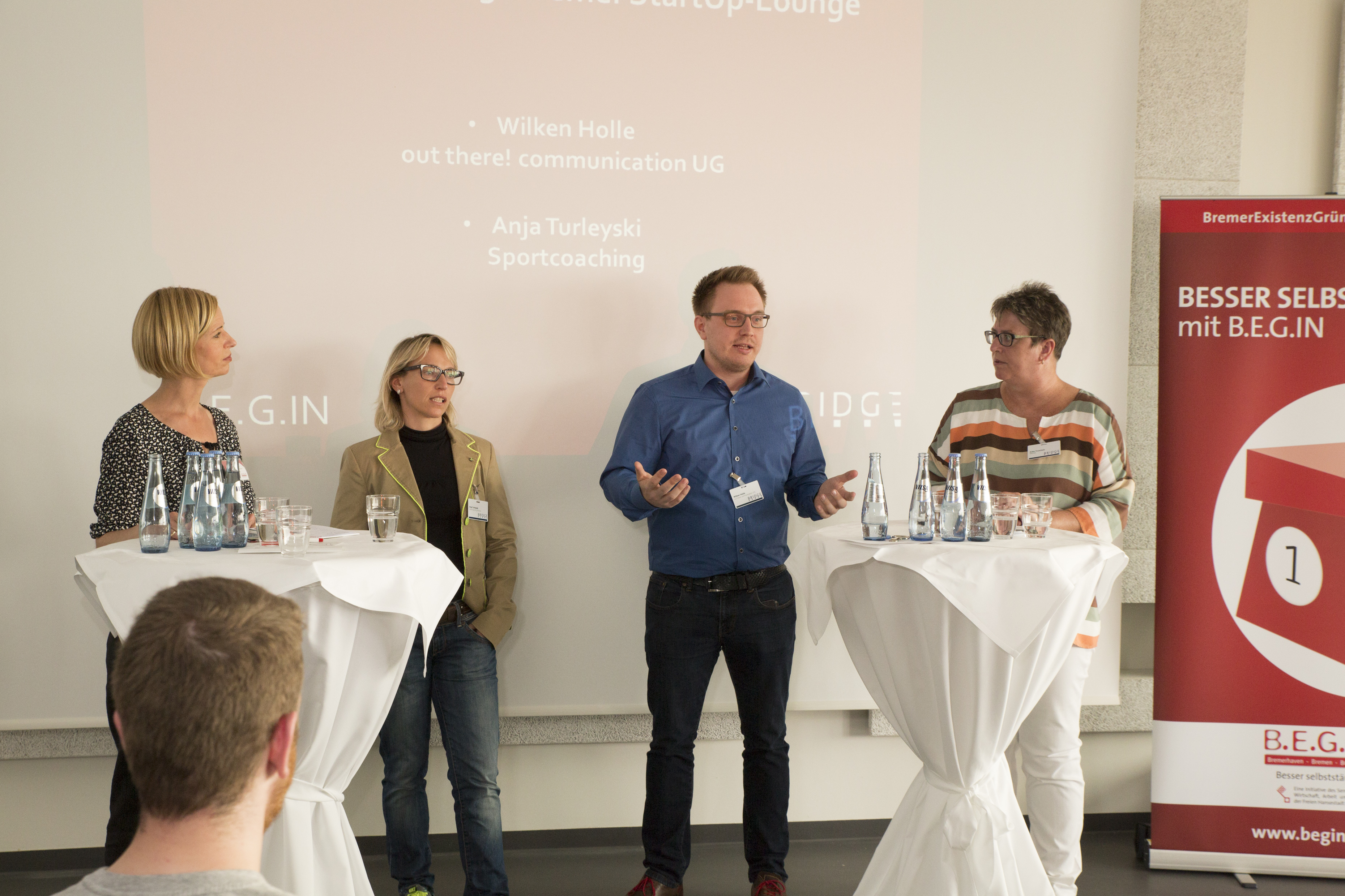 Zu sehen ist die Diskussionsrunde „Generation Y und Silver Workers“ (von links nach rechts): Jörg Pehl, Projektmanager „Demographischer Wandel“ bei ArcelorMittal, Guido Schwarz, Absolvent der Hochschule Bremen, Airbus Defence and Space, Dr. Leena Pundt, Professorin an der Hochschule Bremen für Personalmanagement, Margaret Heckel, Journalistin, Autorin und Moderatorin, und Imke Goller-Wilberg, Unternehmerin und Geschäftsführende Gesellschafterin von „human lead“ und Mitglied im Plenum der Handelskammer Bremen. Fotograf: Sven Stolzenwald